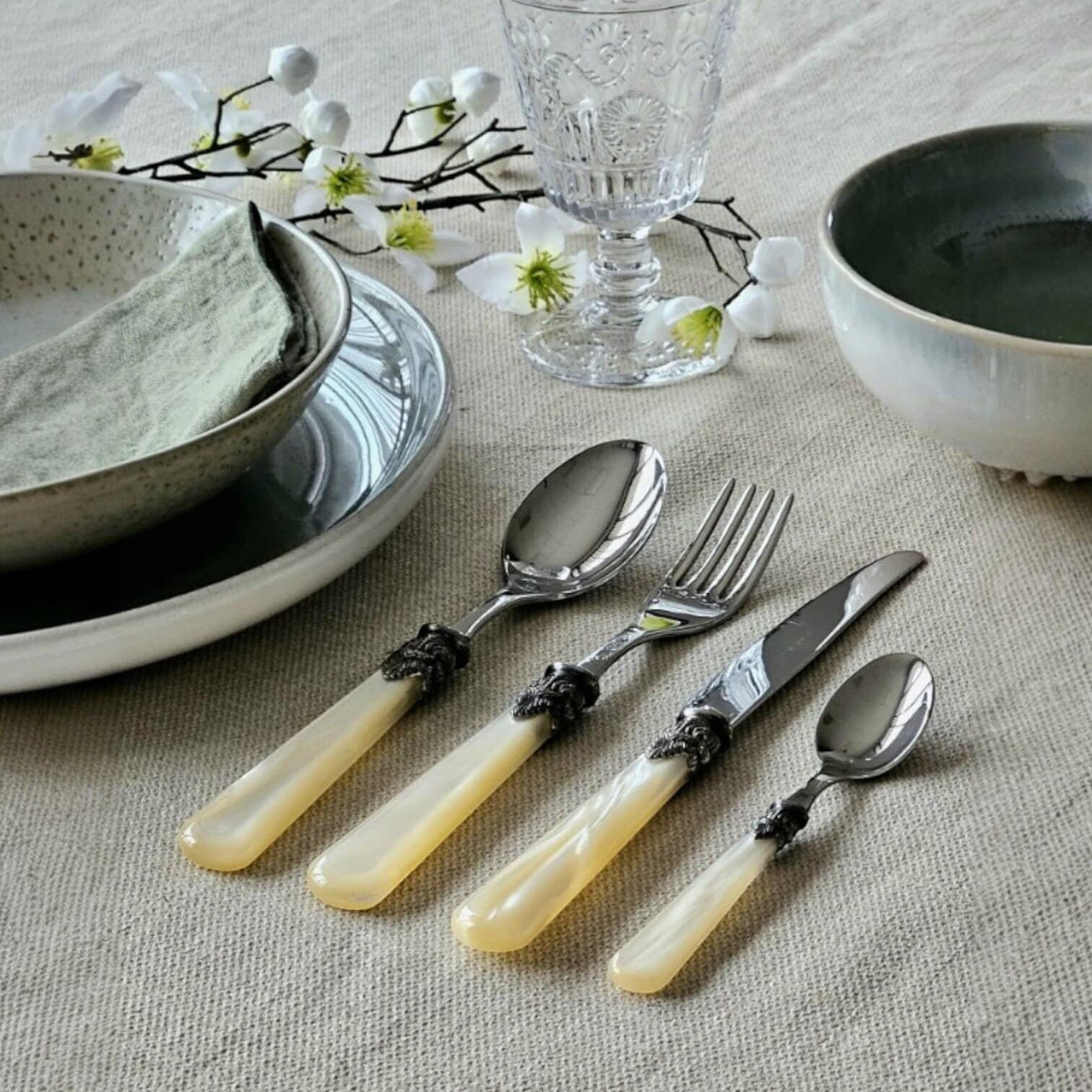 Galda piederumu komplekts 1 personai, 5 daļas – EME Napoleon, ziloņkaula perlamutra krāsā