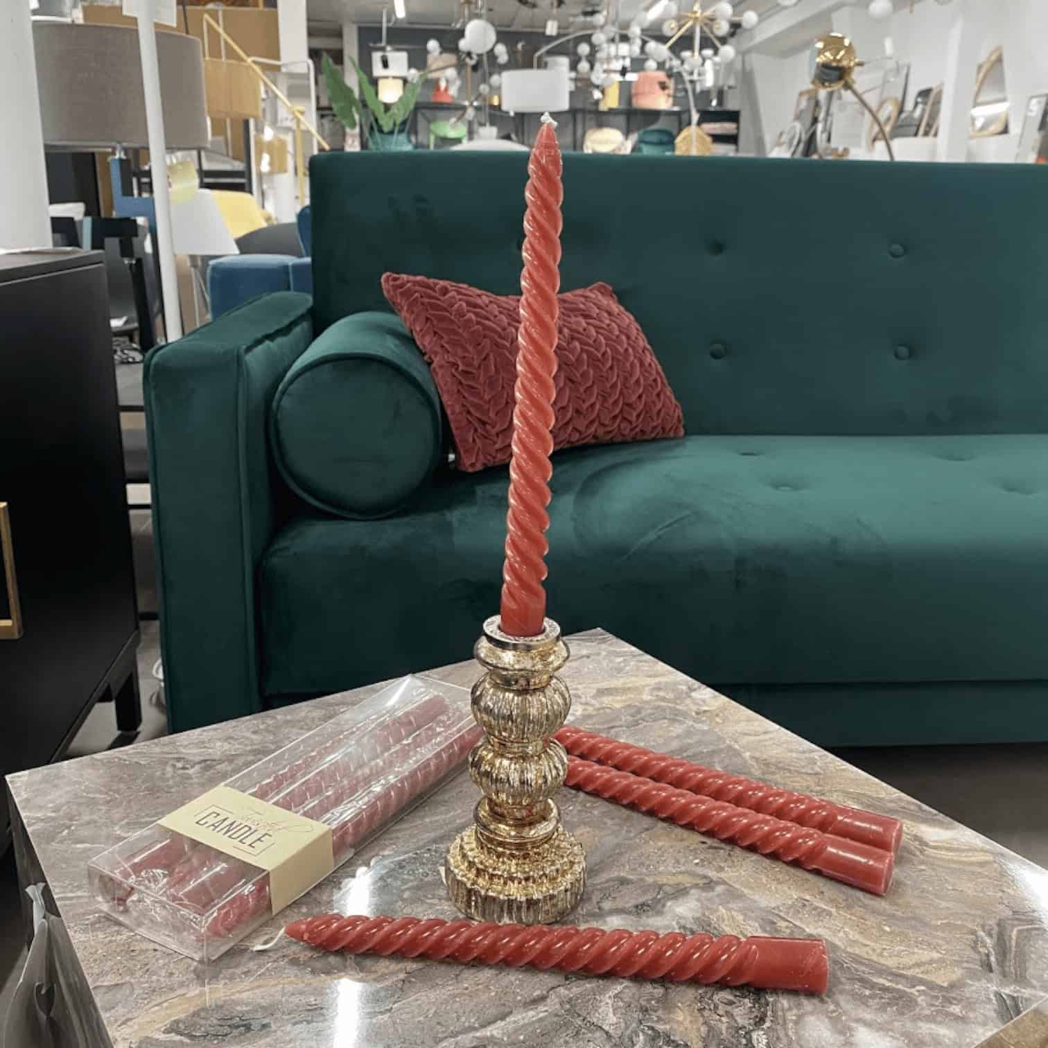 Šīs terakotas krāsas vītās sveces papildinās jebkuru svētku galdu un būs lielisks centra elements.