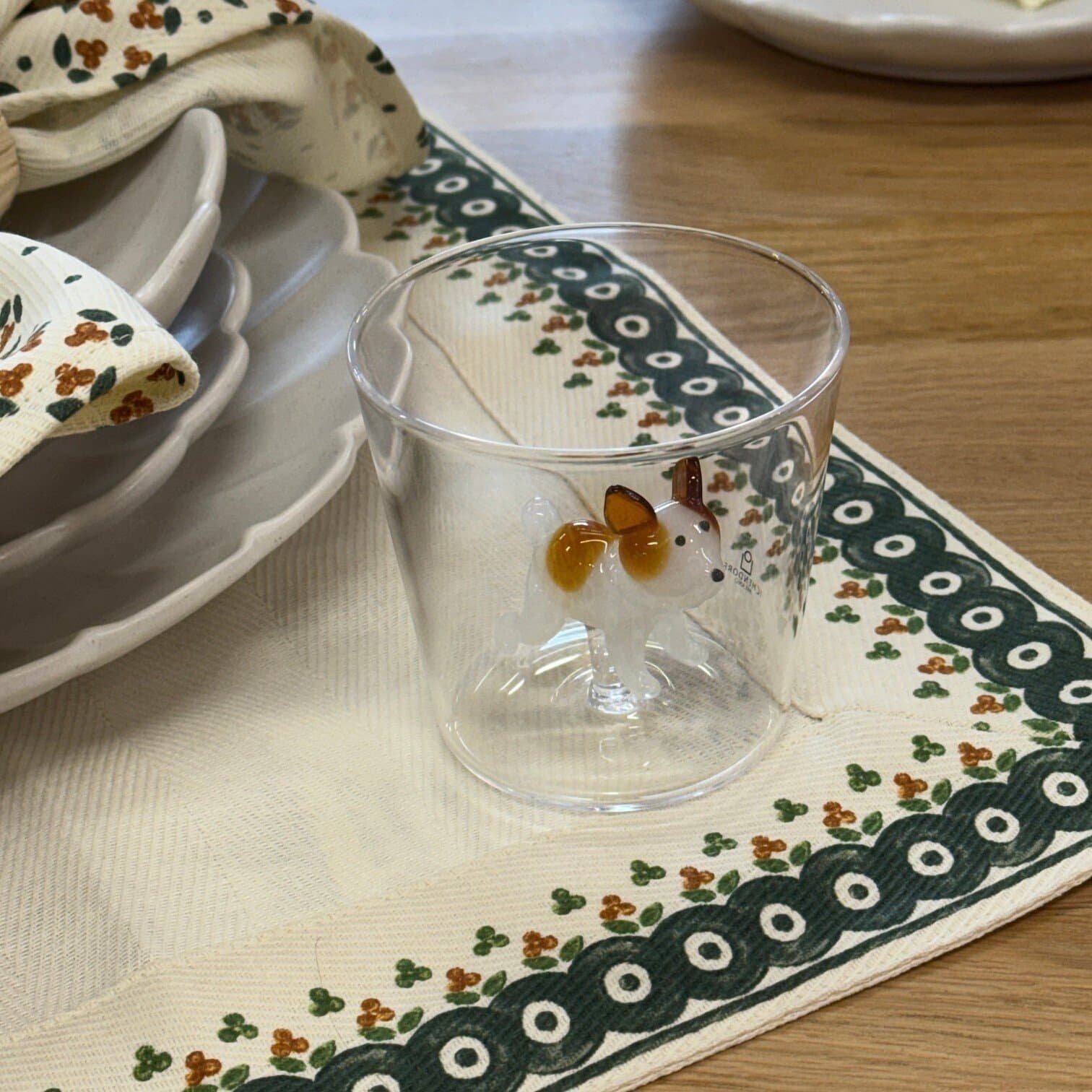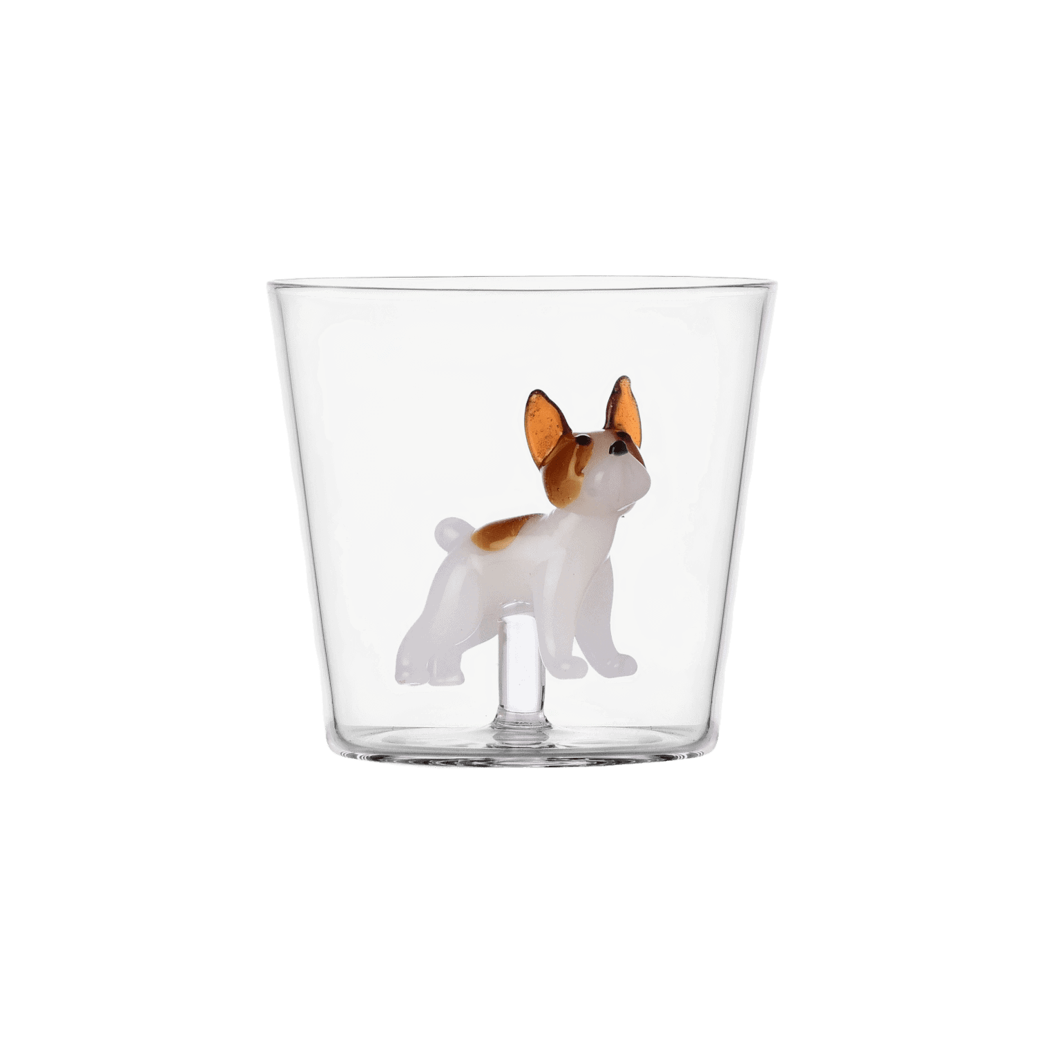 Ichendorf Milano dizaina glāze ar suņa figūriņu ir elegants un rotaļīgs galda aksesuārs, kas apvieno funkcionalitāti ar māksliniecisku dizainu. Glāze ir roku darbs no borosilikāta stikla, un tās apakšā izvietota neliela stikla suņa skulptūra, kas piešķir priekšmetam unikālu raksturu.