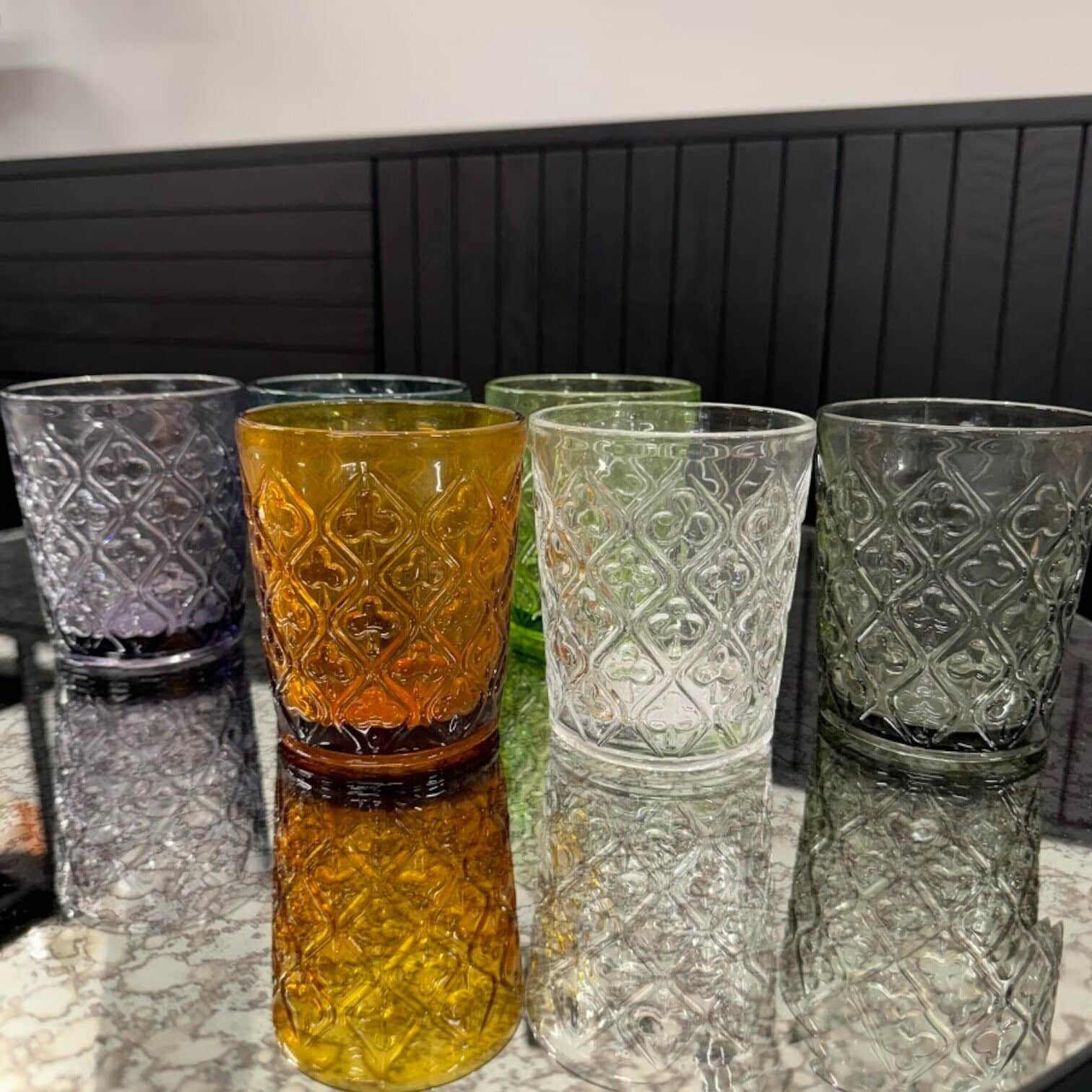 Smalki izstrādāts ūdens glāzes piesaista uzmanību, tāpat kā krāsas bagātība. Katra glāze ir savā tonī un tās vieno skaistā tekstūra un raksts. Ūdens glāzes var lietot katrā ēdienreizē. Tās ir glāzes, kas piemērotas dažādiem bezalkoholiskajiem dzērieniem vai pat citām variācijām.