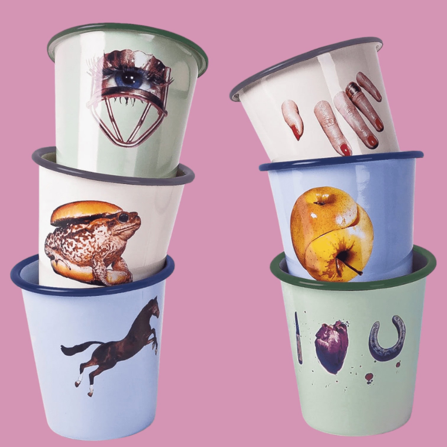 Galda kolekcija, kurā negaidīti attēli apvienoti ar pazīstamiem materiāliem.