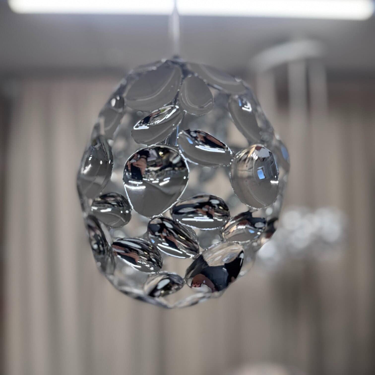 Griestu lampa Abbie ir izsmalcināts dizaina akcents, kas piešķir interjeram modernu greznību. Hromēta metāla kupols ar kristālam līdzīgu struktūru veido daudzšķautņainu, gaismu atstarojošu virsmu, kas rada elegantu un dinamisku vizuālo efektu. Spīdīgais hroma pārklājums skaisti lauž gaismu un piešķir telpai mirdzumu gan dienā, gan vakara apgaismojumā. Lampa lieliski iederas mūsdienīgā, glamūrīgā vai minimālisma interjerā, kļūstot par pamanāmu dizaina elementu viesistabā, ēdamzonā vai guļamistabā.
