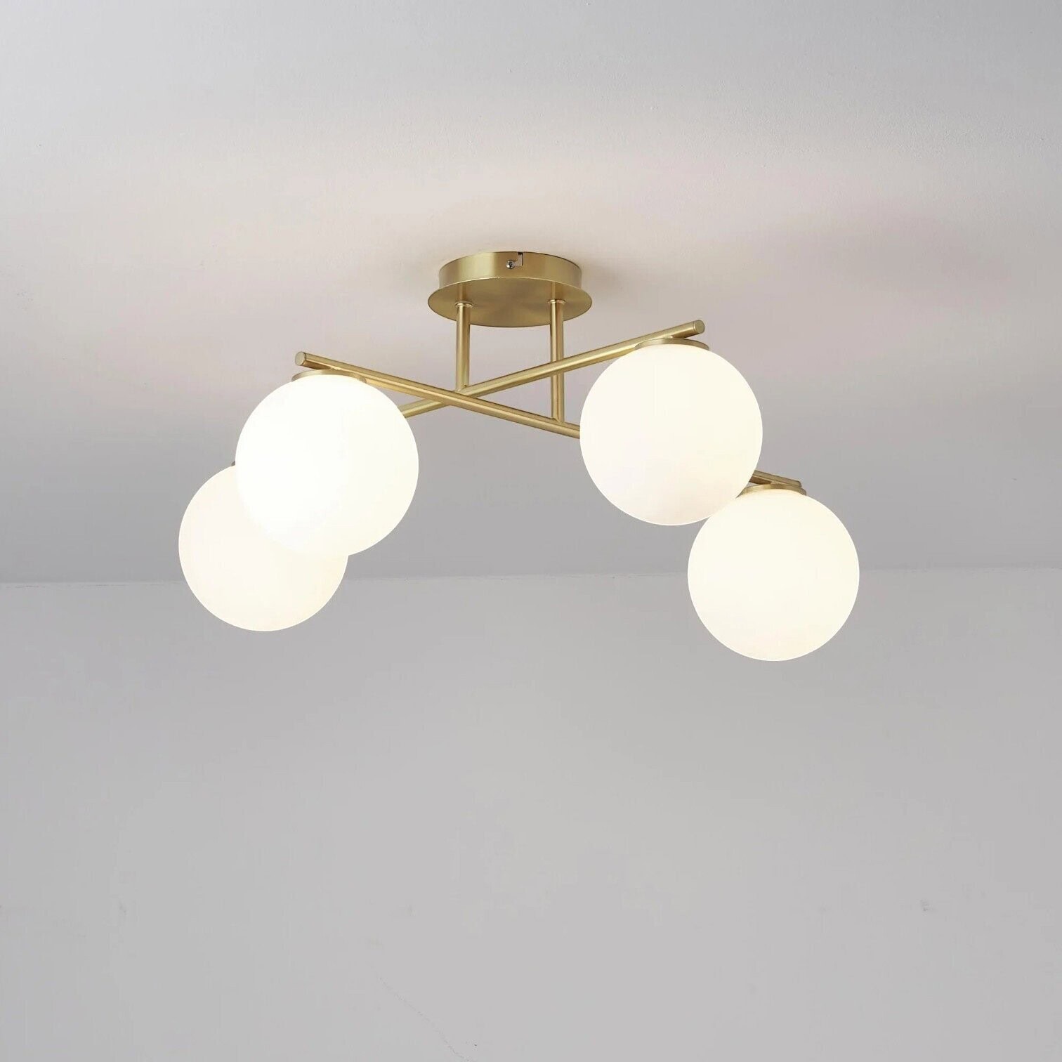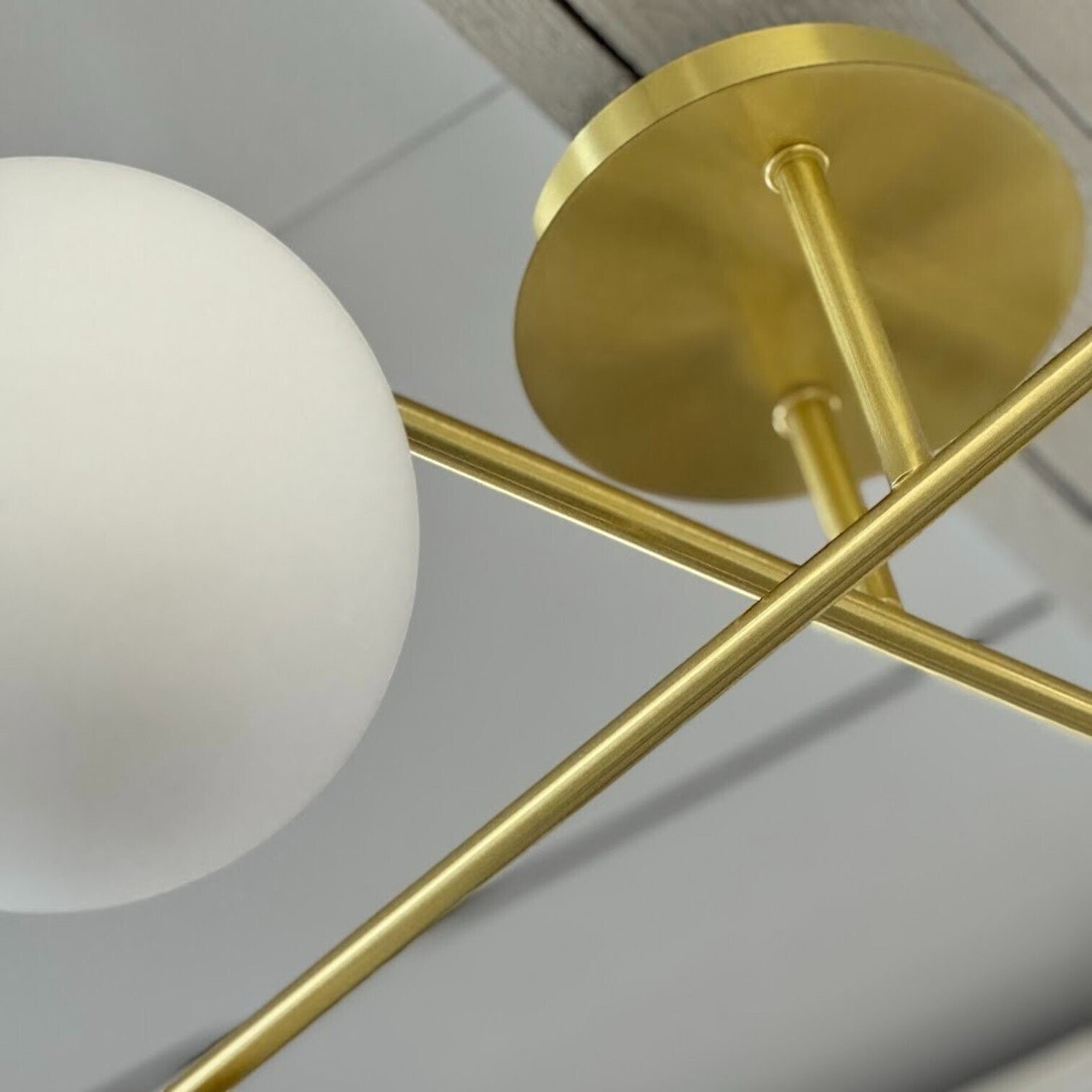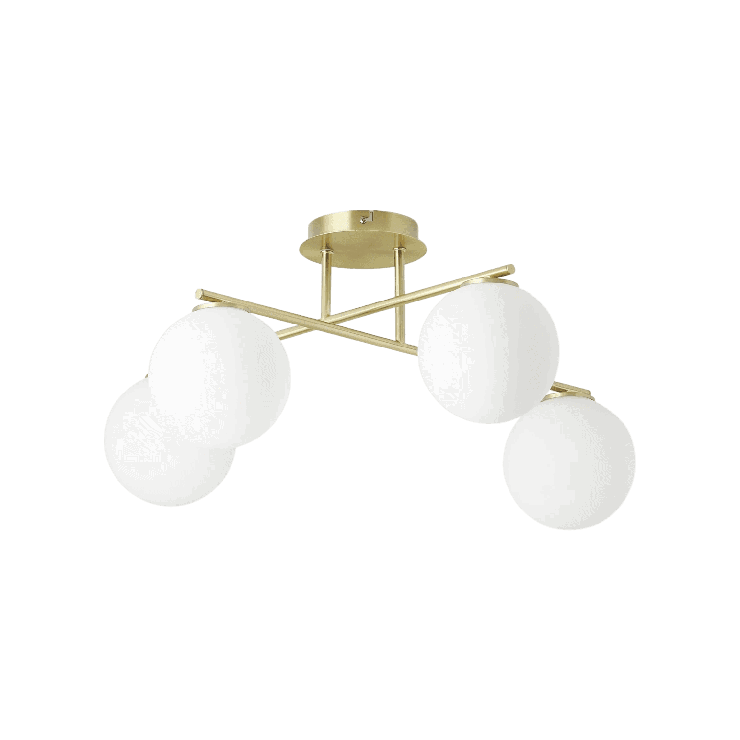 Griestu lampa ATLANTA apvieno laikmetīgu eleganci un izsmalcinātu dizainu, kas piešķir jebkurai telpai mūsdienīgu un harmonisku noskaņu. Tās smalki noapaļotie, matētie stikla kupoli piešķir interjeram vieglu un gaisīgu akcentu, savukārt zeltaini tonētais metāla karkass nodrošina luksusa pieskārienu.
