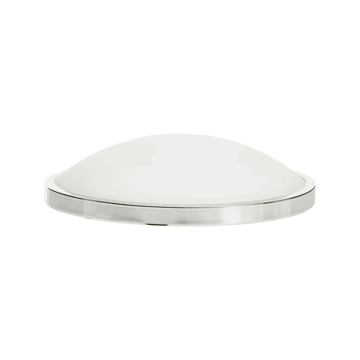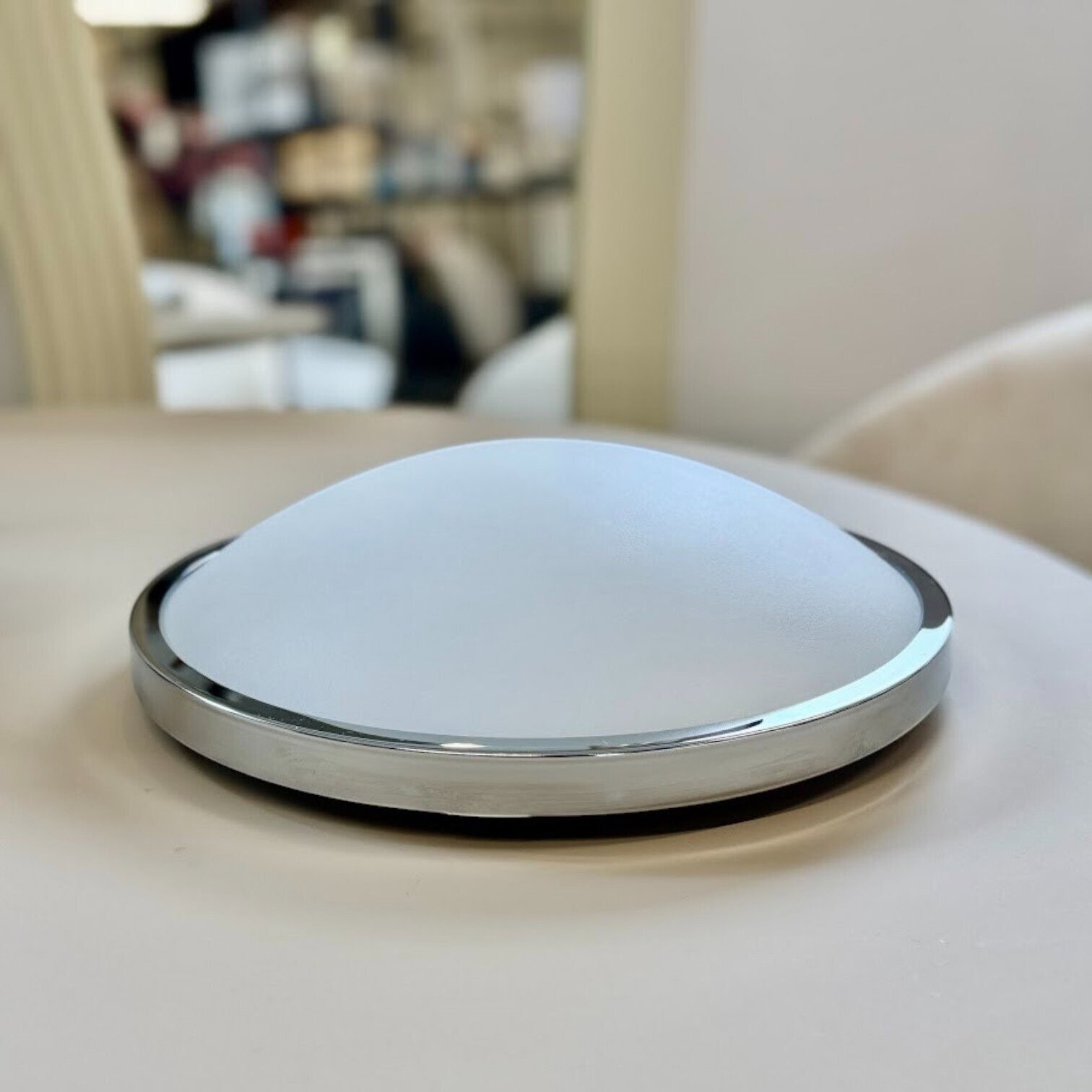 Griestu lampa Calisto no zīmola Sollux ir lielisks piemērs funkcionālam dizainam ar elegantu akcentu. Tās zemo profilu un puslodes formas balto matēto stiklu ieskauj hromēta apmale, piešķirot lampai modernu un nevainojami tīru izskatu. Šis dizains ļauj lampu viegli integrēt jebkurā interjerā – no klasiskā līdz minimālistiskajam.