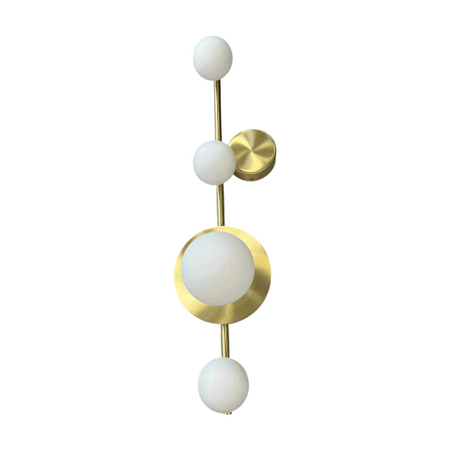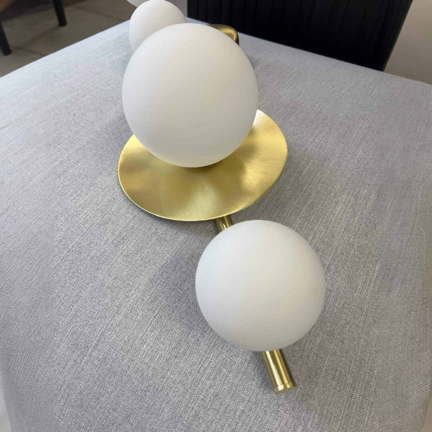 Šī elegantā griestu lampa Ciara apvieno mūsdienīgu dizainu ar izsmalcinātu retro pieskaņu. Zelta matētā metāla konstrukcija harmoniski saspēlējas ar četriem opāla stikla kupoliem, kas izstaro maigu, vienmērīgu gaismu. Asimetriskais izvietojums piešķir lampai unikālu, skulpturālu raksturu, padarot to par stilīgu akcentu jebkurā interjerā.