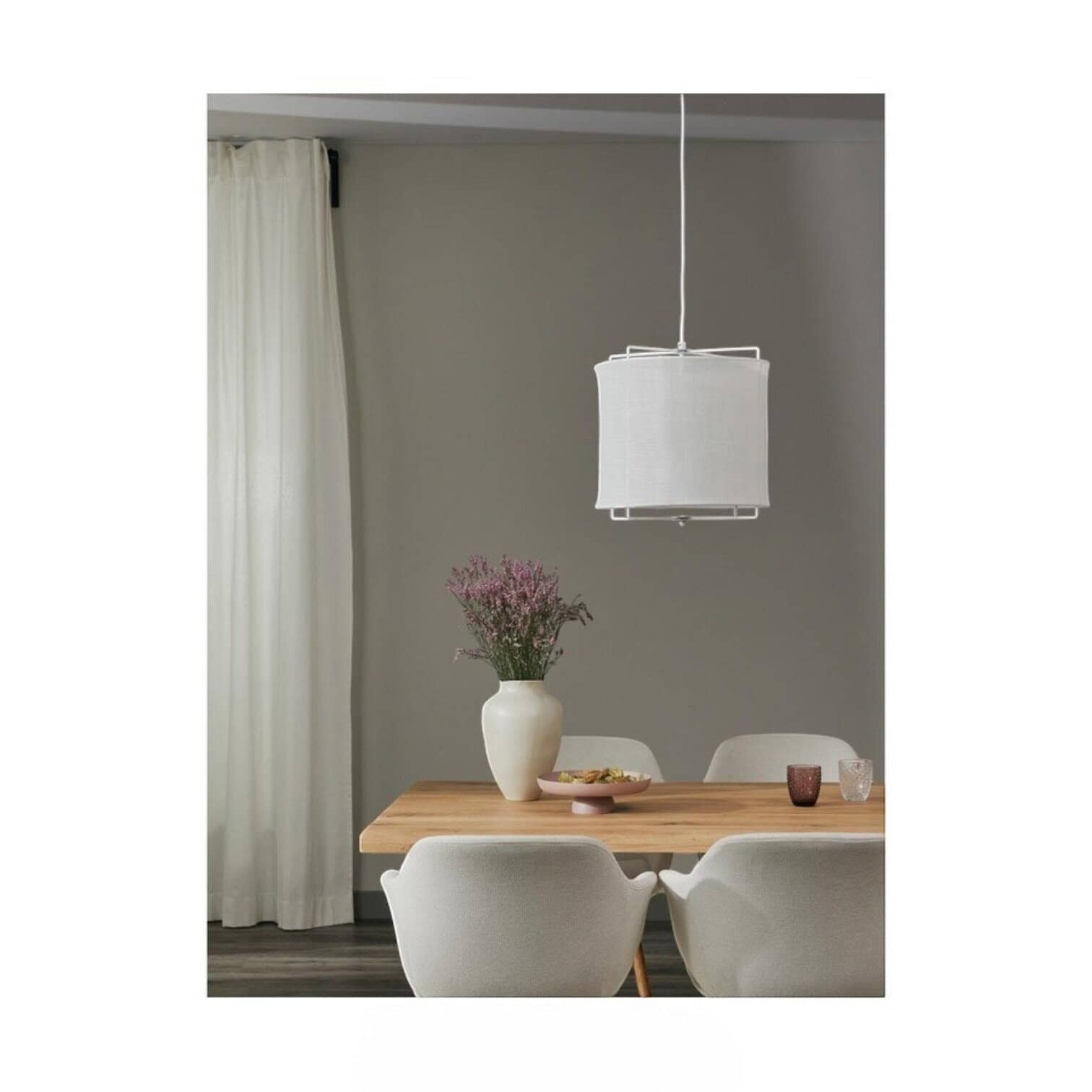Mūsdienīgais un izsmalcinātais dizains ļauj šai lampai lieliski iederēties dažādos interjera stilos – gan modernā, gan klasiskā vidē. Lina audums piešķir lampai dabisku un siltu noskaņu, savukārt metāla rāmis nodrošina formu un stabilitāti.