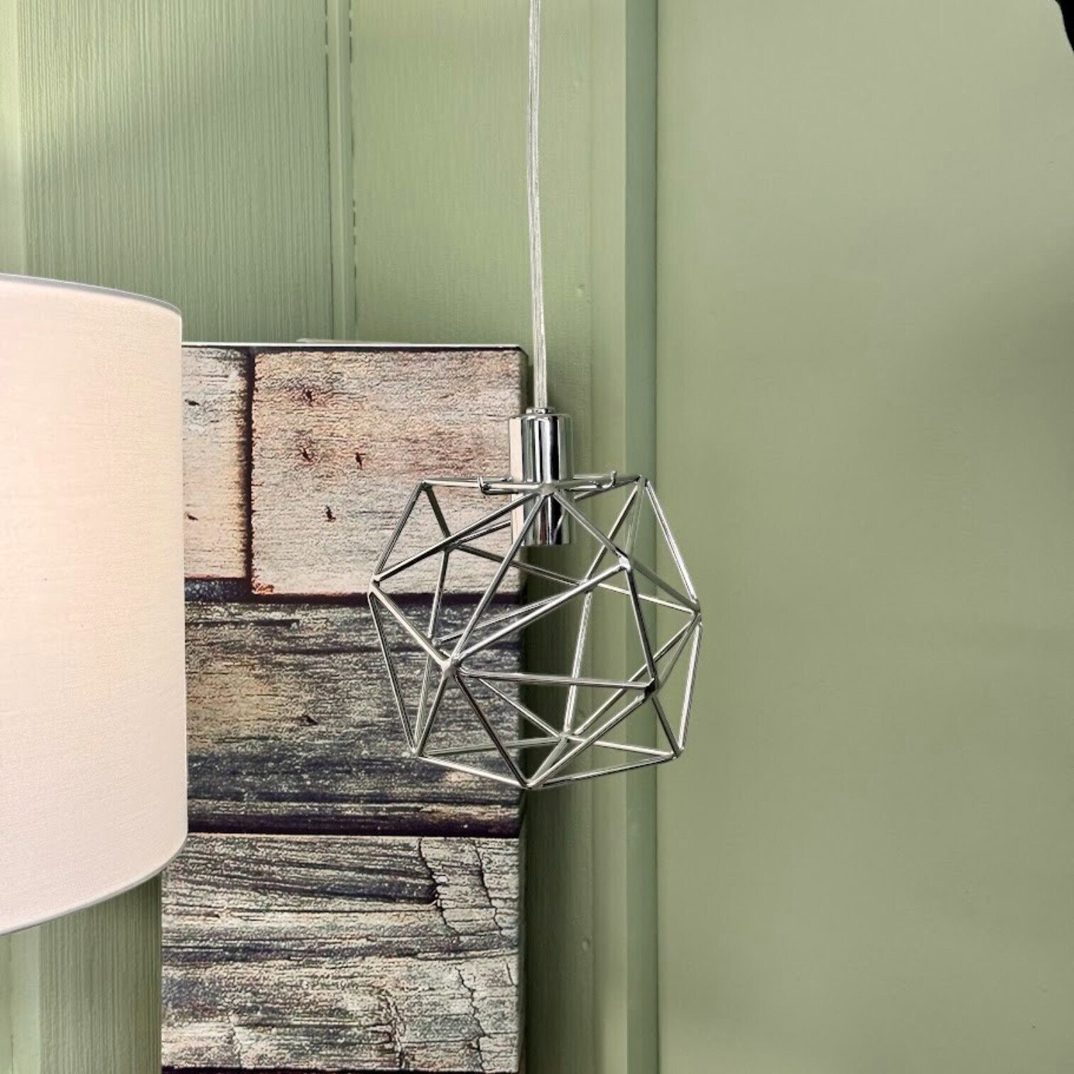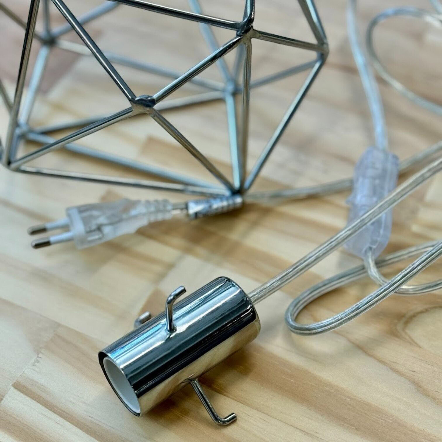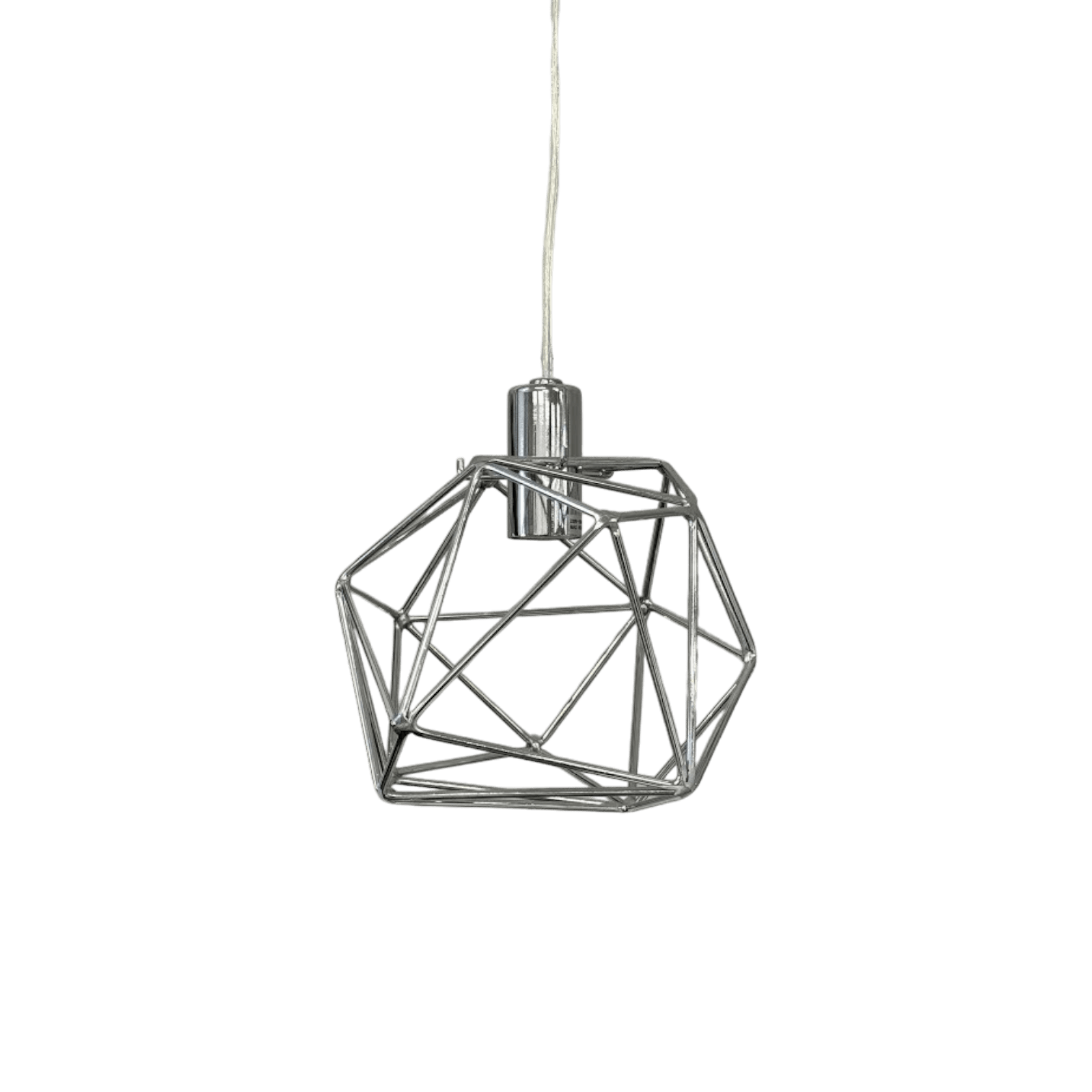 DIAMOND Mini Chrome no Globen Lighting ir kompakta, bet vizuāli izteiksmīga piekaramā lampa, kas iemieso mūsdienīgu eleganci ar ģeometrisku vieglumu. Tās metāla karkass veidots dimanta formā, piešķirot telpai arhitektonisku raksturu un stilīgu vizuālo akcentu. Hromētā apdare nodrošina izsmalcinātu spīdumu, kas harmoniski saskan gan ar modernu, gan industriālu interjeru.