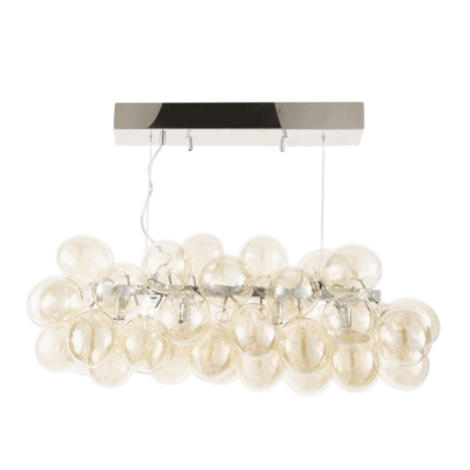 Piekare ir regulējama, tāpēc lampu var pielāgot dažādu telpu griestu augstumam. Stikla lodīšu kompozīcija piešķir lampai vieglu, skulpturālu raksturu, kas lieliski iederas mūsdienīgā vai glam stila interjerā.