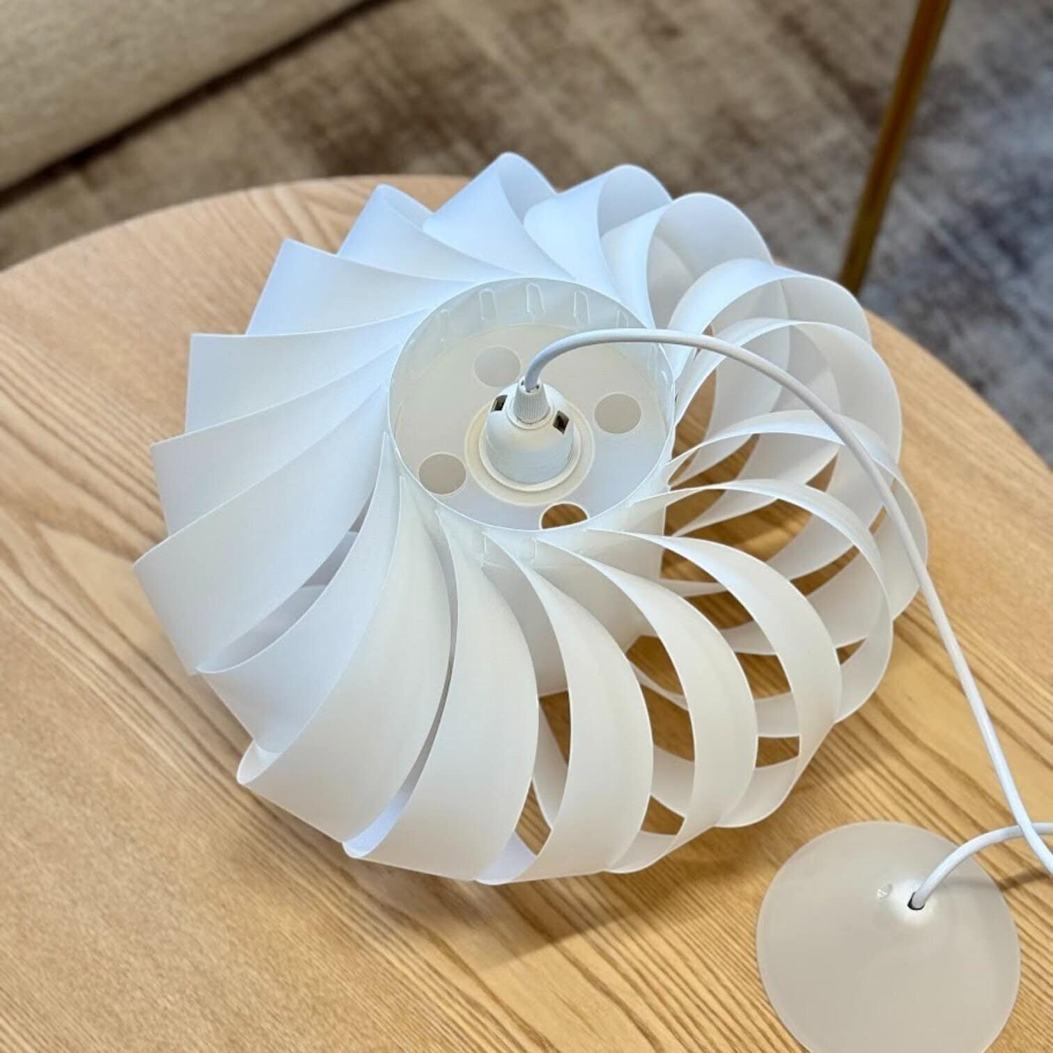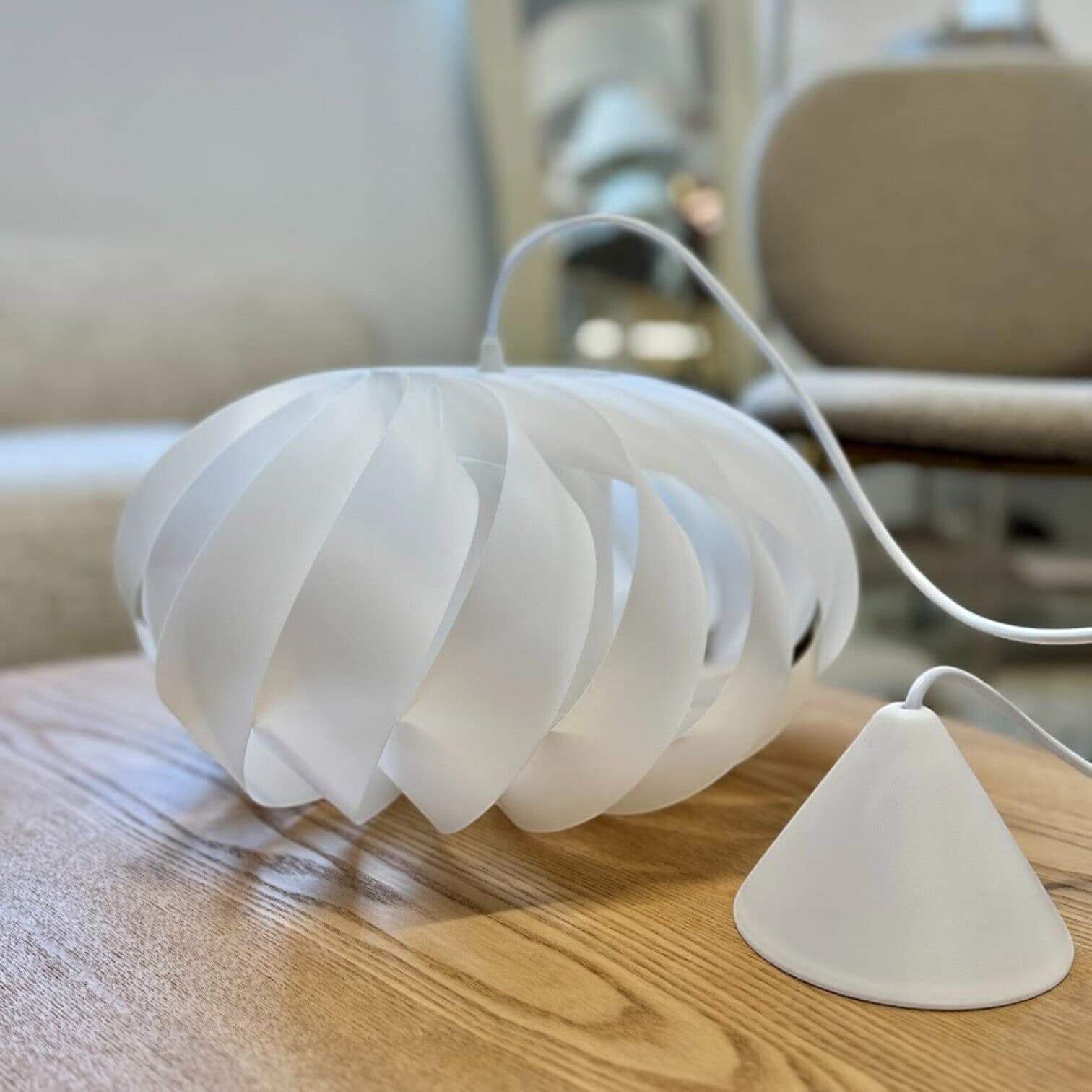 Griestu lampa Imperial ir izsmalcināts interjera akcents, kas apvieno modernu dizainu ar praktisku funkcionalitāti. Tās spirālveida konstrukcija, veidota no viegli savītām plastmasas loksnēm, rada maigu un telpisku siluetu, kas piesaista uzmanību un vienlaikus harmoniski iekļaujas telpā.