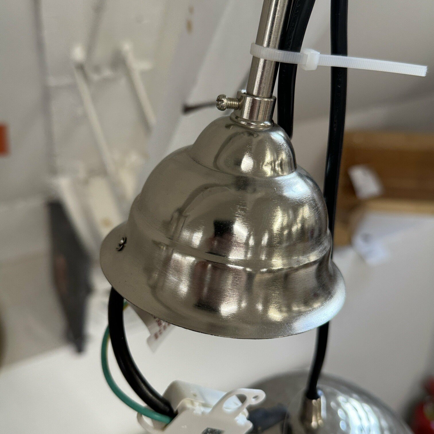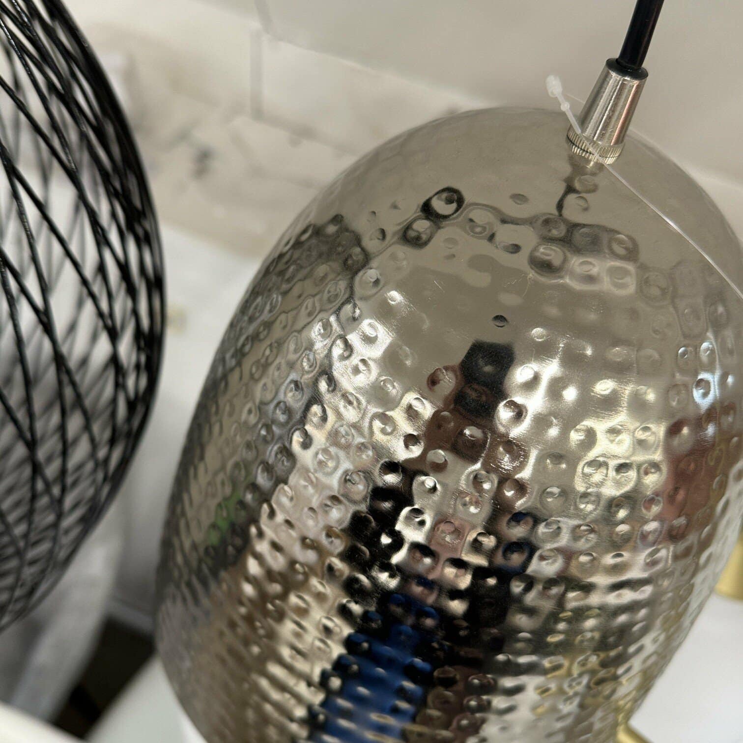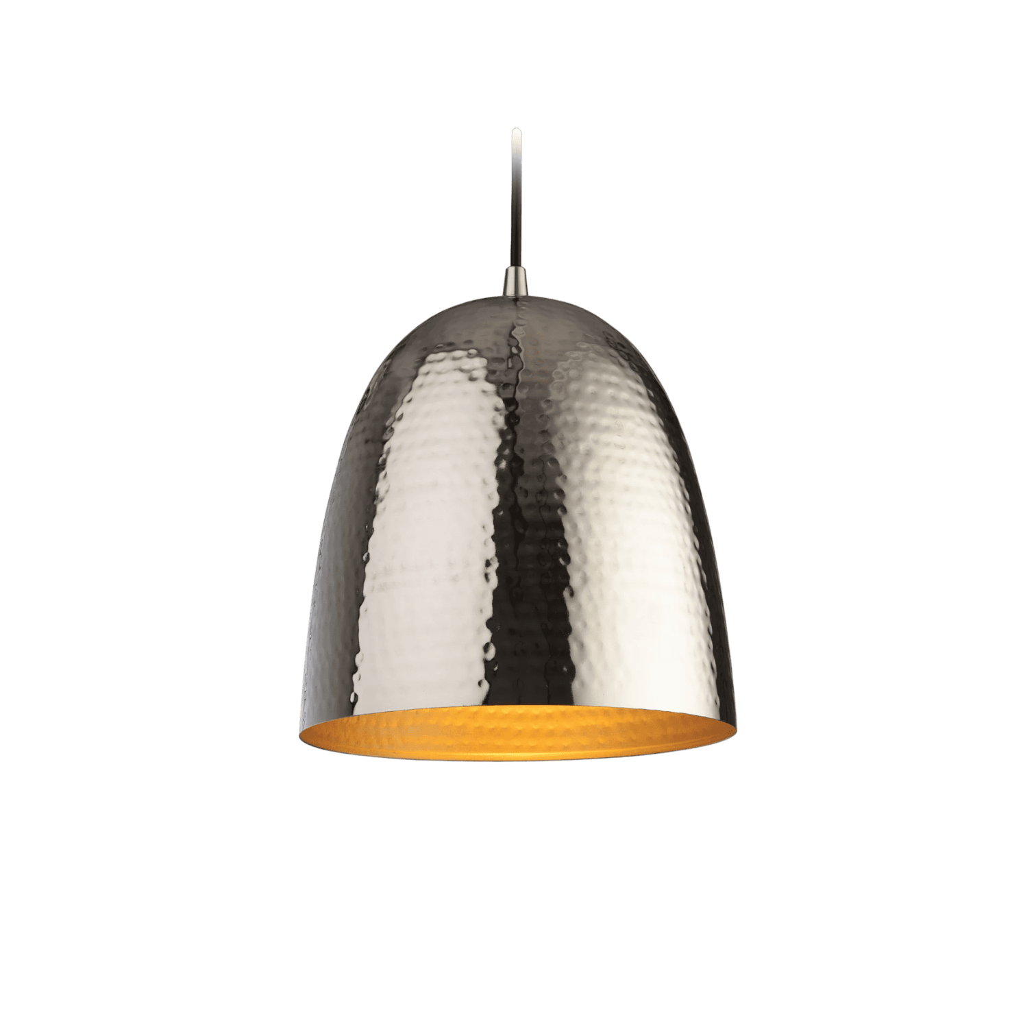 Industriāla stila griestu lampa sudrabā un zeltā. Presēta metāla apstrāde piešķir unikalitāti un neierastu kopskatu. Iederēsies gan virs ēdamgalda, gan gaitenī.