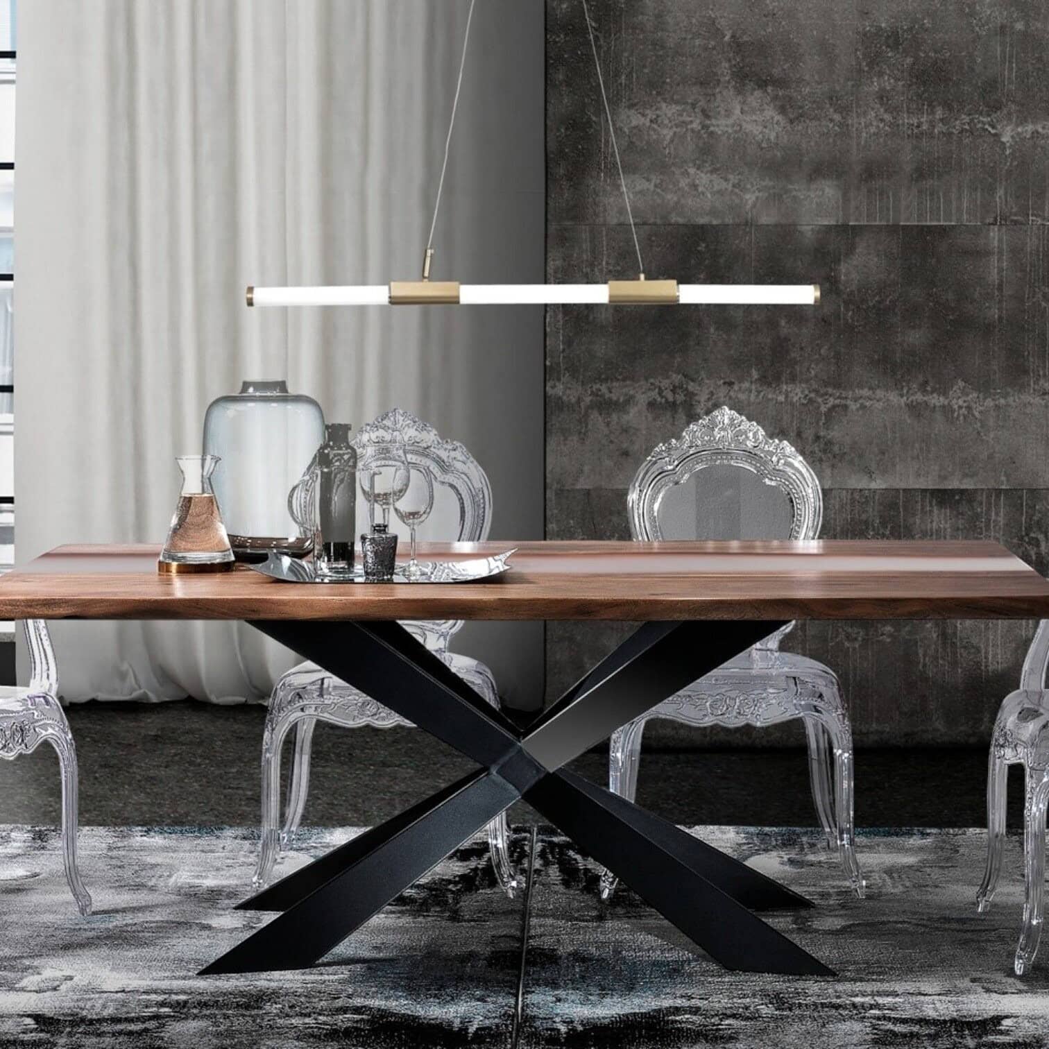 Griestu lampa Tomasucci KATANA ir izcils mūsdienīga un eleganta dizaina piemērs, kas apvieno stikla un tērauda izsmalcinātību. Tās slaidā un lineārā forma vizuāli atgādina stilizētu zobenu jeb “katanu”, kas arī iedvesmojis lampas nosaukumu.