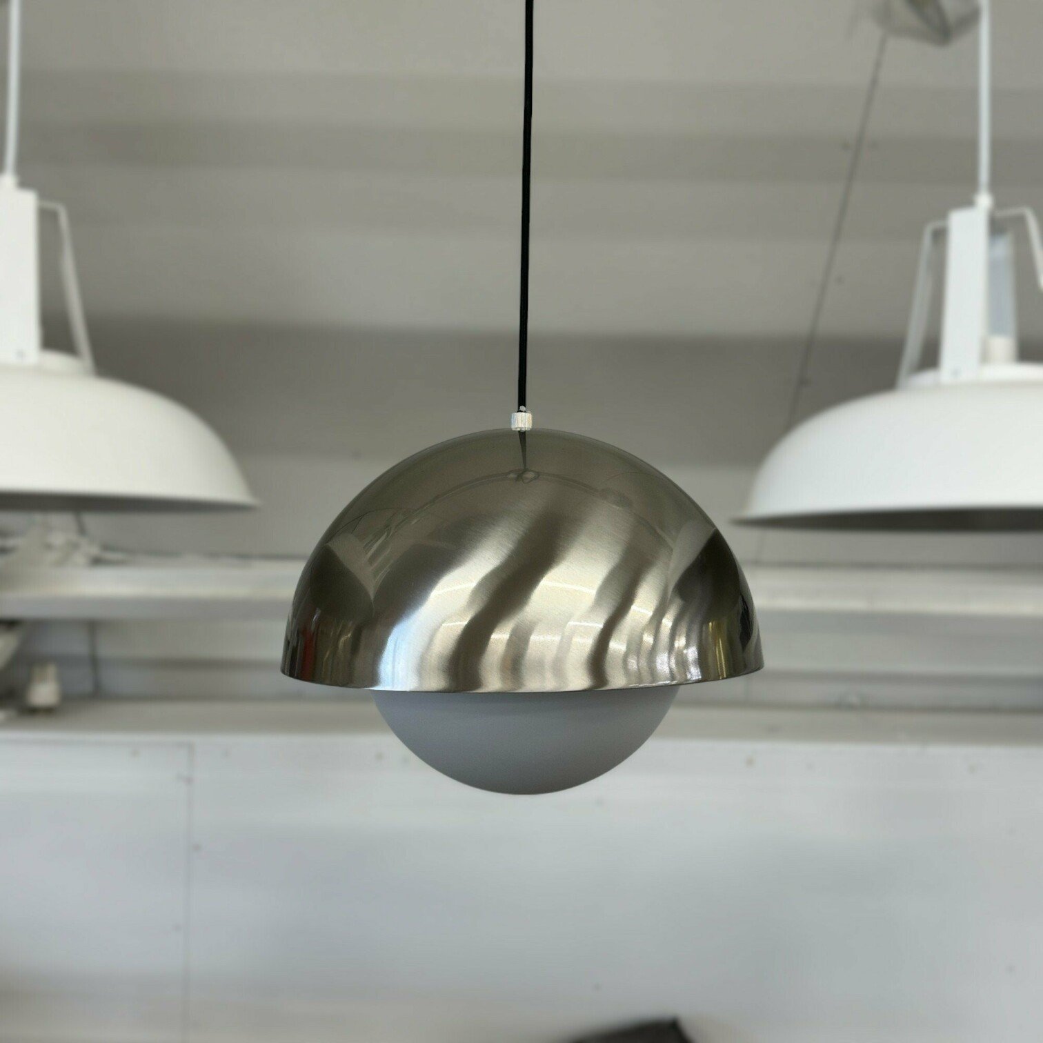 Krāšņagriestu lampa ar daļēji caurspīdīgu stikla kupolu.