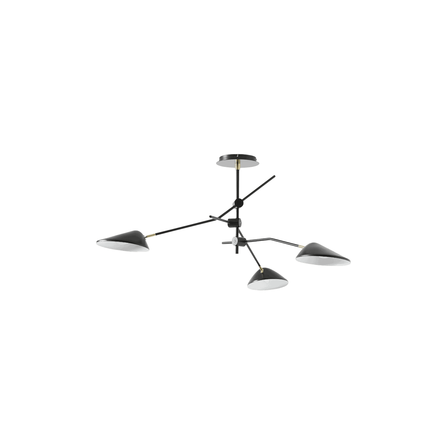 Šī griestu lampa ir ne tikai estētiska, bet arī funkcionāla. Lampas rokas iespējams uzstādīt gan vērstas uz augšu, gan uz leju, kā arī tās var individuāli pagriezt, lai pielāgotu gaismas virzienu un kopējo lampas augstumu. Arī abažūri ir regulējami gan horizontāli, gan vertikāli, nodrošinot elastīgu apgaismojuma pielāgošanu telpas vajadzībām.