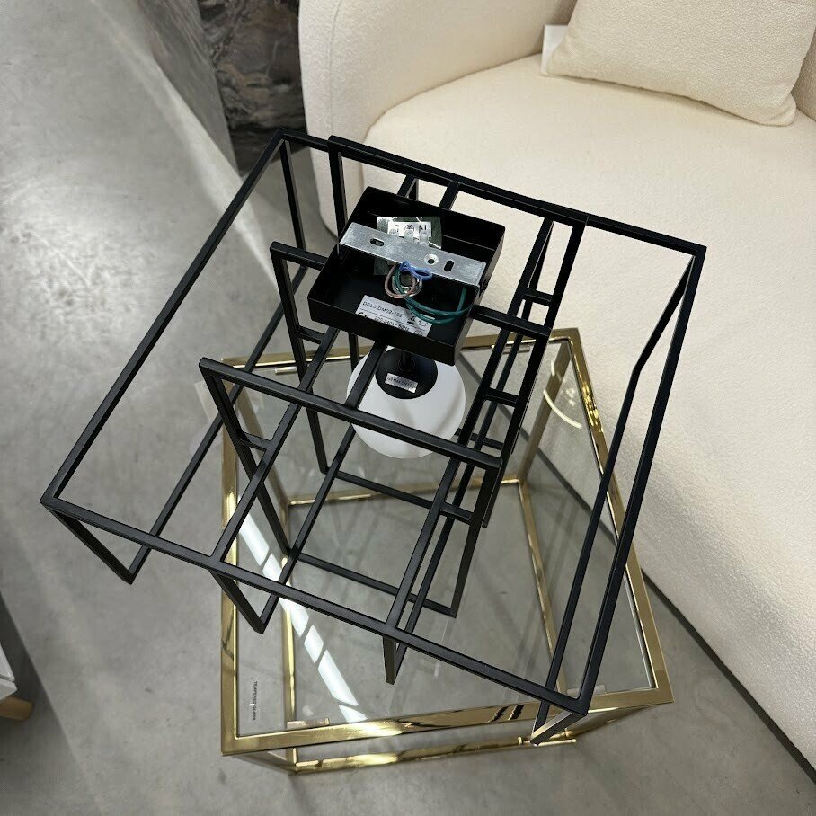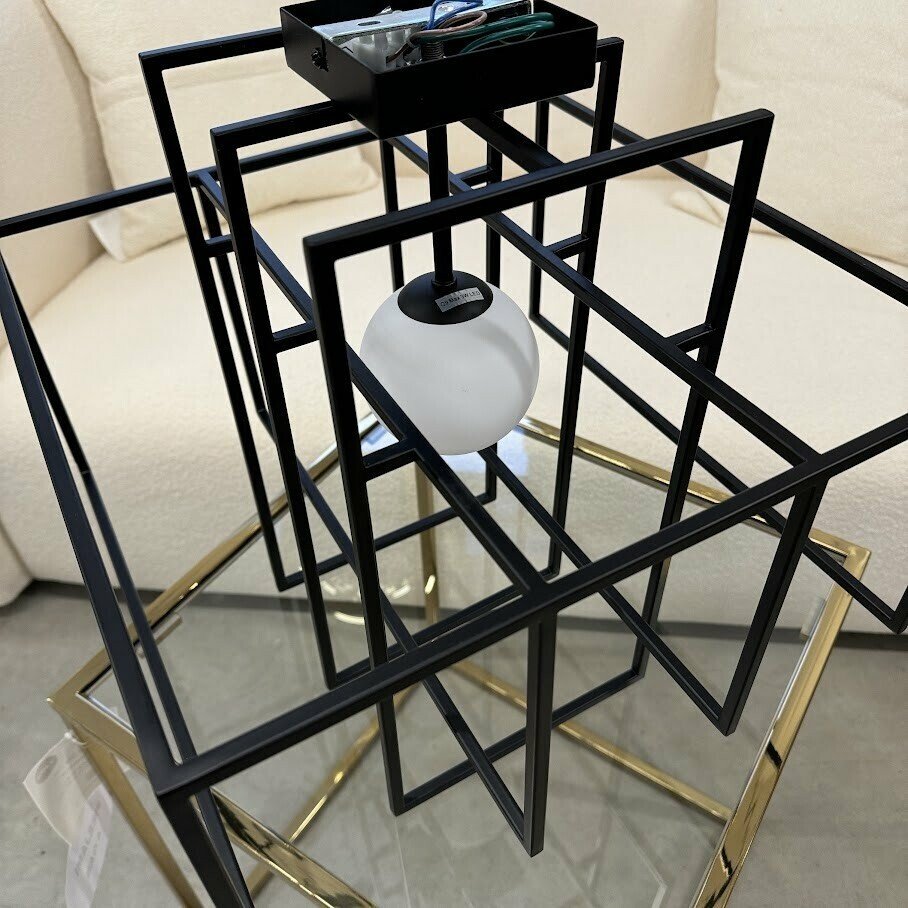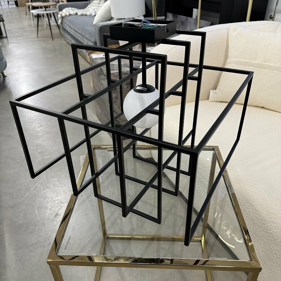 Dizaina griestu lampa ar abažūru no daļēji caurspīdīga opāla stikla. Lampa ir dimmējama.
