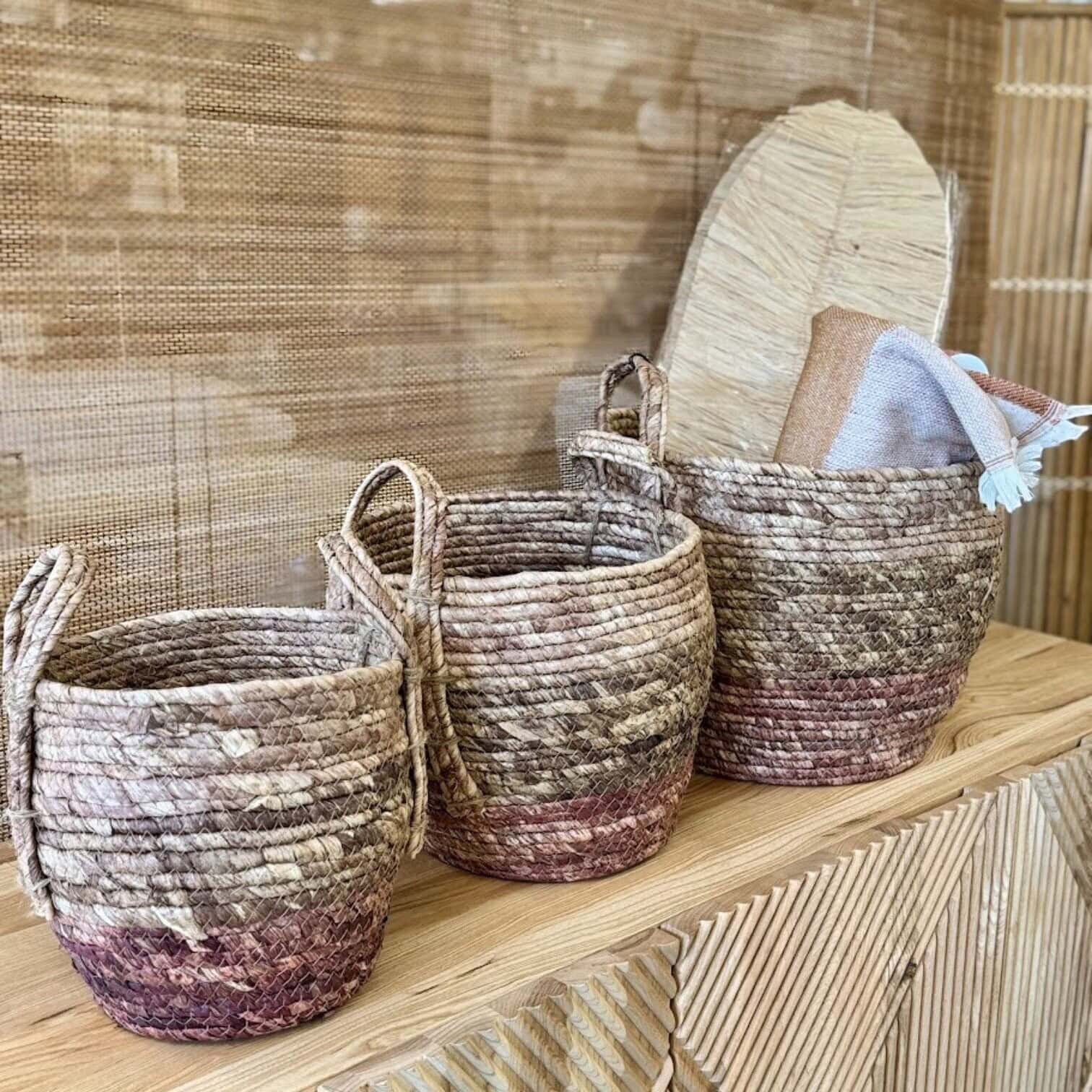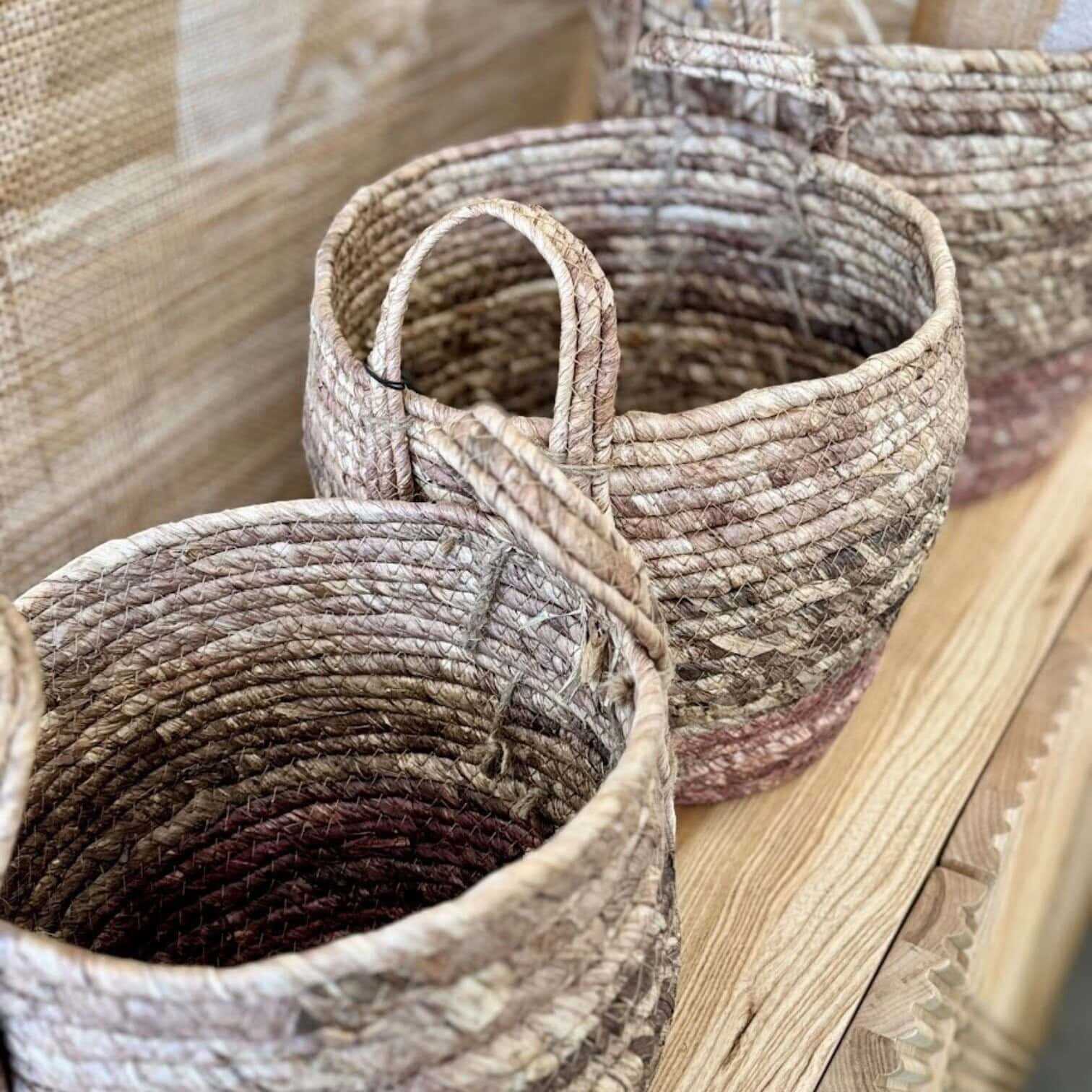 Izgatavoti no dabīga materiāla, šie grozi ir lieliski piemēroti gan uzglabāšanai (piemēram, segu, rotaļlietu vai veļas), gan kā dekoratīvs akcents dzīvojamā istabā, vannasistabā vai guļamistabā.
