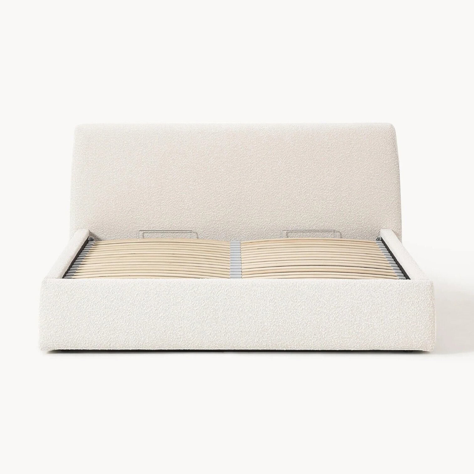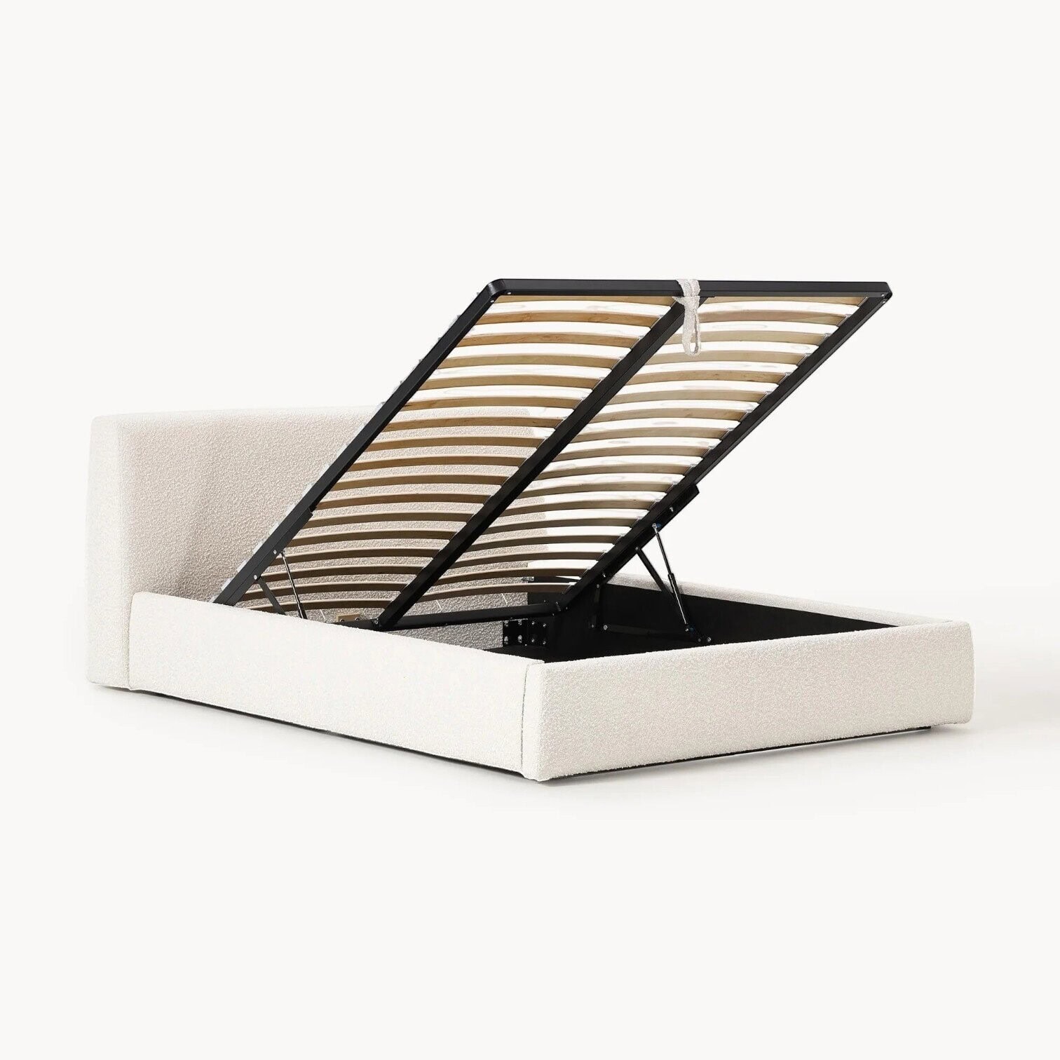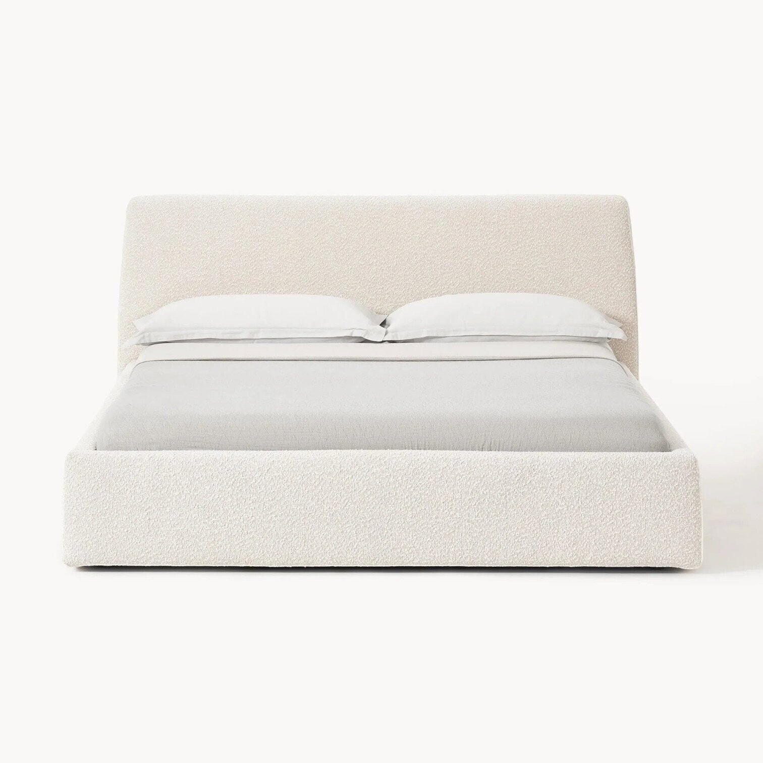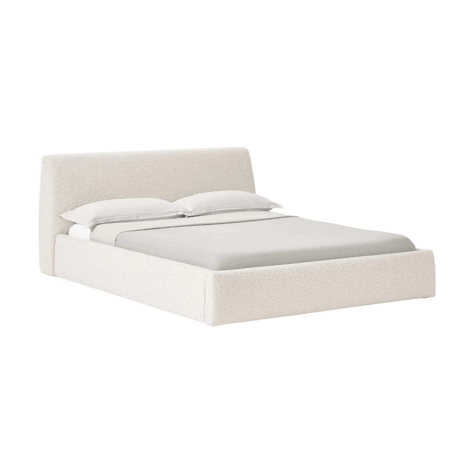Gulta Cloud piedāvā ideālu risinājumu tiem, kas vēlas apvienot komfortu ar praktiskumu. Elegants dizains ar gaišu bouclé auduma apdari piešķir guļamistabai siltu, mājīgu un modernu noskaņu.