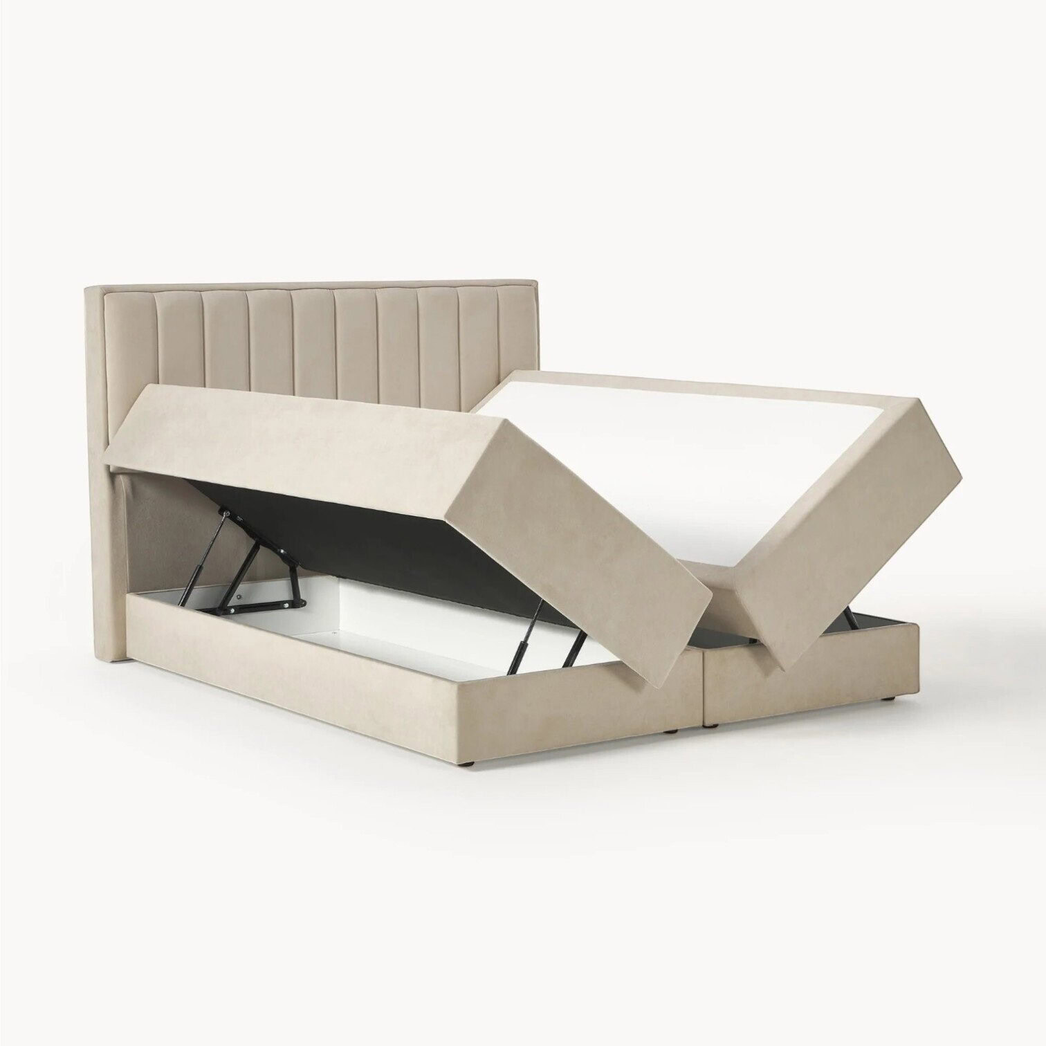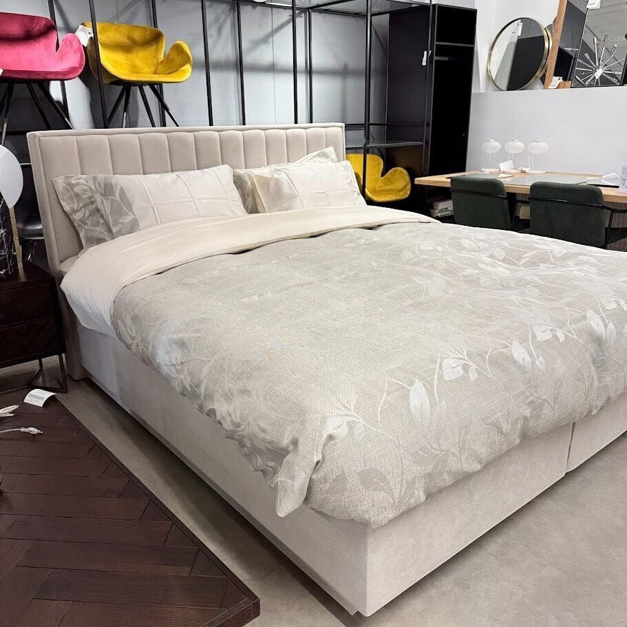 Atklājiet greznības un komforta apvienojumu ar LIVIA boxspring gultu, kas nodrošina miegu kā uz mākoņiem. Ar trīspakāpju uzbūvi – apakšējo kasti ar Bonell atsperēm, 5 zonu kabatu atsperu matraci un premium virsmatraci – šī gulta ir izstrādāta, lai nodrošinātu maksimālu atbalstu un izcilu miega kvalitāti.
