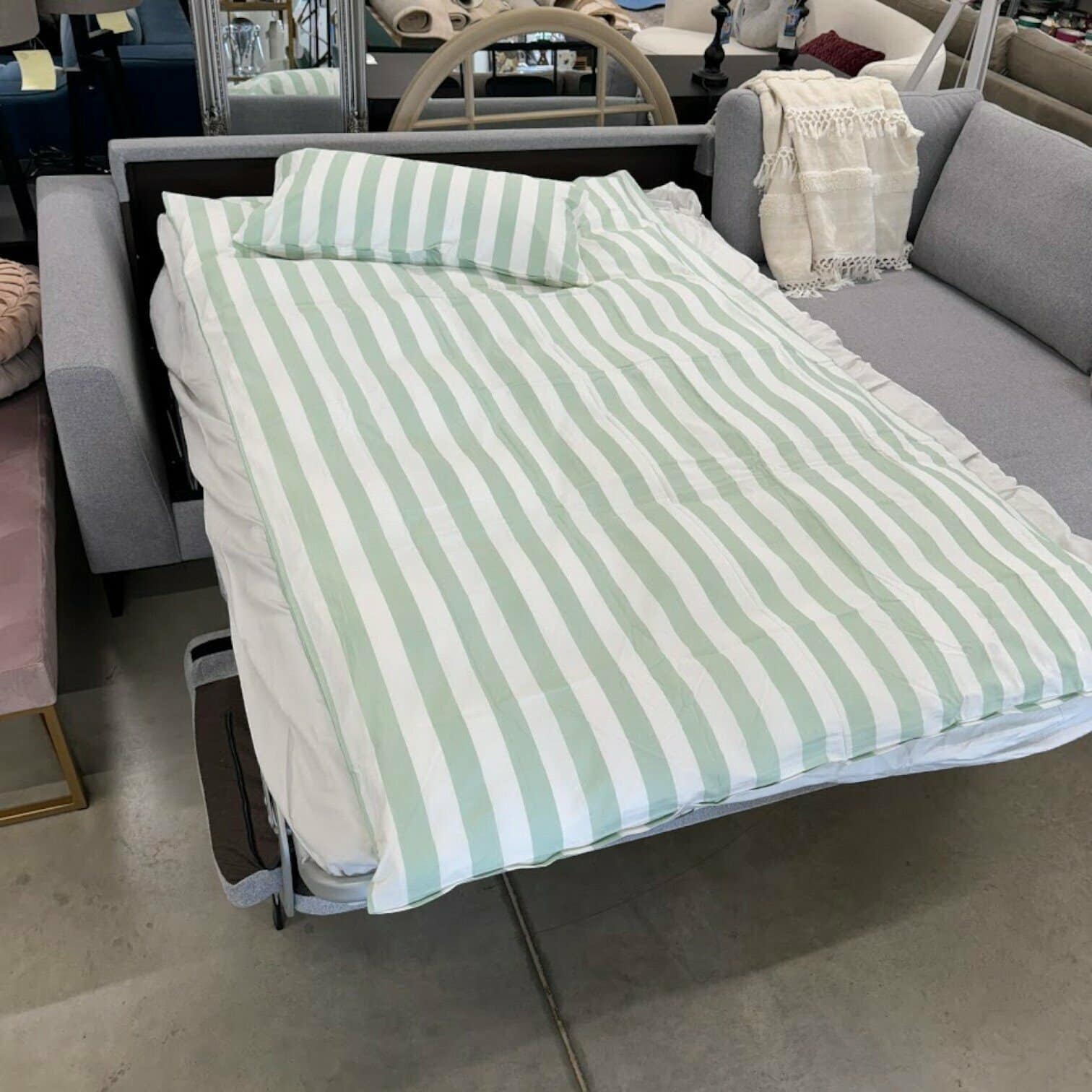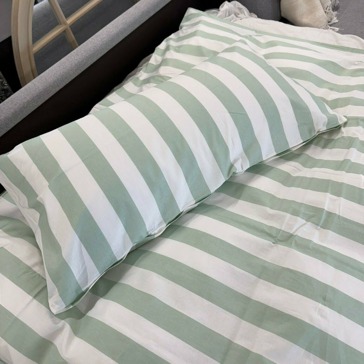 Šī gultasveļa ar savu svītraino dizainu izstaro mūsdienīgumu un bezrūpīgu vieglumu. Organiskās kvalitātes gludais Renforcé audums ir lieliski elpojošs, ādai draudzīgs un regulē temperatūru – ideāli piemērots visa gada garumā.