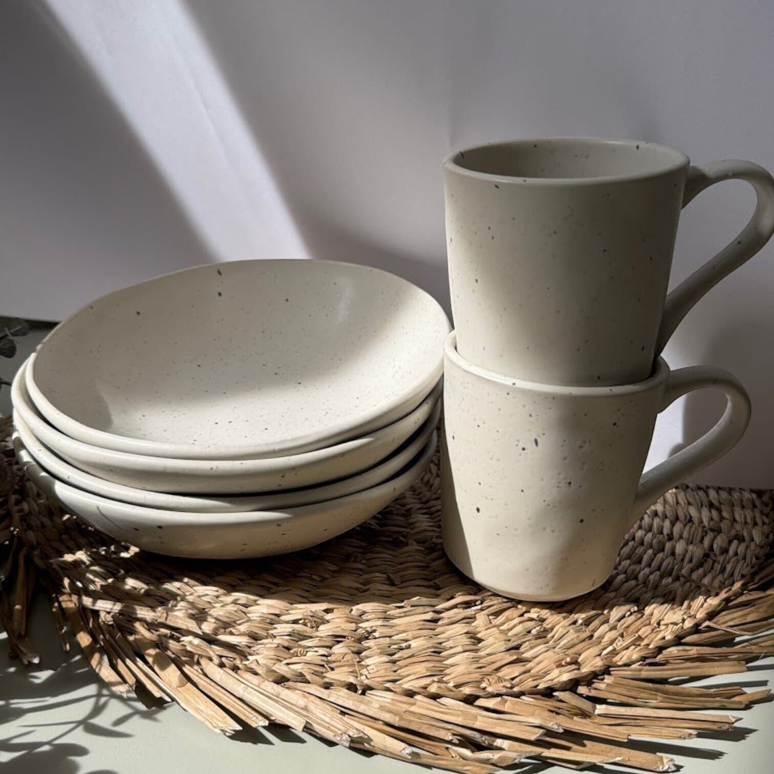 Katrai krūzei ir gluda, matēta apdare un ērts, noapaļots rokturis, ko ir viegli satvert. Akmens materiāls nodrošina lielisku siltuma saglabāšanu, saglabājot jūsu kafiju vai tēju siltu ilgāk. Turklāt šīs krūzes ir drošas mikroviļņu krāsnī, ļaujot ātri uzsildīt, neapdraudot to gludo izskatu.