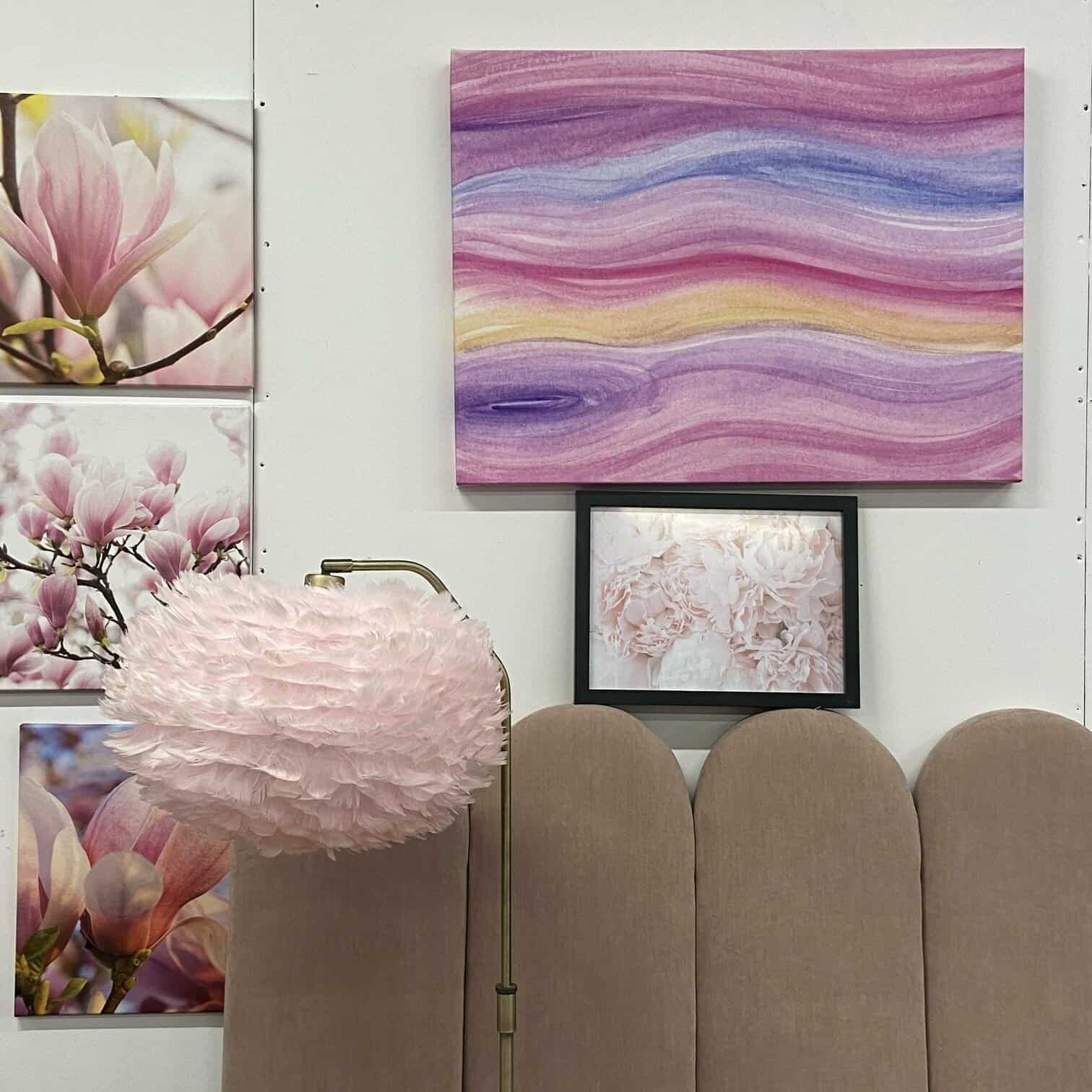 Audekls (kanva) ar apdruku, rozā toņu abstrakts.
