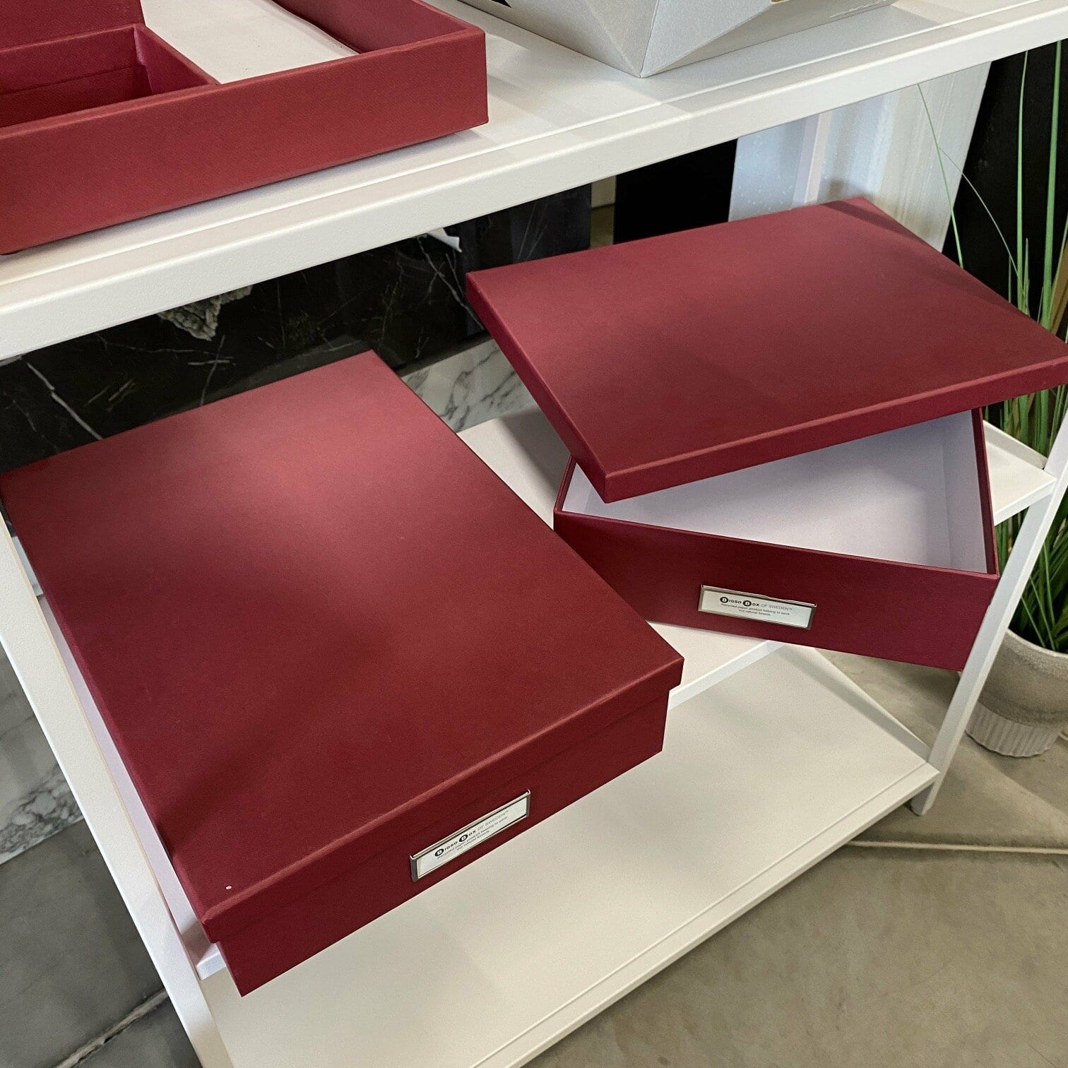 Uzglabāšanas, dokumentu kaste sarkanā krāsā.