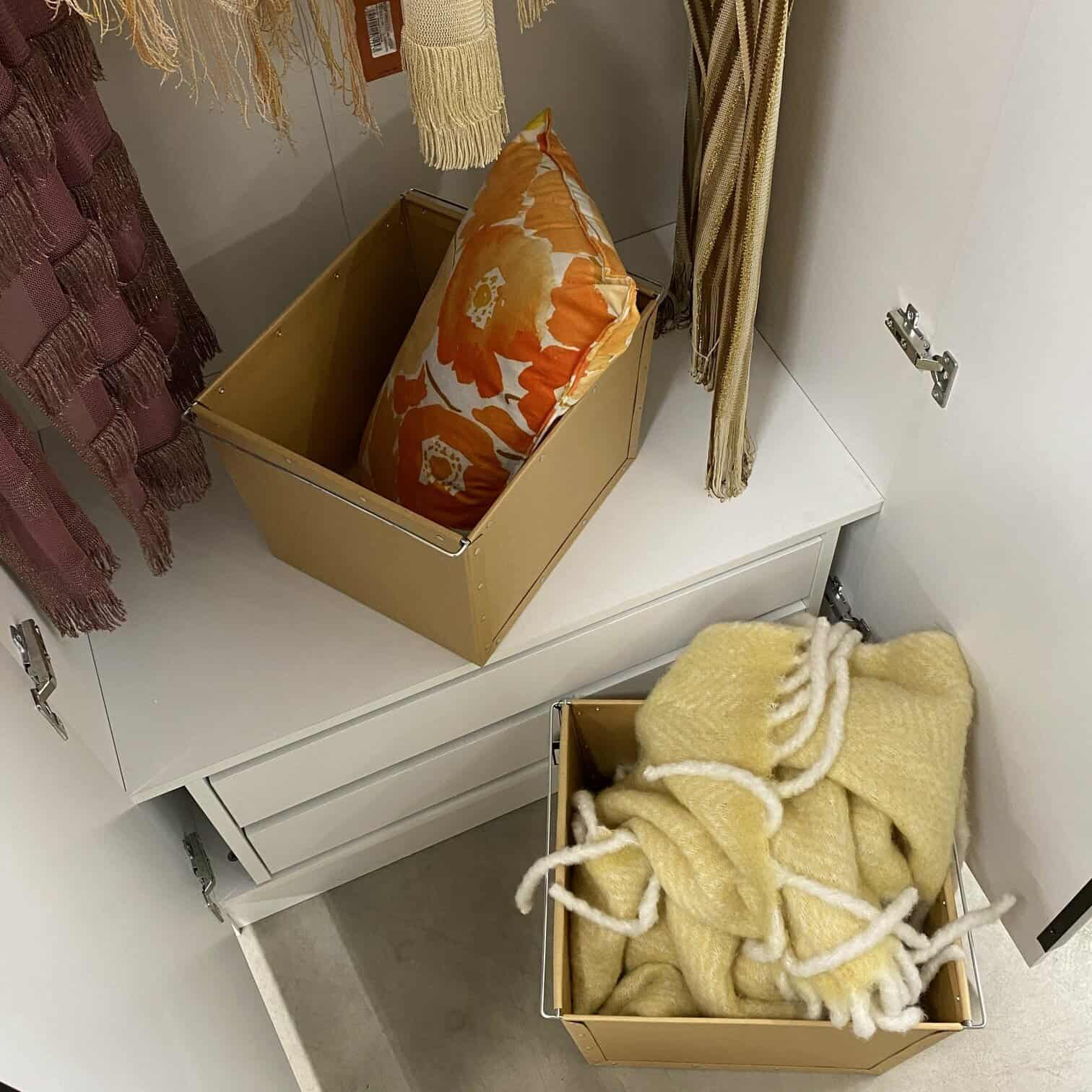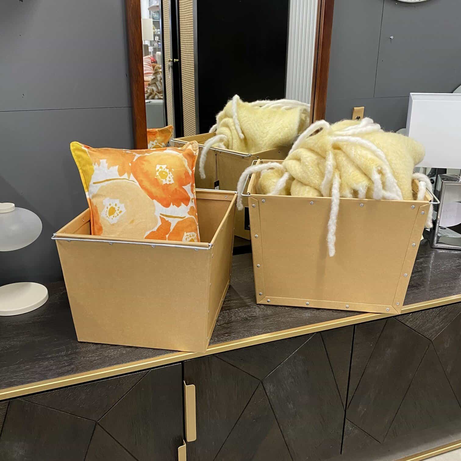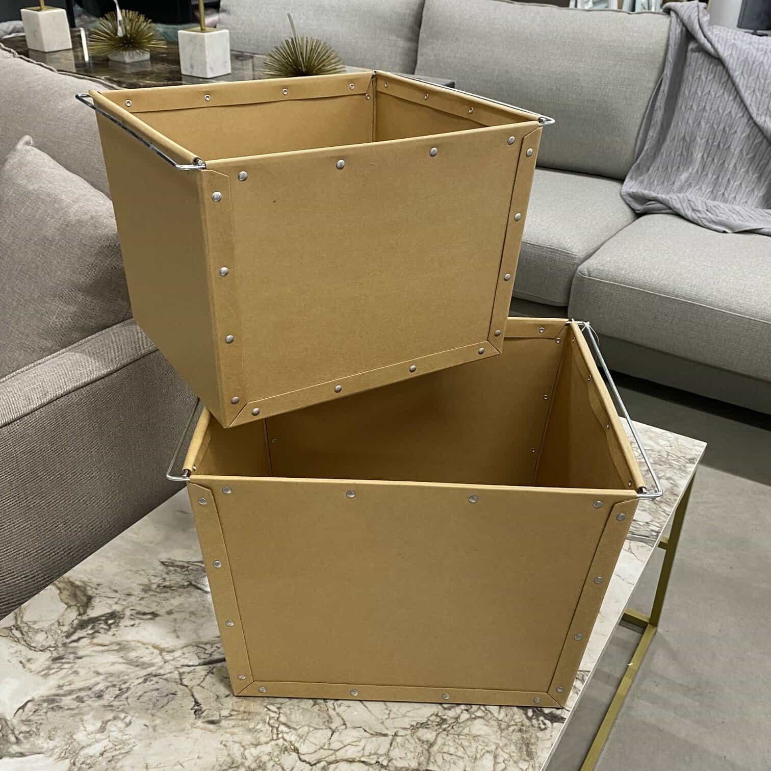 Kuram gan nenoder kastes, šīs tiešām ir līdzīgas parastām iepakošanas kastēm, bet tās ir stingrākas un dizaina ziņā veiksmīgāk iederēsies interjerā, ja nu gadījumā nav plānots tās kastes paslēpt.