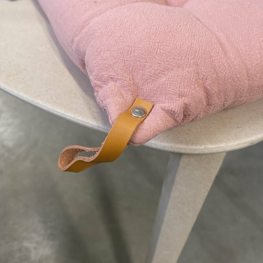 Skaistias krēsla spilvens BILLIE ir ar izšūtu virsmu un ādas cilpu, lai to ērti piestiprinātu pie krēsla. Šis izsmalcinātais un krāsainais spilvens būs kā lielisks akcents jebkurā virtuvē vai pie ēdamgalda.