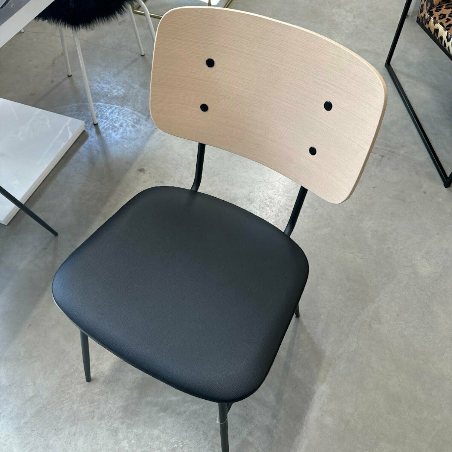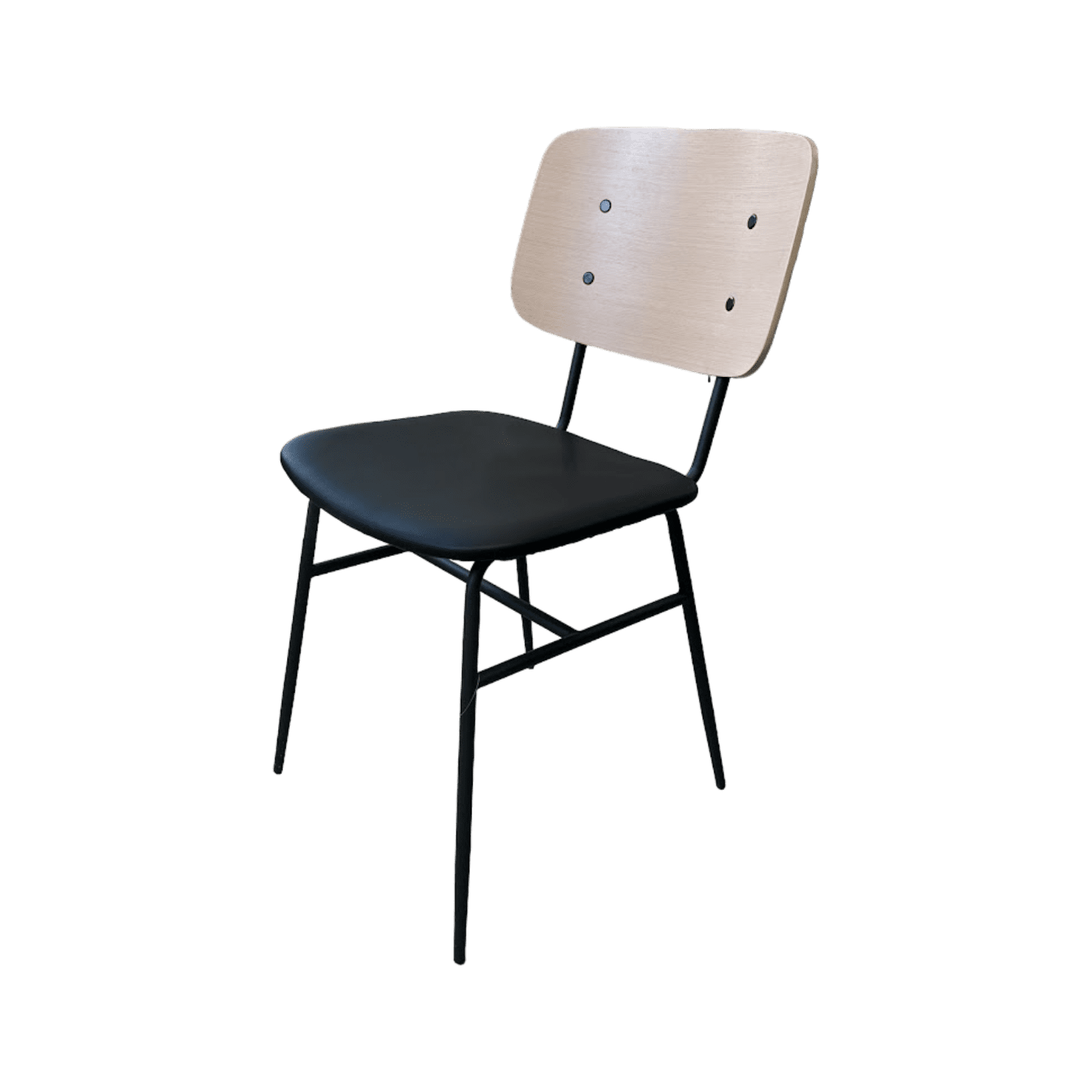 Brent krēsls melnā, brūnā krāsā ar oša muguras plāksni un ērti polsterētu, plašu mākslīgās ādas sēdekli. Metāla rāmim ir apaļš profils, un kājām ir konusveida efekts.