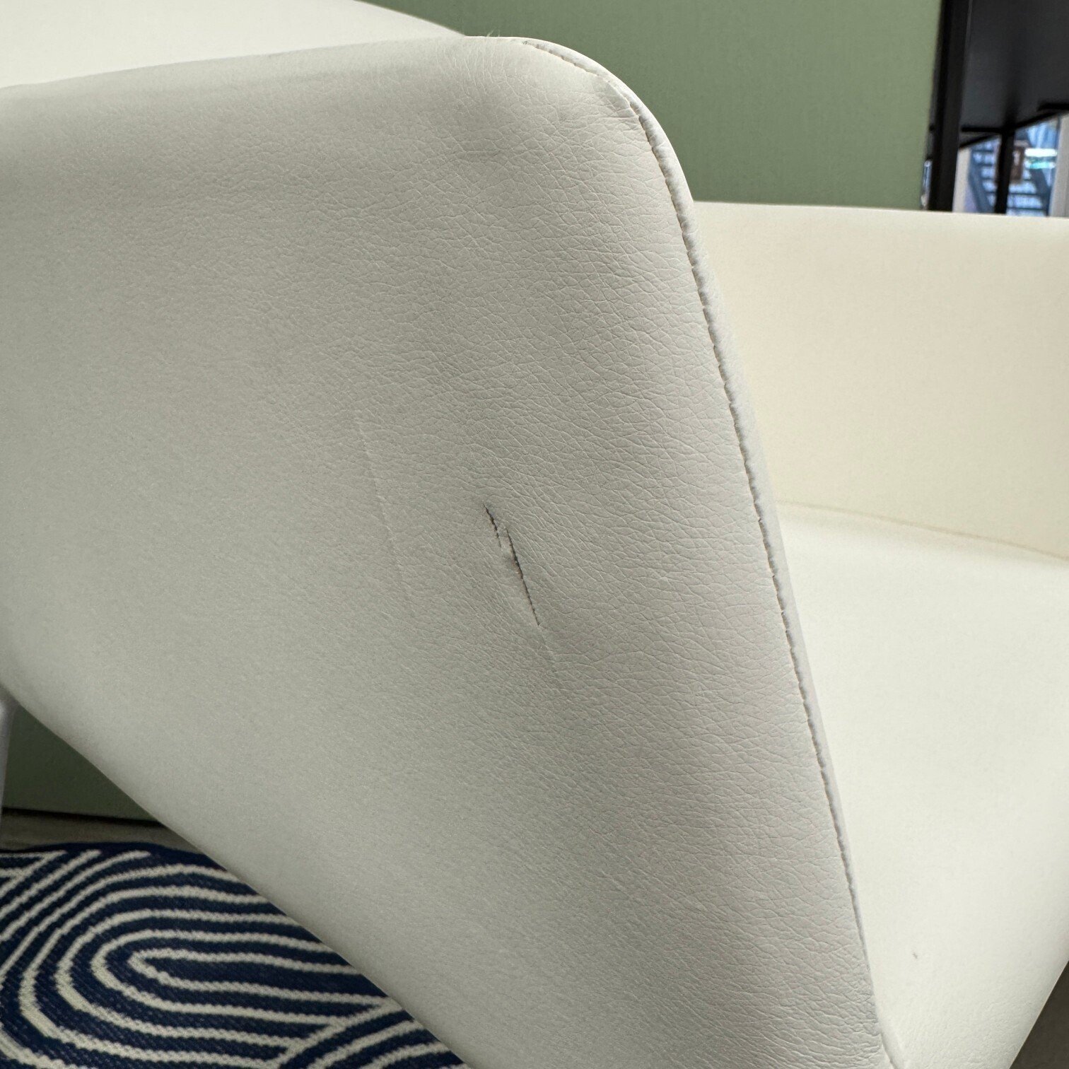 Vienam krēslam sānā ir bojājums.