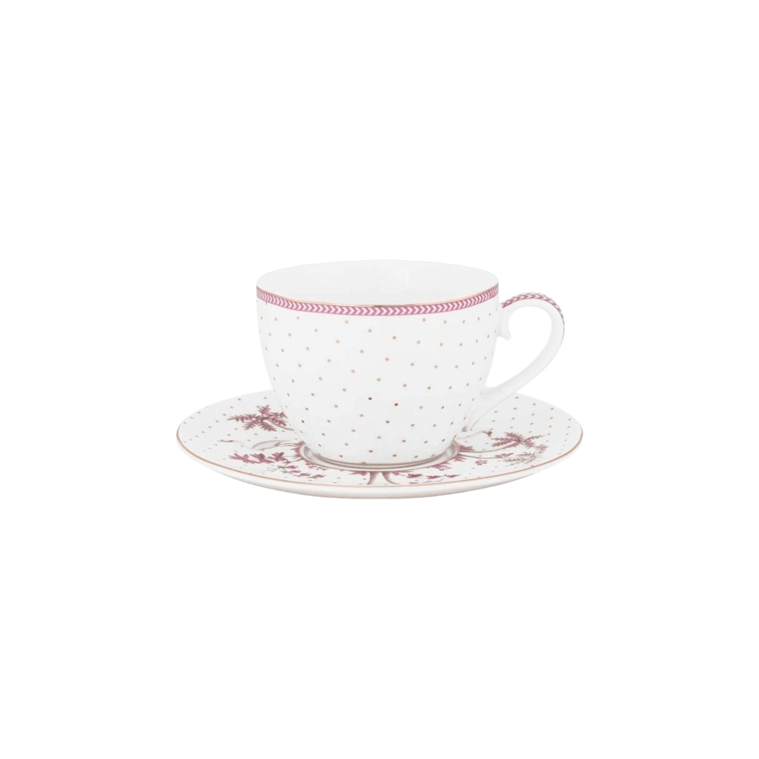 Krūze ar apakštasi Jolie Dots Gold Pink no Jolie kolekcijas būs lieliski piemērota visiem karstajiem dzērieniem – kafijai, tējai vai karstajai šokolādei. Baltā fona dizains ir smalki rotāts ar zelta punktiņiem, piešķirot tam vieglu greznības pieskārienu.
