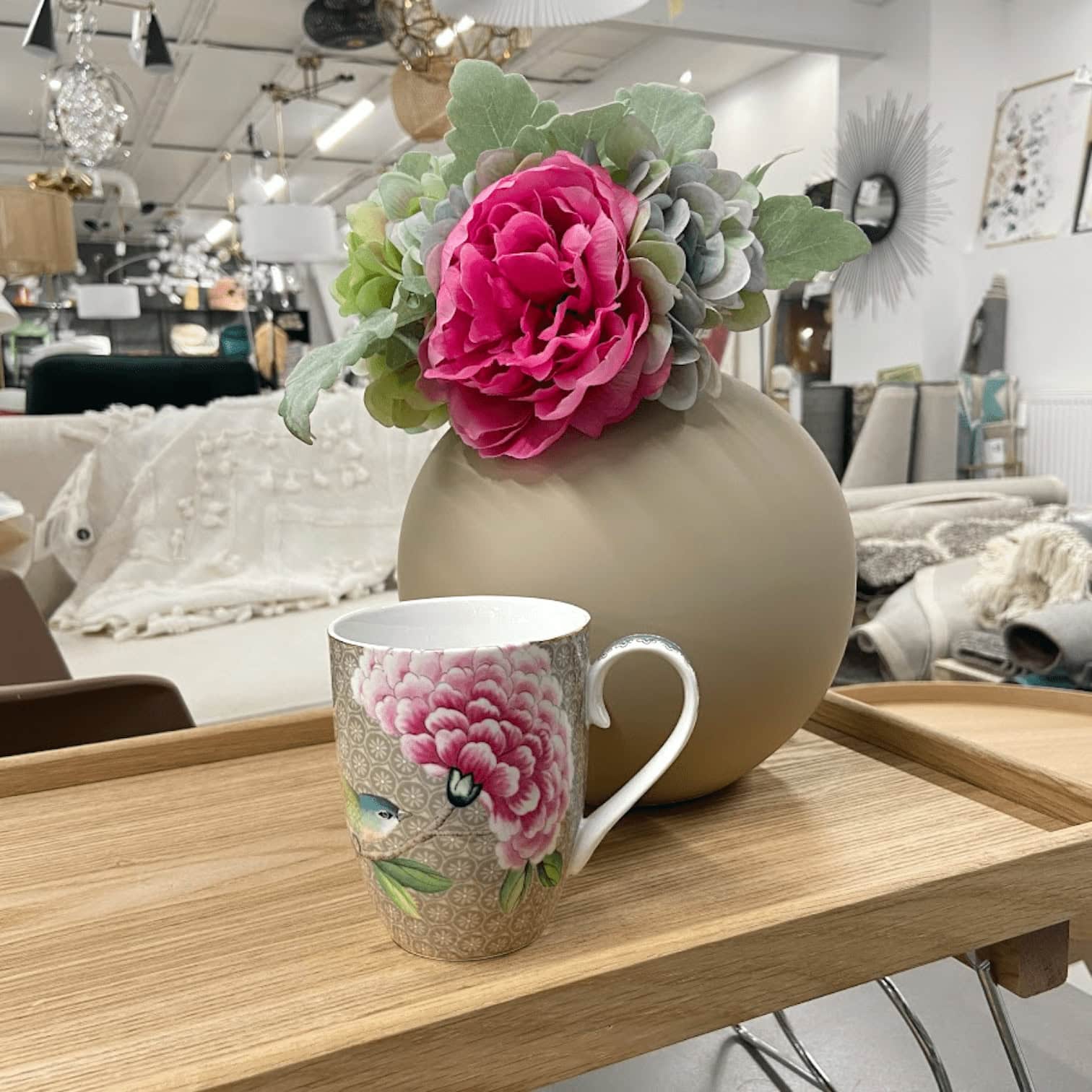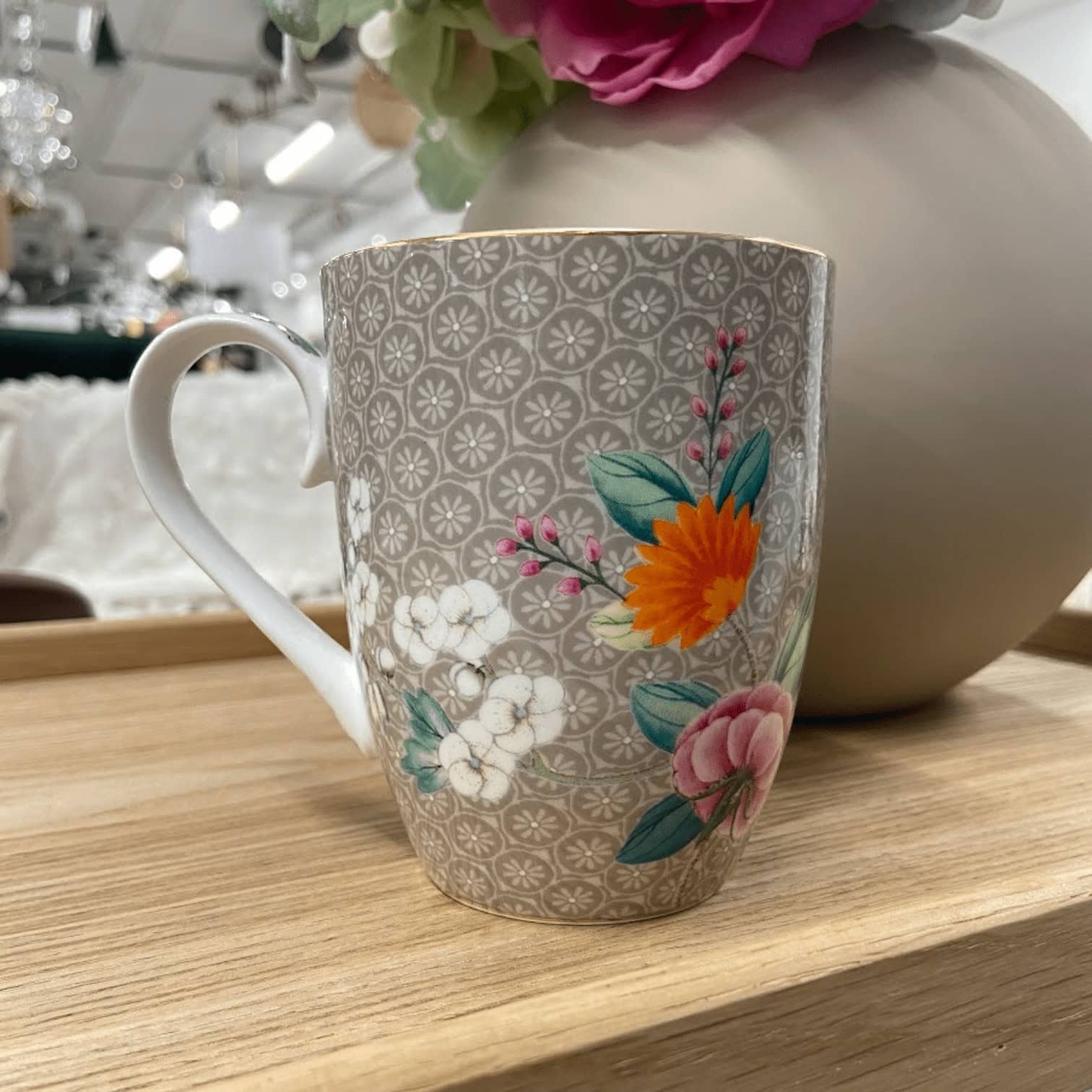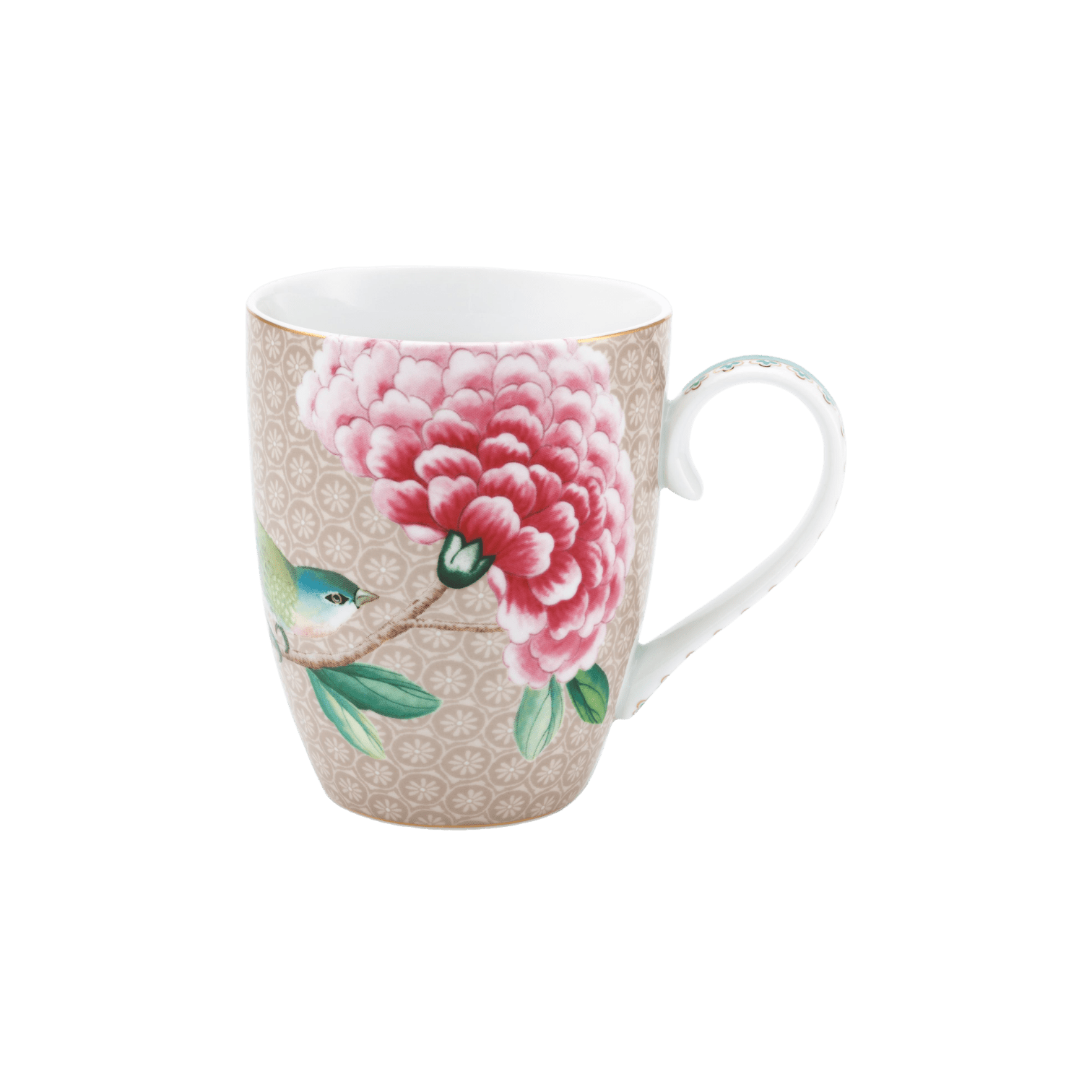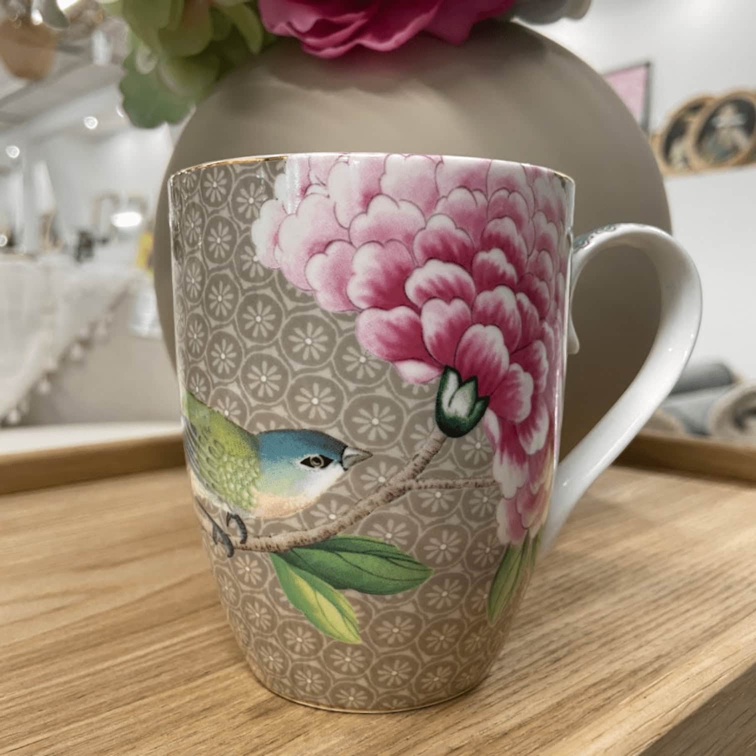 Pievienojiet savai ikdienai krāsainu un elegantu pieskārienu ar PIP Studio krūzi “Blushing Birds”. Šī lielā krūze ar 350 ml tilpumu ir perfekta izvēle rīta kafijai vai pēcpusdienas tējai. Krūzes dizainu izceļ delikāti ziedu un putnu motīvi, kas izceļas uz maiga haki krāsas fona.