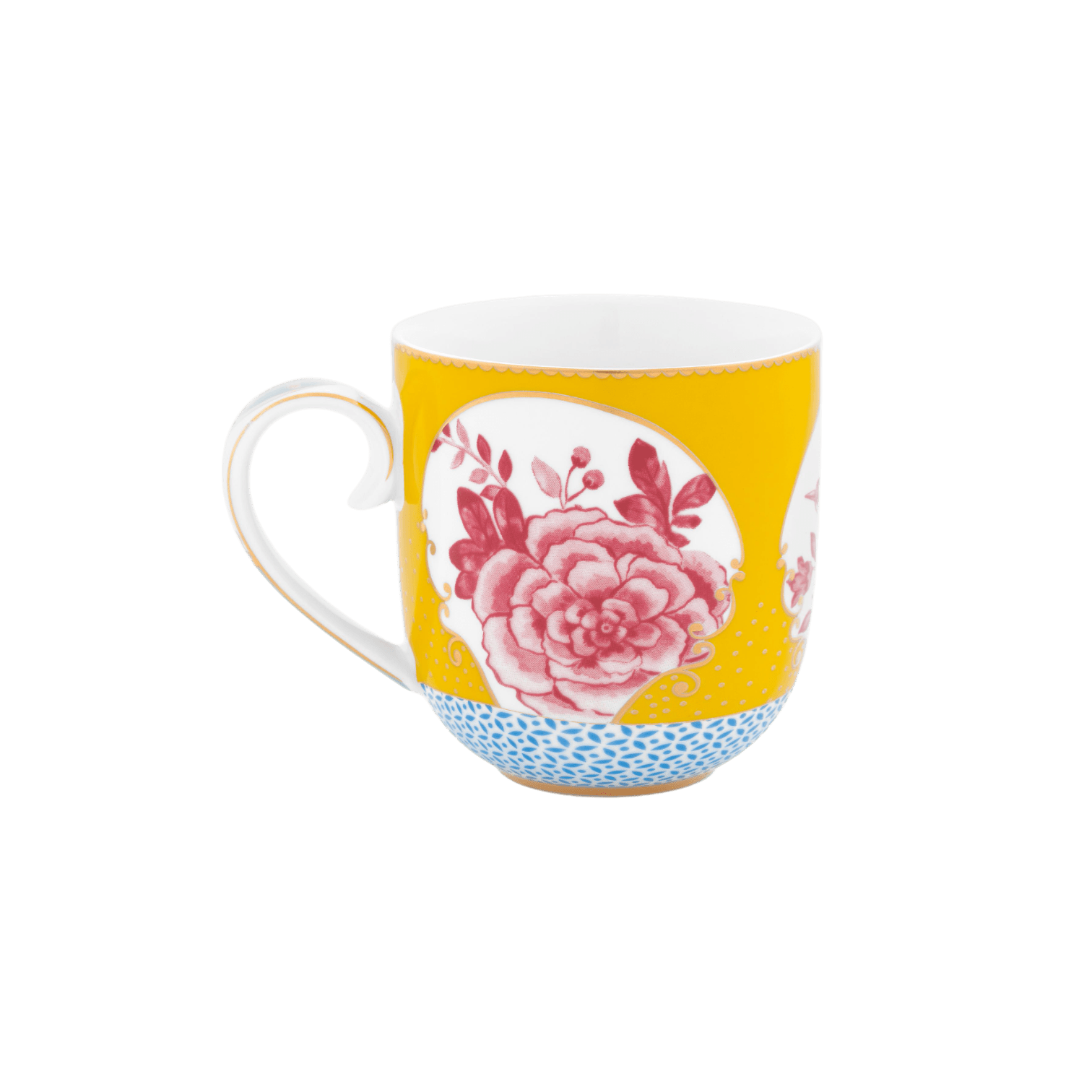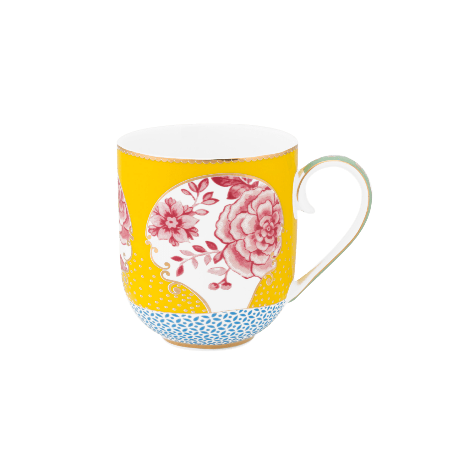 Bagātiniet savu porcelāna kolekciju ar šo PIP Studio krūzi ”Large Royal Yellow”. Tā ir daudzkrāsaina, akcentējot dzelteno toni. Uz krūzes ir dažādi raksti, taču aci visvairāk piesaista sārti krāsotais ziedu raksts krūzes centrālajā daļā. Krūzei ir akcenti PIP Studio raksturīgajā zelta krāsā.