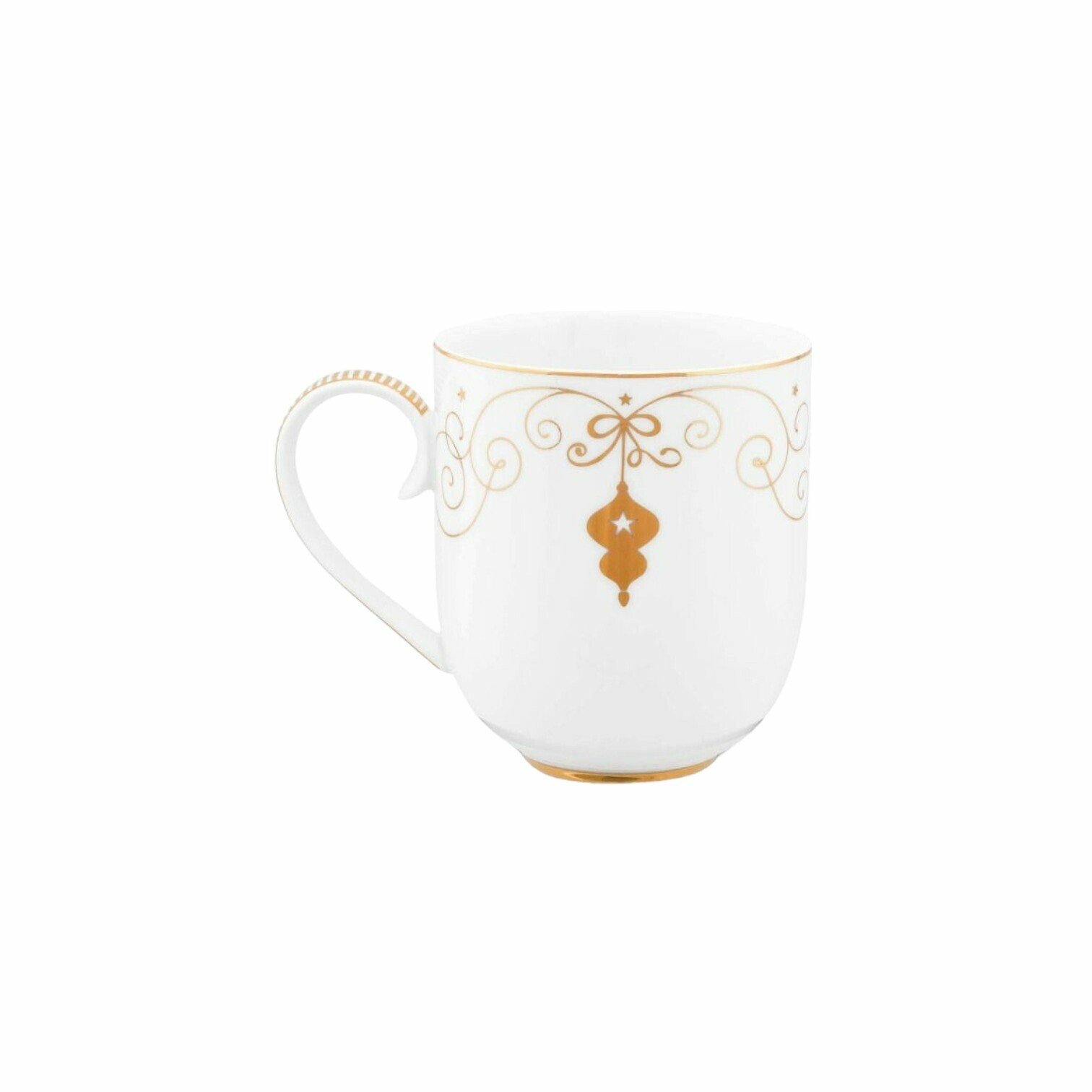 Šī svētku krūze ir dekorēta ar Royal Winter White dizainu, kas ir lieliski piemērota jūsu trauku kolekcijai svētkiem. Baltā krūze ir dekorēta ar vairāku izmēru zvaigznēm, rokturis ir dekorēts ar zelta svītrām. Šī krūze ir pieejama arī nelielā versijā, ko var lieliski kombinēt, lai radītu rotaļīgu efektu uz jūsu galda
