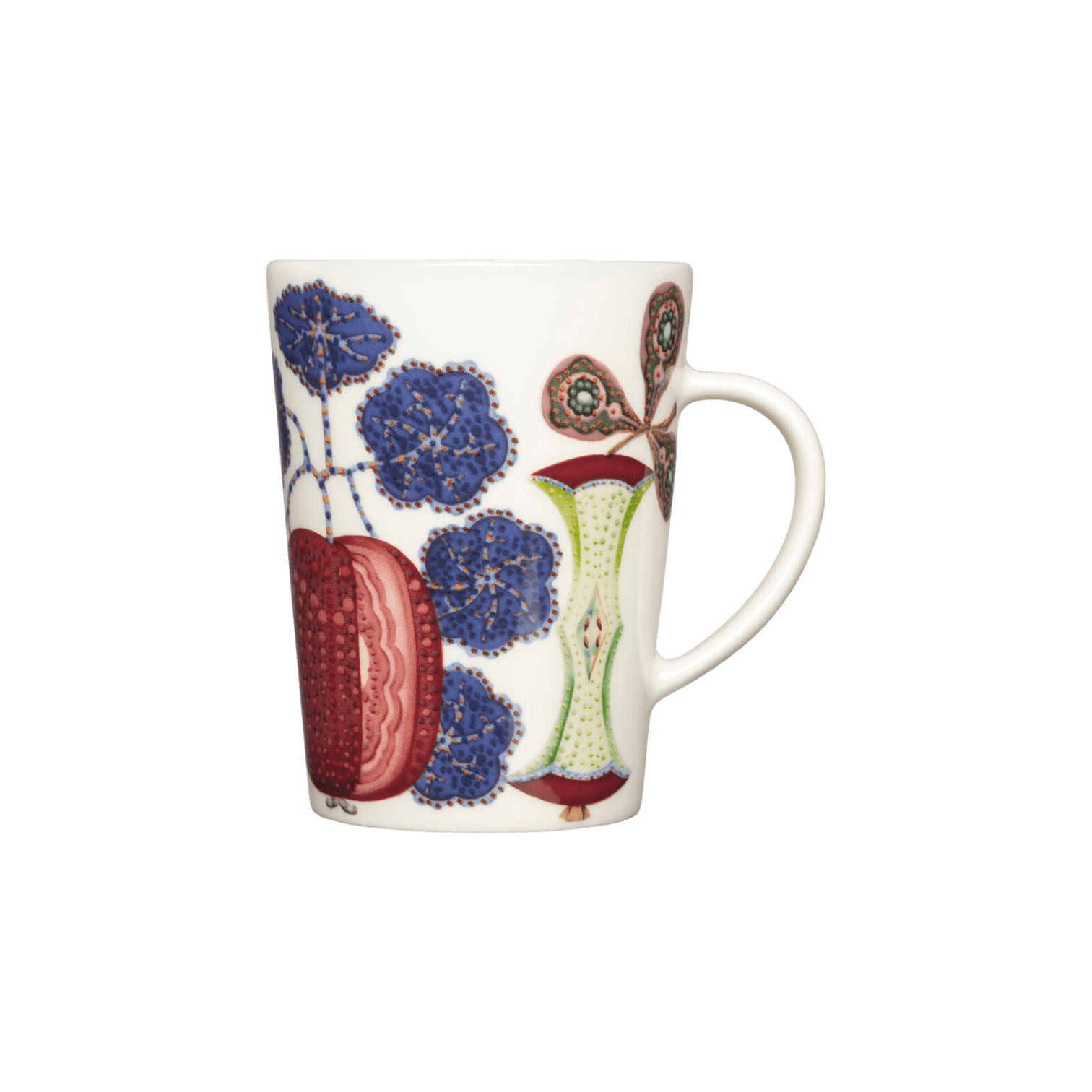 Krūze Sato dizains ir iedvesmots no klusās dabas, apvienojot Klausa Haapaniemi spilgtās augļu un dārzeņu ilustrācijas ar Heikki Orvola skaidrajām un vienkāršajām formām. Šī 0,3 L krūze ir lielisks piemērs šai harmoniskajai kombinācijai, kur dzīvotspējīga māksla un funkcionalitāte apvienojas, lai radītu patiesi izsmalcinātu trauku. Krūze ir ideāli piemērota kafijas vai tējas baudīšanai, piešķirot īpašu akcentu ikdienas mirkļiem.