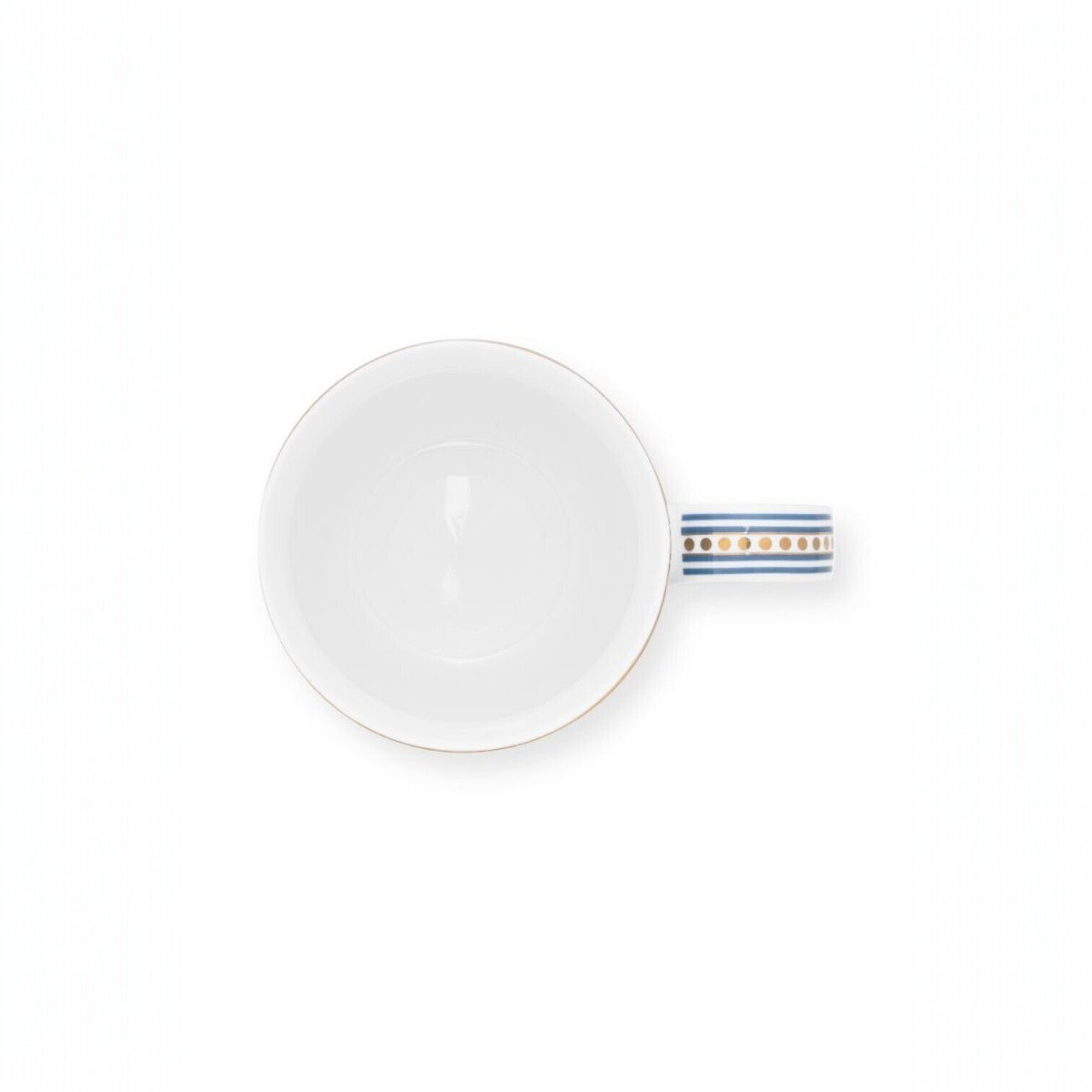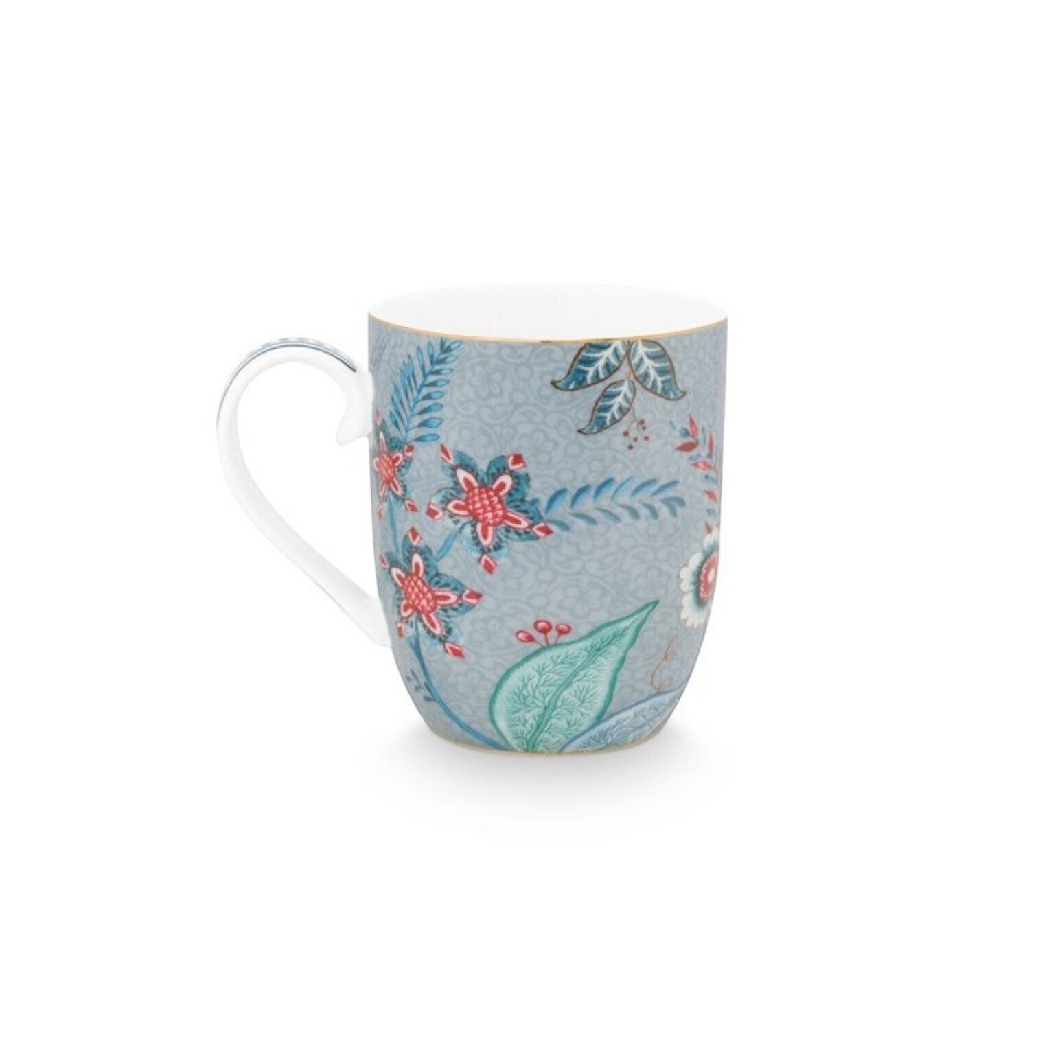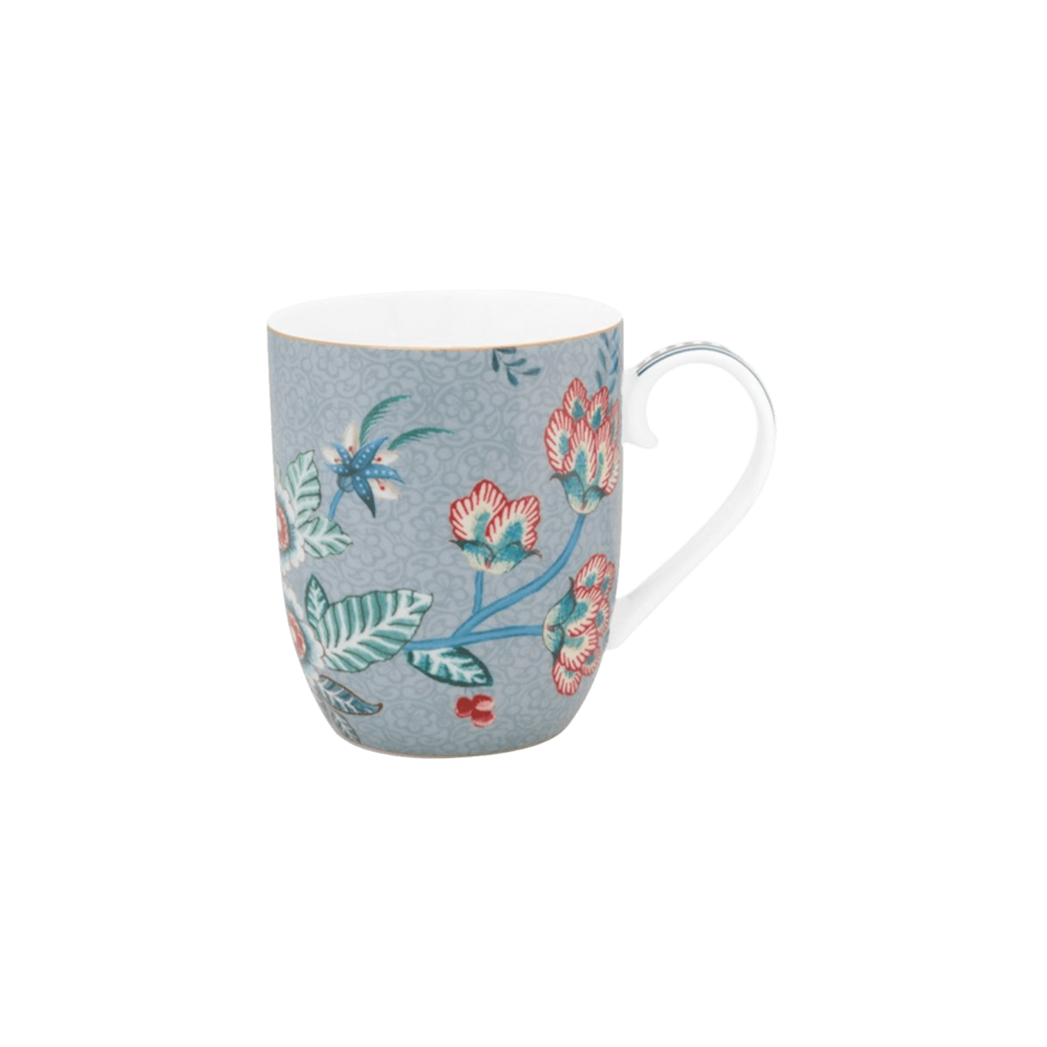 Pievienojiet šo mazo Flower Festival krūzi savai porcelāna kolekcijai. Krūze ir ar zilu fonu, un to rotā elegants Flower Festival dizains. Bagātīgais ziedu raksts ietver dažādas izdomātas sarkanas un rozā chintz ziedu kompozīcijas ar gaiši zilām un zaļām lapām. Spēlīgā kārtībā izvietotās ziedu zarus ar rūpīgi dekorētiem ziediem un lapām sniedz šim elegantiem dizainiem papildu greznību un izsmalcinātību.