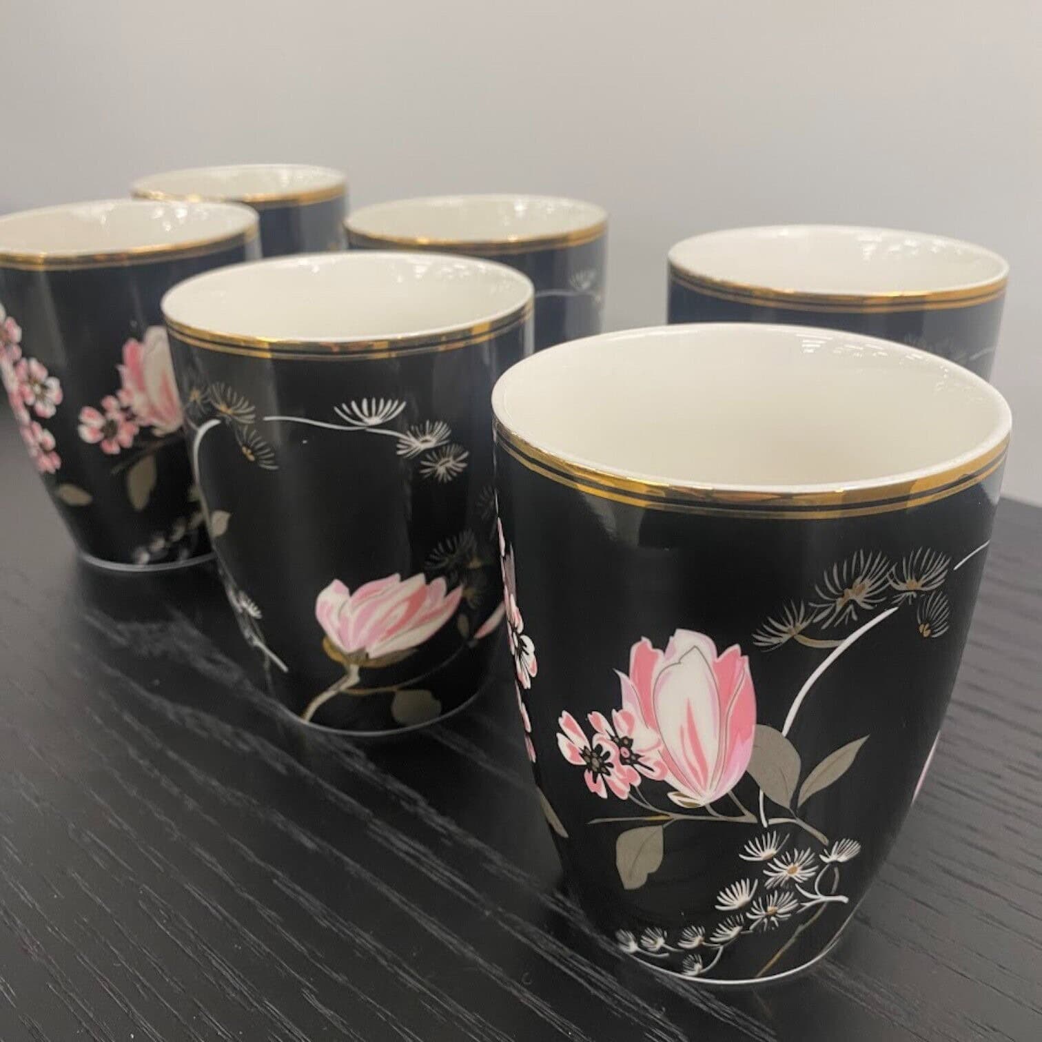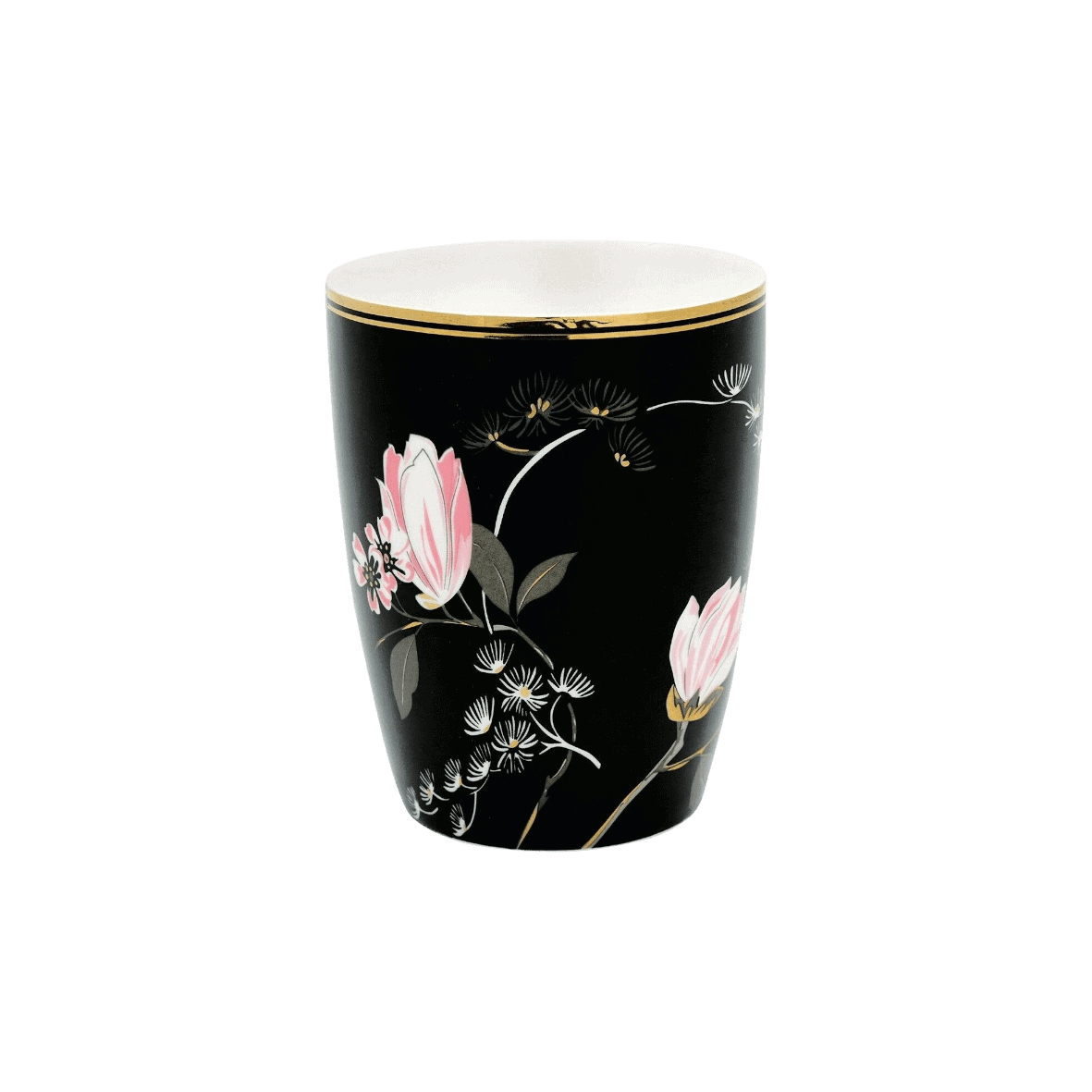 Krūzes Amelie pārsteidz ar savu neparasto šarmu. Eleganti melnā krāsa ar zelta maliņu izstaro greznuma pieskārienu. Tajā pašā laikā smalkais ziedu dizains ar rozā un baltās krāsas ziediem rada mājīgu atmosfēru.