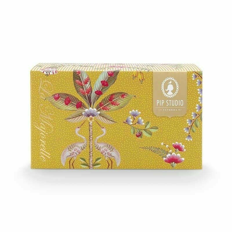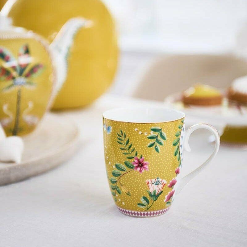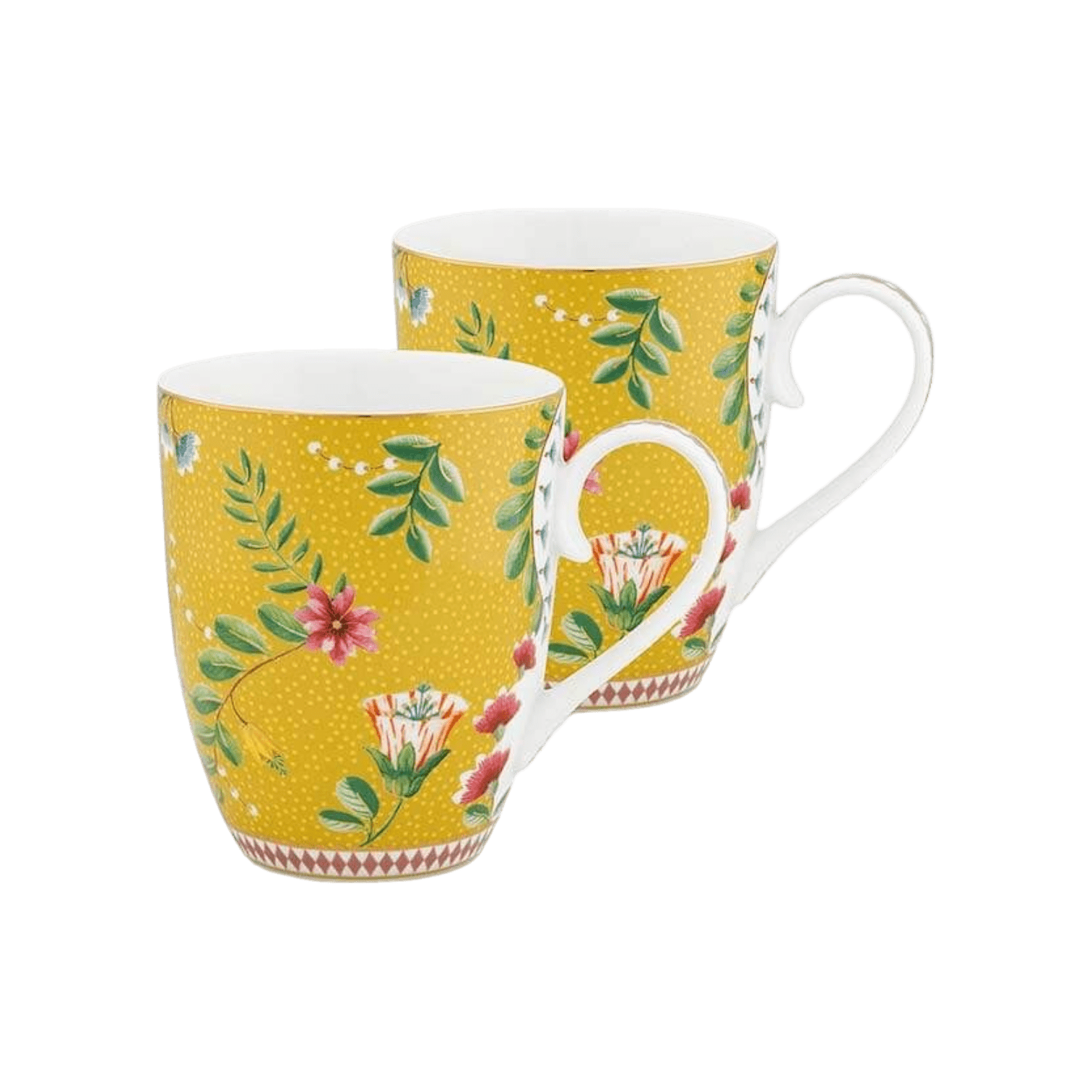 Šīs jautrās krūzes ir dekorētas ar La Majorelle dizainu. Šo dizainu veido mazi stilizēti ziedu zari ar vairāku veidu eksotiskiem ziediem. Krūzes apakšdaļa ir dekorēta ar baltu apmalīti, kuru noslēdz rozā dambrete, kas piešķir šīm krūzēm bagātīgu izskatu. Abas krūzes ir detalizētas ar zelta akcentiem.