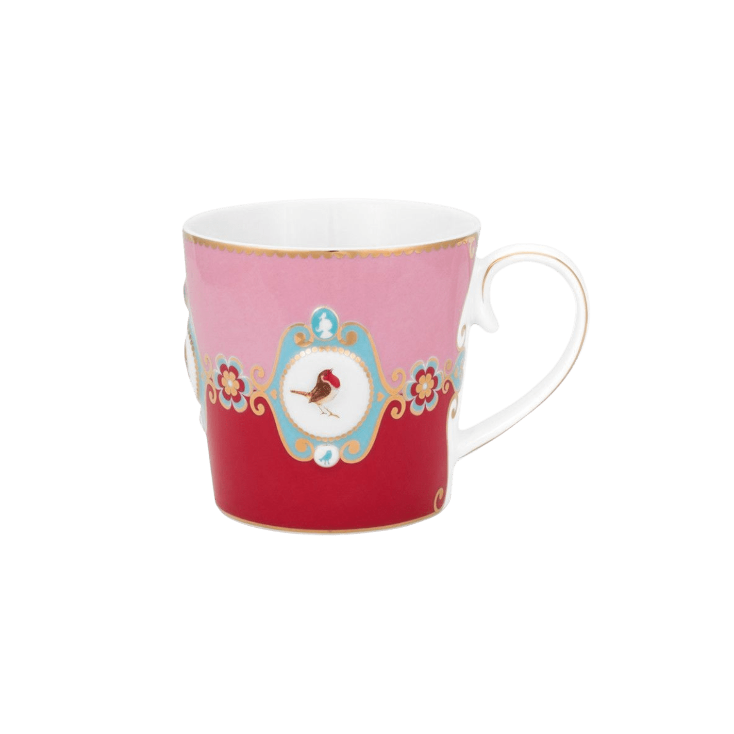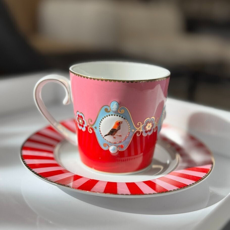 Ienesiet savos rītos eleganci un siltumu ar šo lielo sarkano, rozā porcelāna krūzi no Pip Studio visiemīļotākās kolekcijas Love Birds. Tās centrā atrodas dekoratīvs reljefa medaļons ar sarkankrūtīša attēls, kas simbolizē mīlestību un sirsnību.