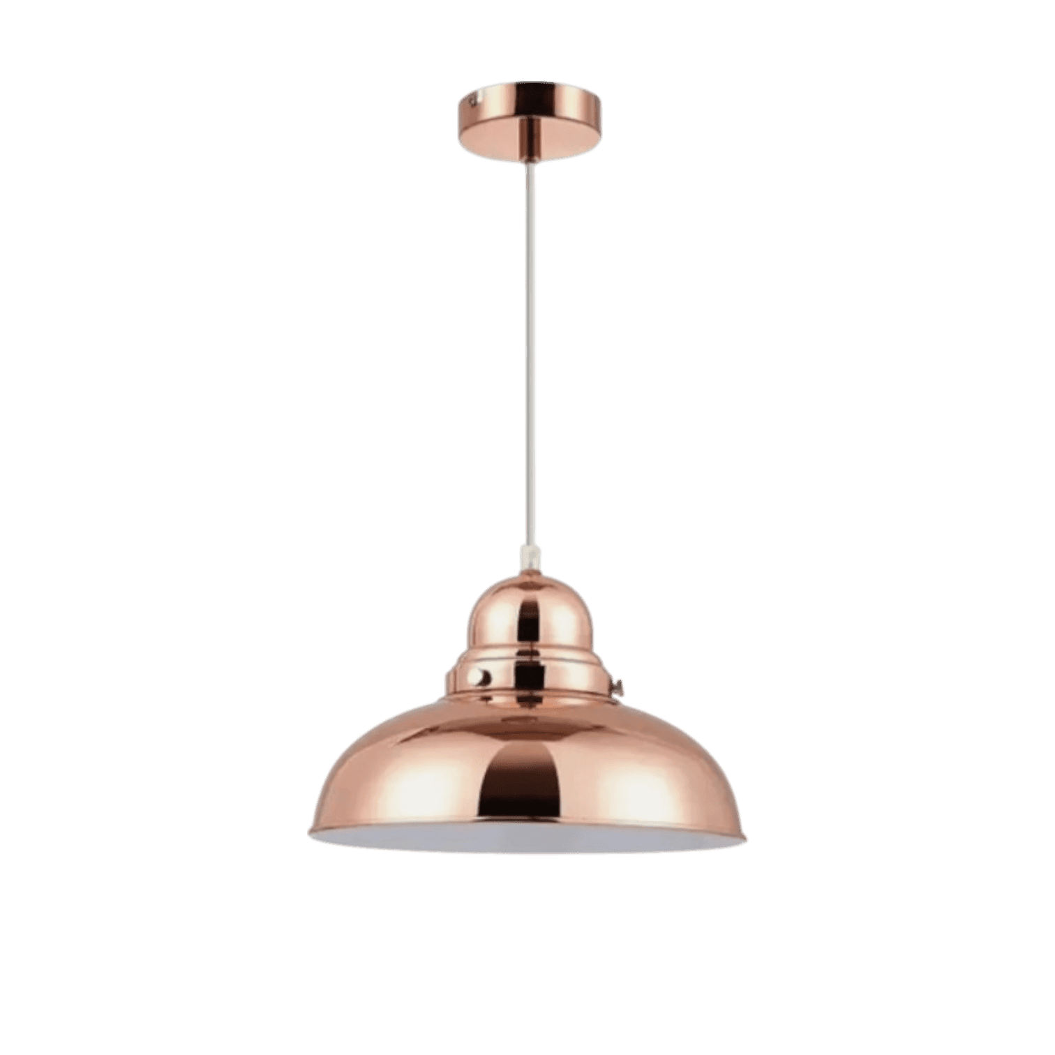 Šī ir Premier Housewares piekaramā griestu lampa ar industriāla stila dizainu. Lampai ir eleganta vara apdare, kas piešķir telpai modernu un stilīgu akcentu. Tā ir aprīkota ar regulējamu vadu, kas ļauj pielāgot tās augstumu atbilstoši vajadzībām. Plats, kupolveida abažūrs nodrošina labu gaismas izkliedi, padarot to ideāli piemērotu virtuvēm, ēdamistabām vai viesistabām. Šis modelis ir lielisks risinājums tiem, kas vēlas apvienot industriālo dizainu ar eleganci un funkcionalitāti.