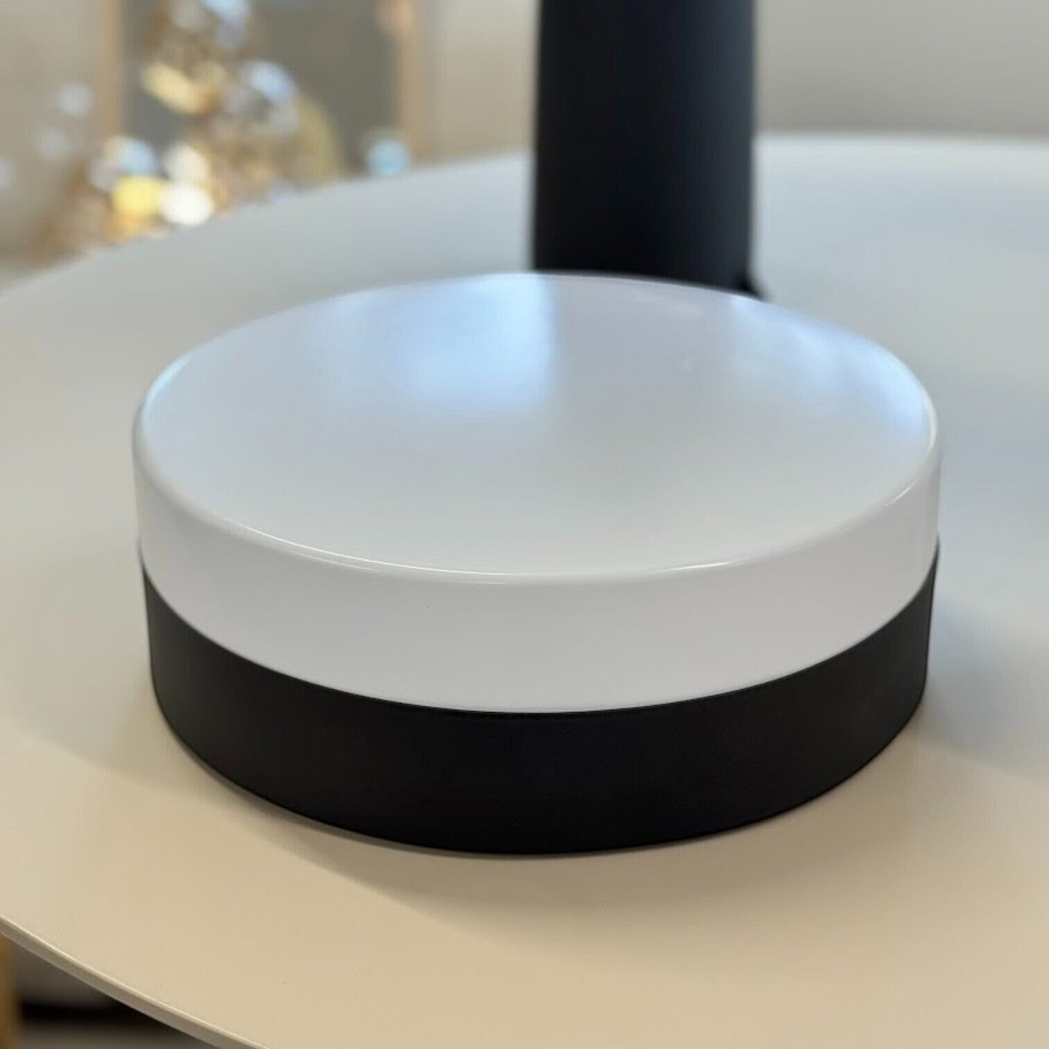 LED griestu lampa Deman, Ø28 cm ir moderns un funkcionāls apgaismojuma risinājums, kas apvieno elegantu dizainu ar energoefektivitāti. Ar kompaktu formu un stilīgo baltā un melnā krāsu salikumu, tā lieliski iederas gan vannas istabā, gan koridorā, virtuvē vai citās telpās, kur nepieciešams spilgts un vienmērīgs apgaismojums.