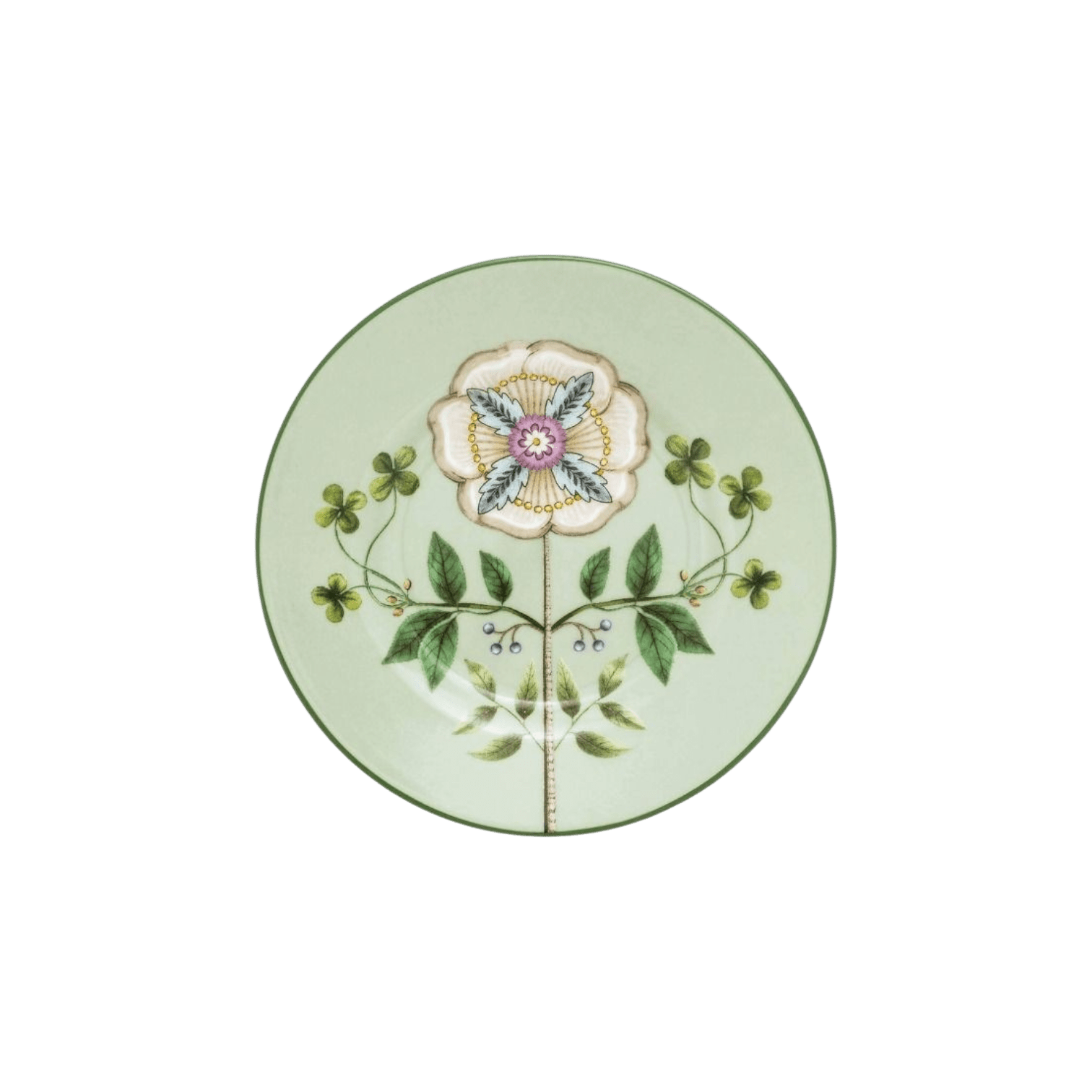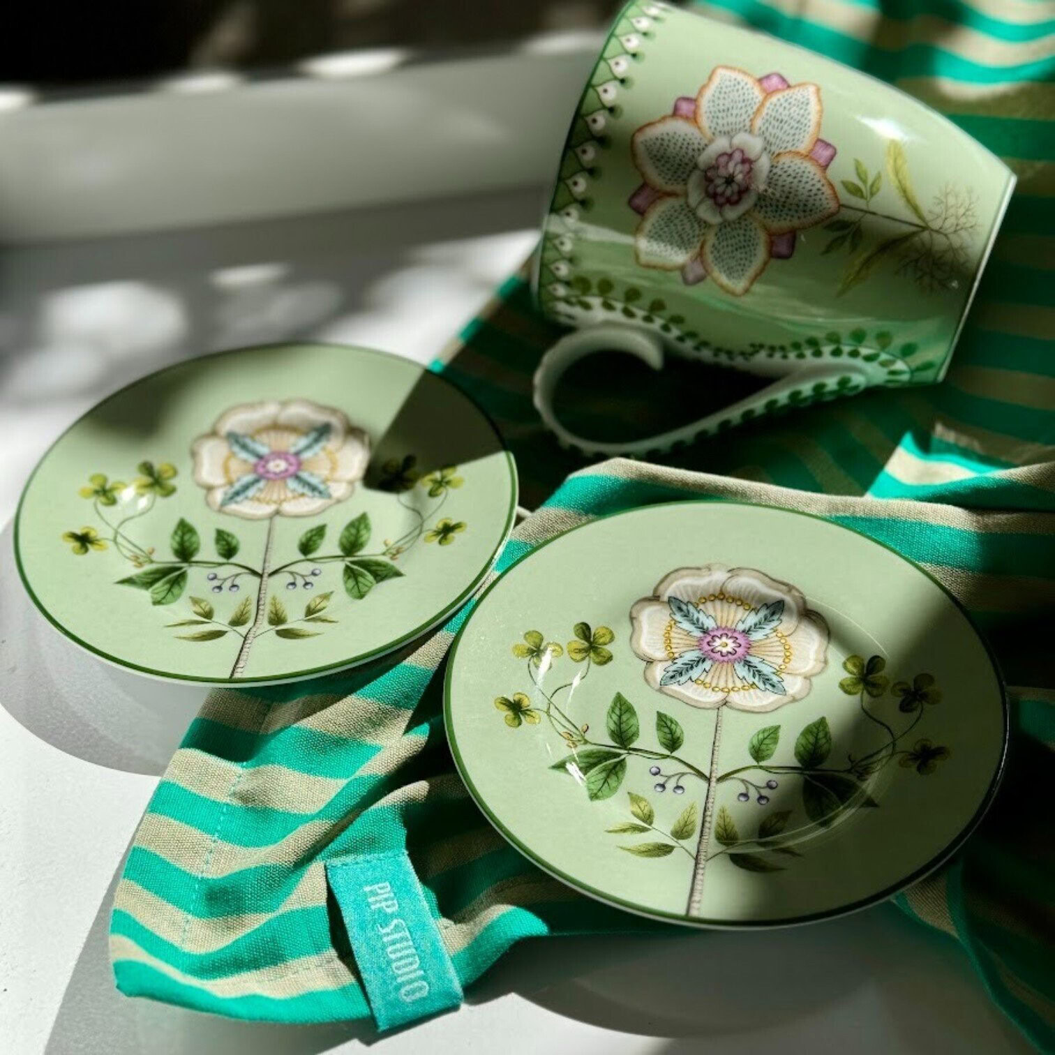 Mazais šķīvis no Pip Studio “Lily & Lotus” kolekcijas ir izsmalcināts un elegants akcents jūsu galda klājumā. Maigi zaļajā fonā izceļas liela pienenes zieda ilustrācija pasteļtoņos, ko papildina smalki papardes raksti. Simetriski izvietotie motīvi piešķir šķīvim mūsdienīgu un estētiski līdzsvarotu izskatu. Zaļā maliņa piešķir noslēguma akcentu, kas harmoniski ietver kopējo dizainu.