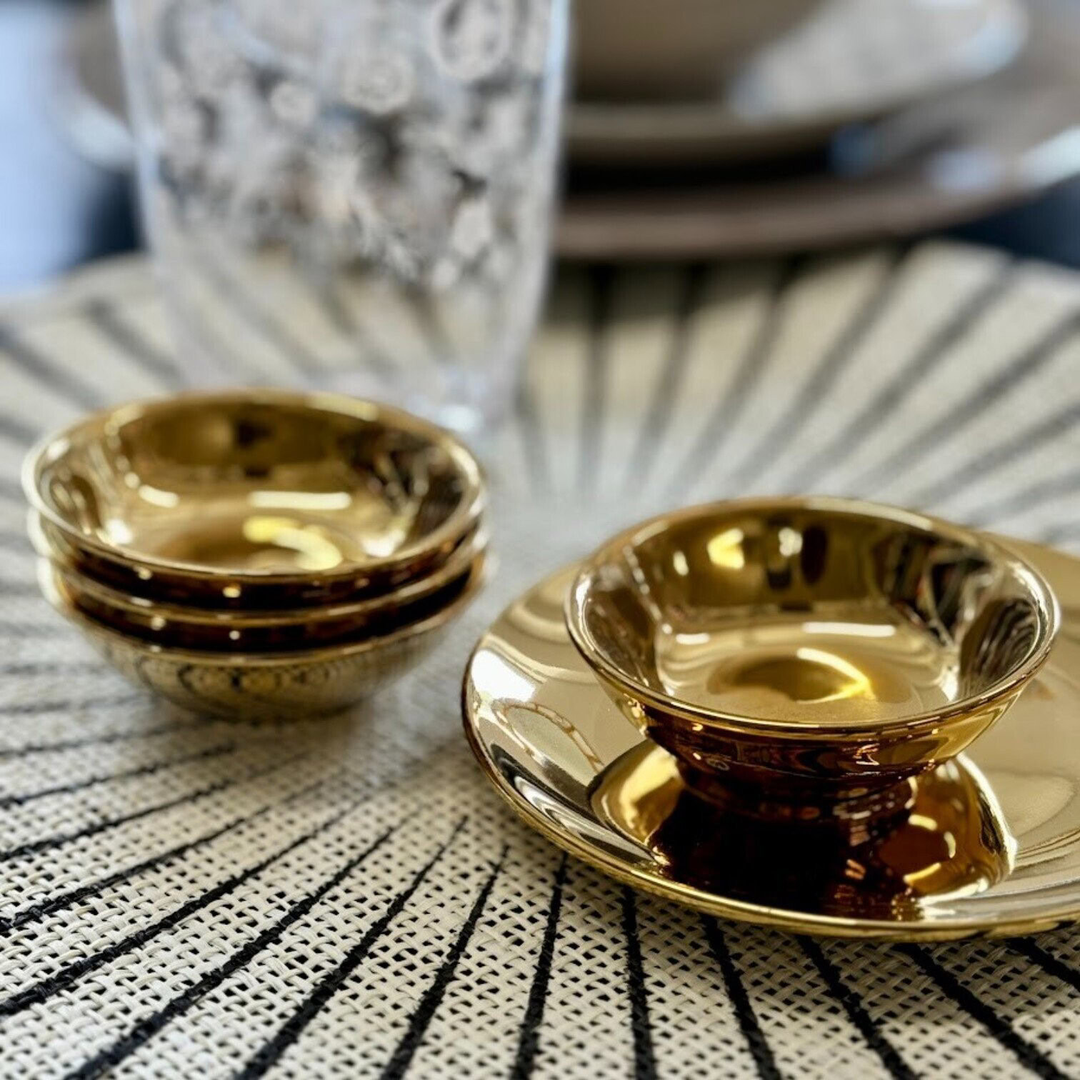 Ar šiem zelta porcelāna tējas šķīvīšiem tējas baudīšana pārvēršas par īstiem svētkiem. Tie ir ideāli piemēroti īpašiem notikumiem vai arī ikdienas priekam. Augstas kvalitātes porcelāns nodrošina ilgstošu izturību, ļaujot baudīt šo eleganto galda servējumu daudzus gadus. Svarīgi: nav piemēroti mazgāšanai trauku mazgājamajā mašīnā.