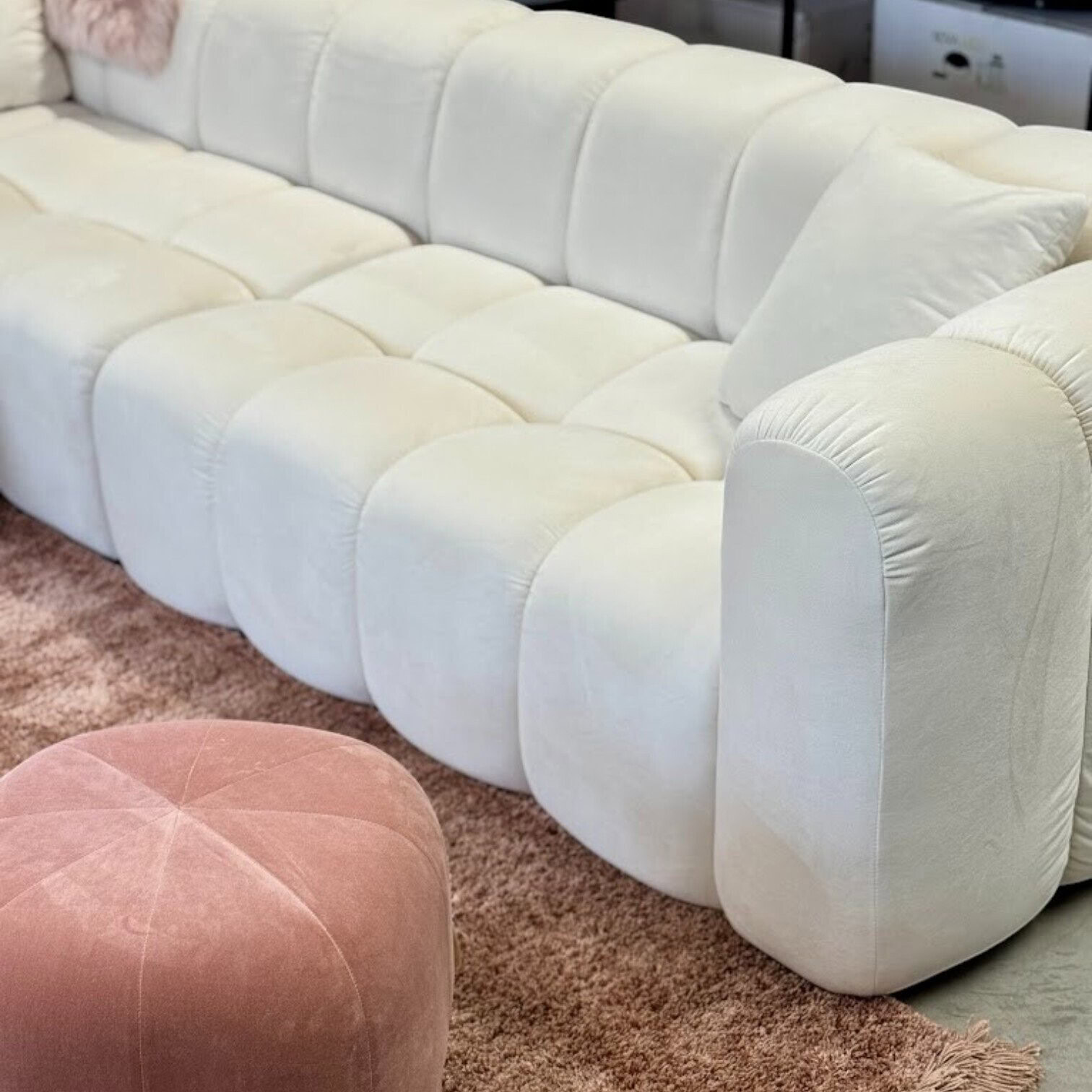 Modulārais samta dīvāns Halley ir izsmalcināts un mūsdienīgs, kas piedāvā gan estētisku pievilcību, gan nepārspējamu komfortu. Tā mīkstās, horizontāli segmentētās līnijas un noapaļotās formas piešķir interjeram mājīgu un elegantu noskaņu. Gaiši bēšā krāsa piešķir dīvānam neitrālu un siltu toni, kas lieliski saskanēs ar dažādiem interjera stiliem – no skandināvu minimālisma līdz modernam luksusam.
