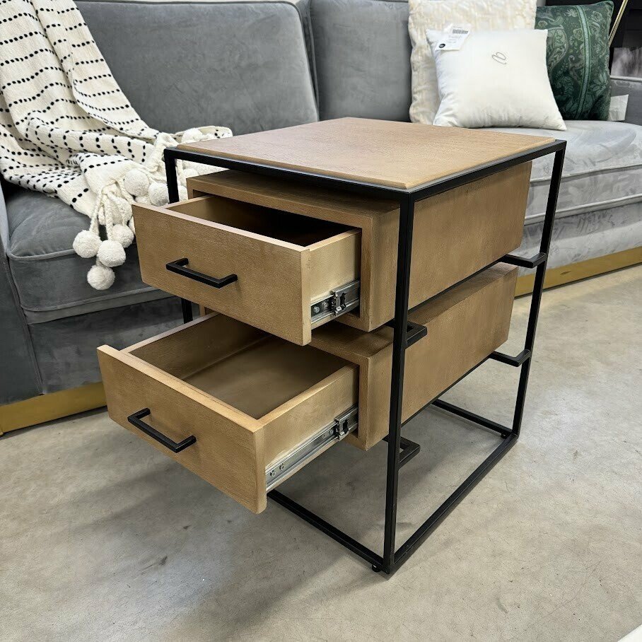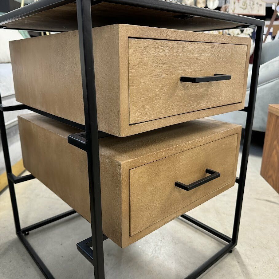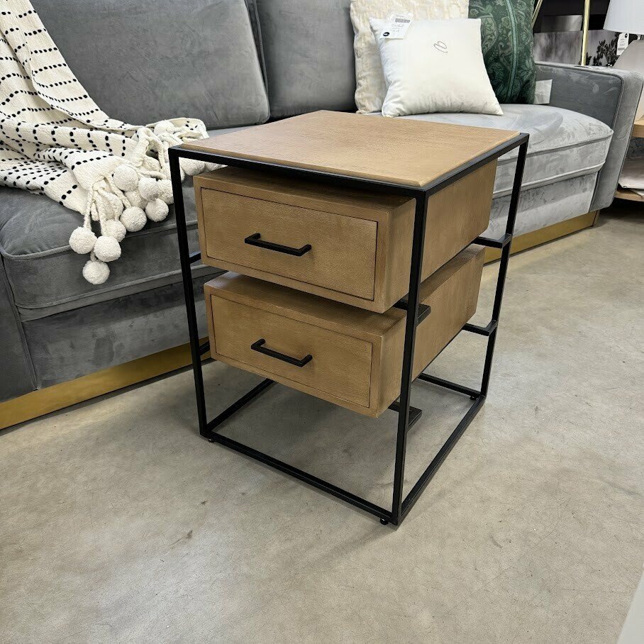 Naktsskapītis LYLE ir veidots no mango masīvkoka un tas ir ietverts melnā metāla rāmī. Tas būs lielisks akcents jebkurā guļamistabā.
