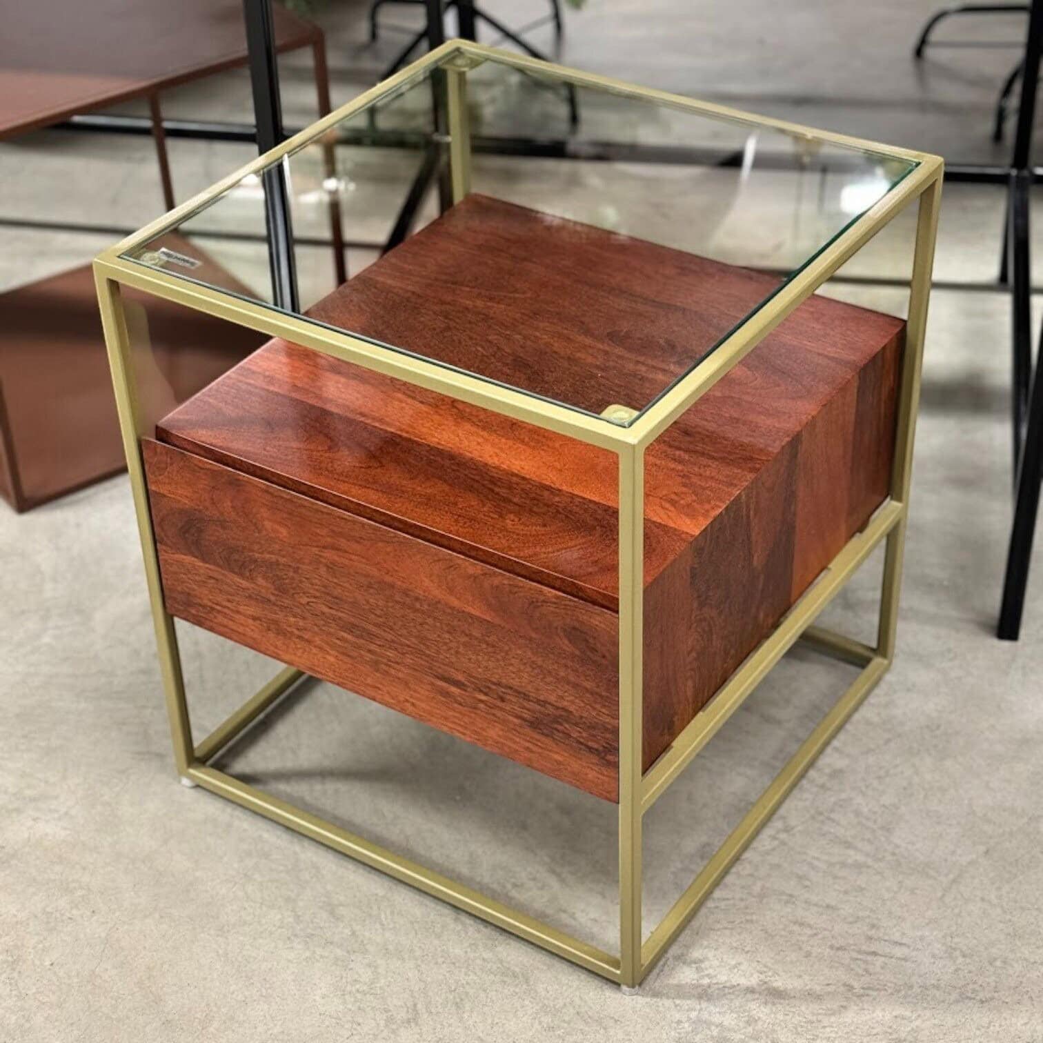 Naktsskapītis Theodor ir izsmalcināta dizaina mēbele, kas apvieno modernu stilu ar dabas materiālu siltumu. Tā virsma no stikla piešķir vieglumu un eleganci, savukārt atvilktne no mango koka pievieno interjeram dabisku raksturu un tekstūru. Metāla rāmis nodrošina stabilitāti un piešķir industriālu pieskaņu, radot harmonisku materiālu kontrastu.