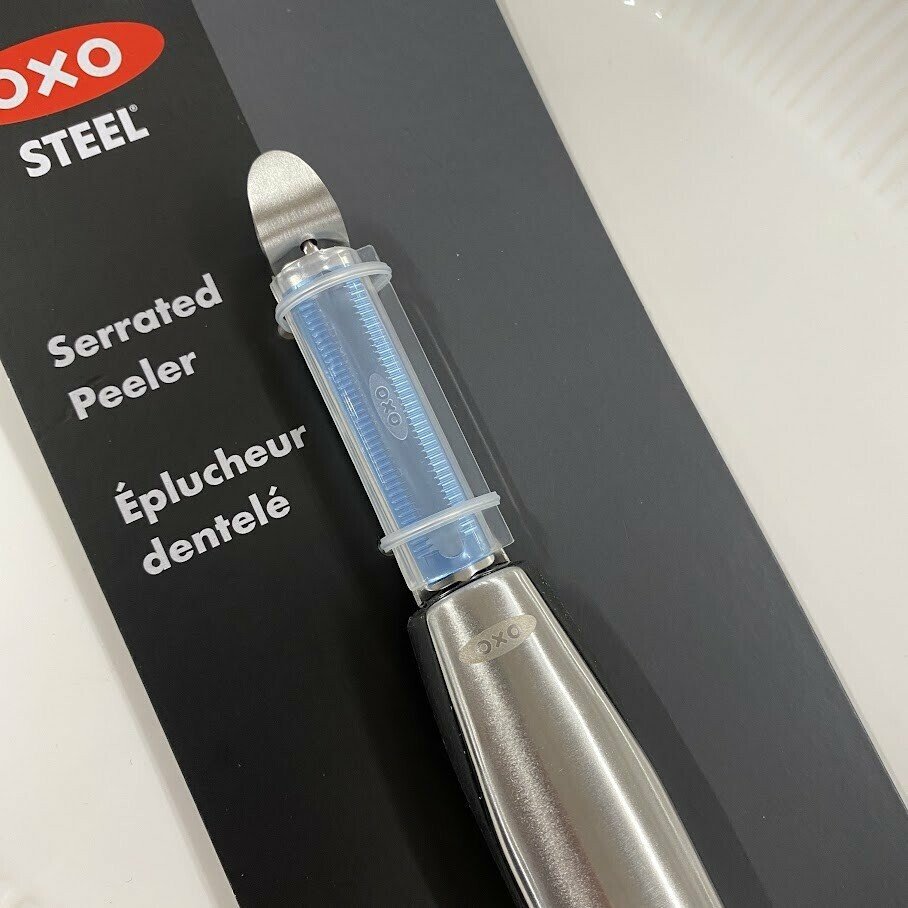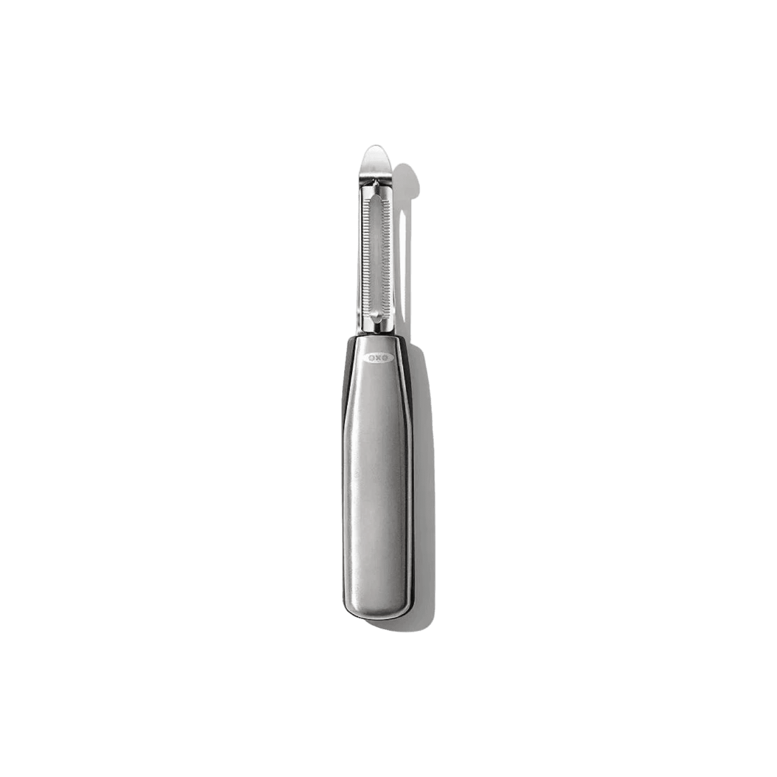 Viegli mizojiet augļus un dārzeņus ar OXO Good Grips Steel Swivel Serrated Peeler mizotāju. Asais asmens un ergonomiskais rokturis apvienojumā ar glītu nerūsējošā tērauda dizainu apvieno praktiskumu un eleganci.
