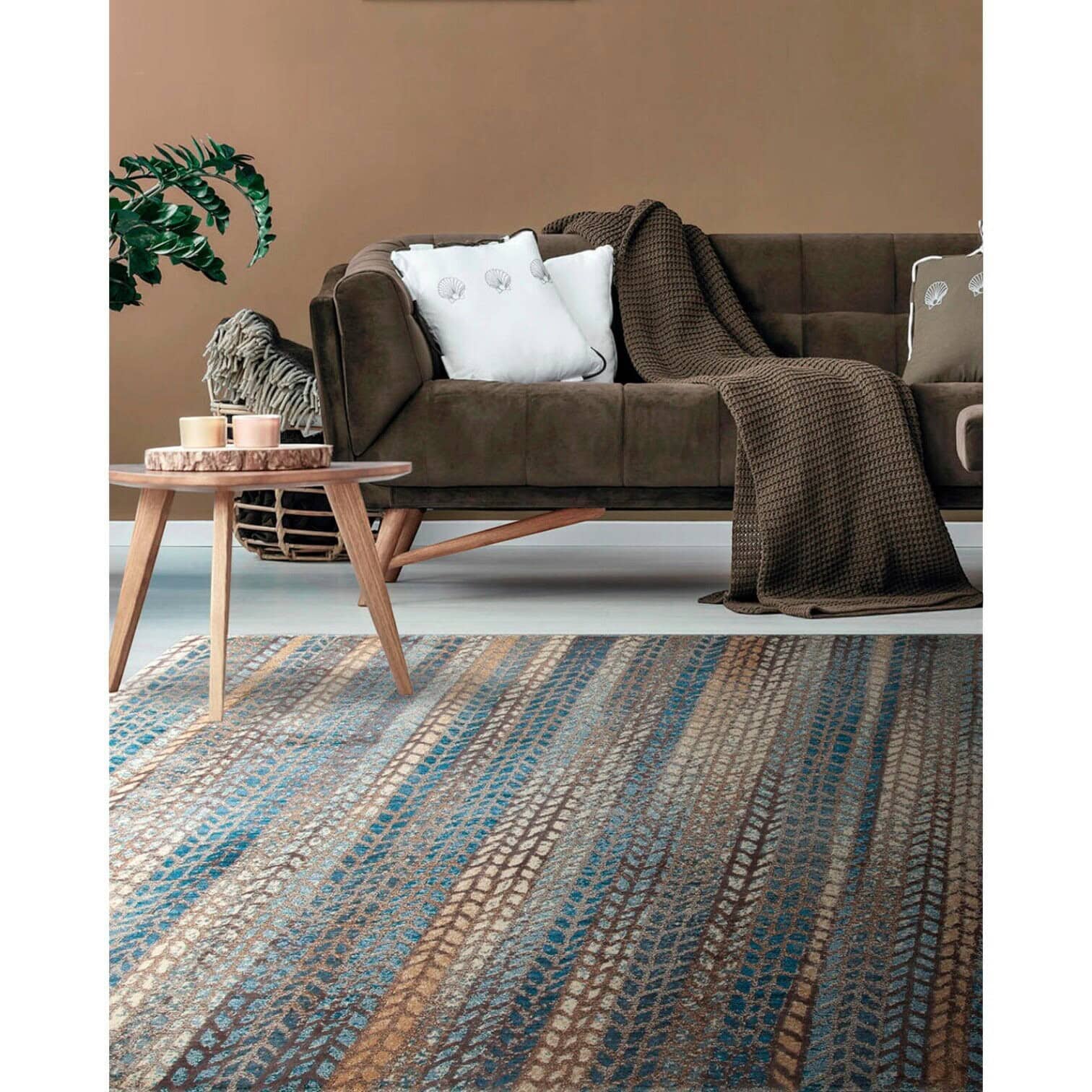Šis paklājs Four seasons II piešķir interjeram siltumu, raksturu un mūsdienīgu eleganci. Tā daudztoņu raksts apvieno zilus, smilšu un zemes toņus, radot dinamisku, bet vienlaikus harmonisku noskaņu. Teksturētais dizains atgādina dabisku reljefu vai abstraktu pinumu, kas telpai piešķir dziļumu un vizuālu interesi.
