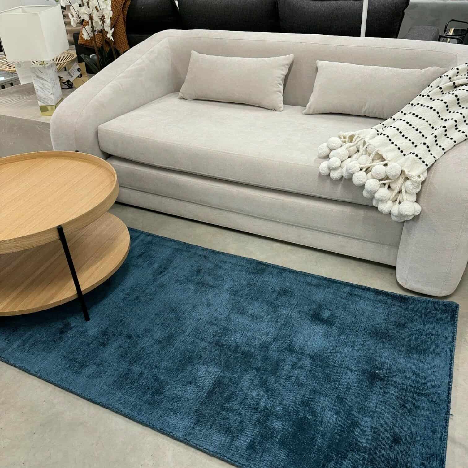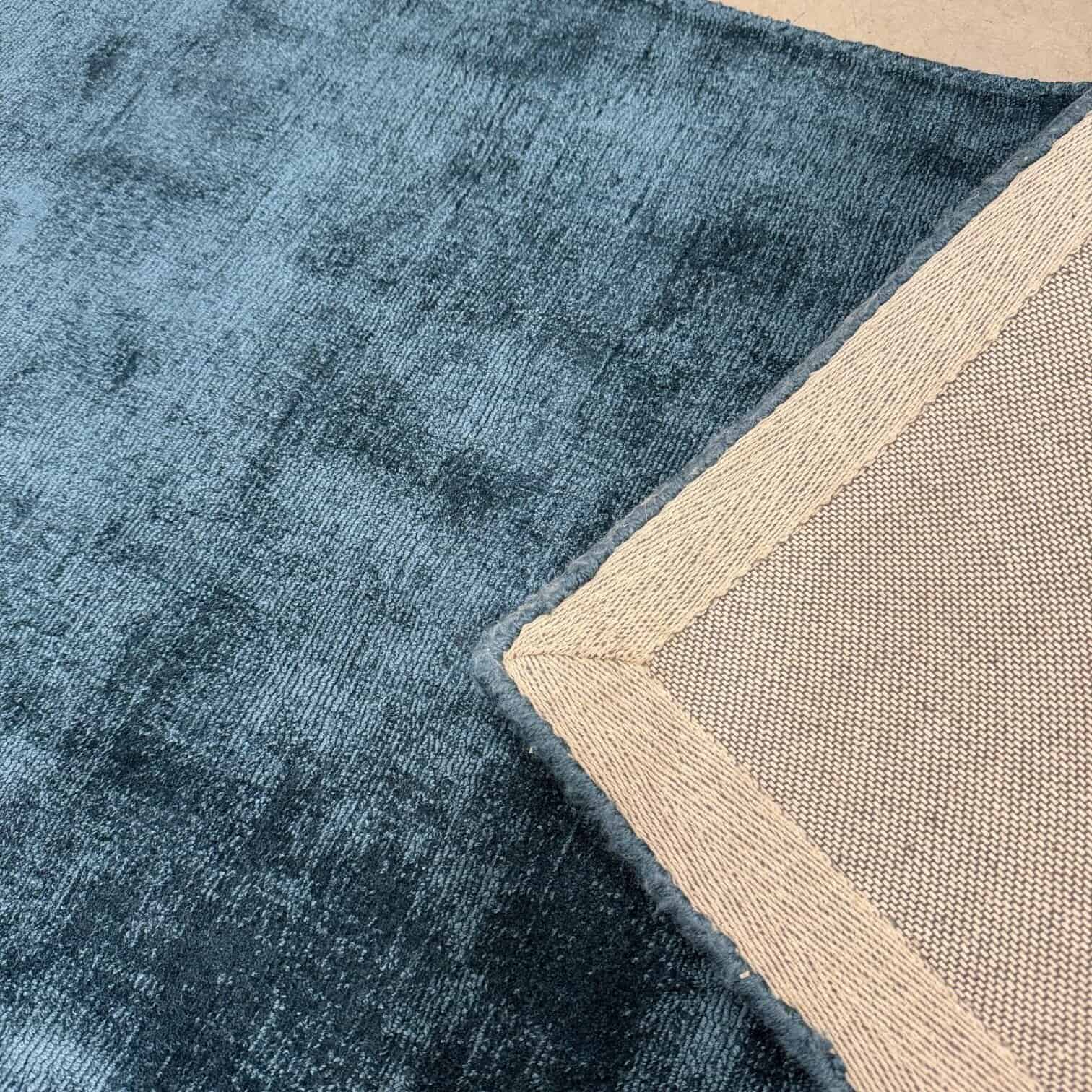 Ar rokām austais viskozes paklājs, jūras zilā tonī, ienesīs jūsu mājoklī dienvidniecisku noskaņu.