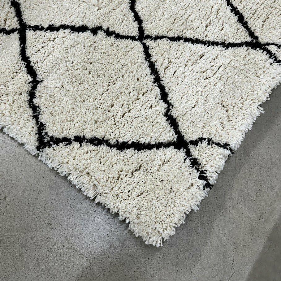 Paklājs Naima ir ar mīkstu virspusi un īpaši pūkains, kas vienmēr jūs sasildīs. Tas ir rotāts ar moderniem berberu motīviem.
