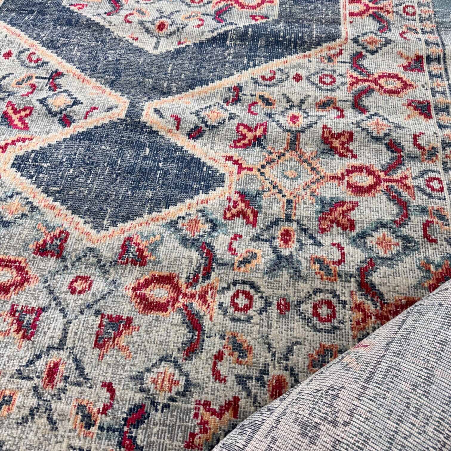 Paklājs Stella ir stilīgs un mūsdienīgs interjera akcents ar ģeometrisku rakstu un smalkiem austrumnieciska stila elementiem. Harmoniskā zilganpelēko, bēšo un sarkanīgo toņu kombinācija piešķir telpai eleganci un mājīgumu, vienlaikus saglabājot vieglu, nepārsātinātu vizuālo iespaidu.